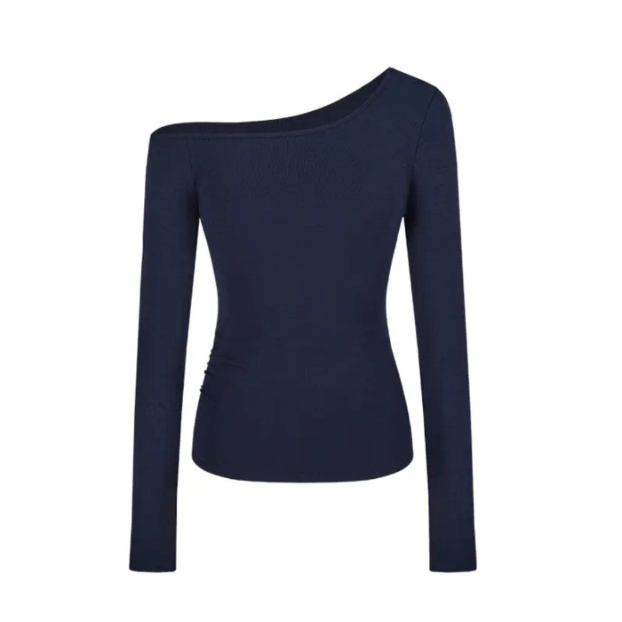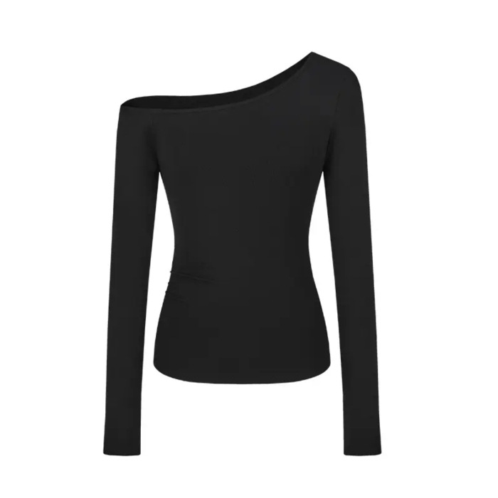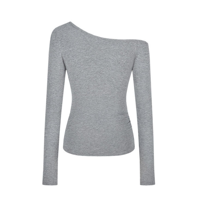 핫 걸스 패션 트렌드 날씬한 어깨 긴팔 티셔츠 여성용 Ins 비대칭 디자인 센스 슬림 핏 슬리밍 숄더 탑