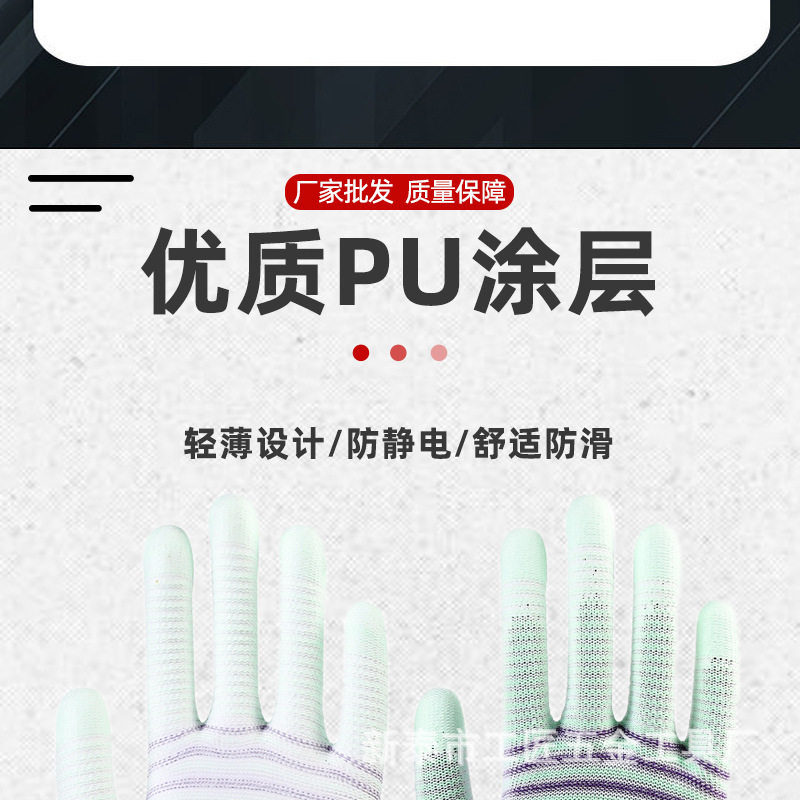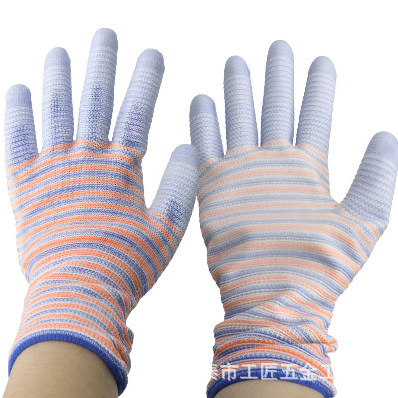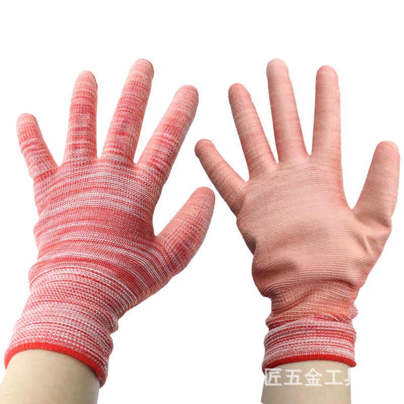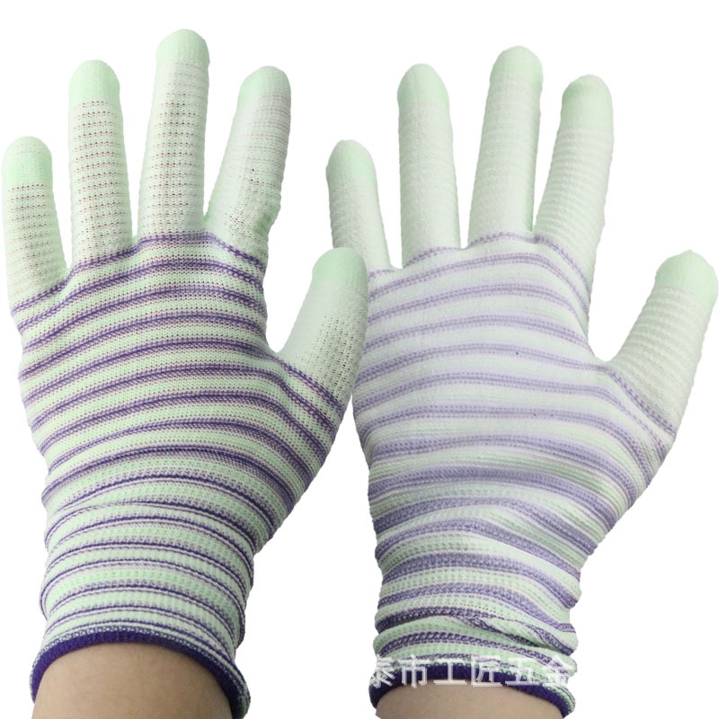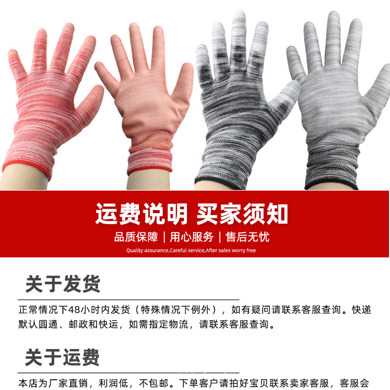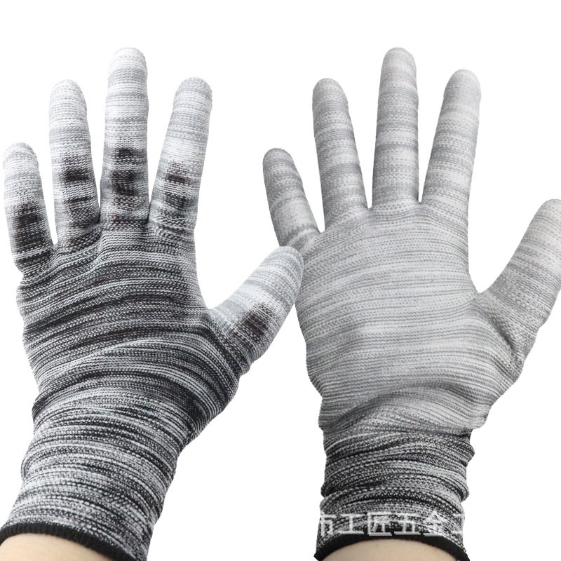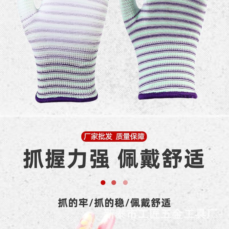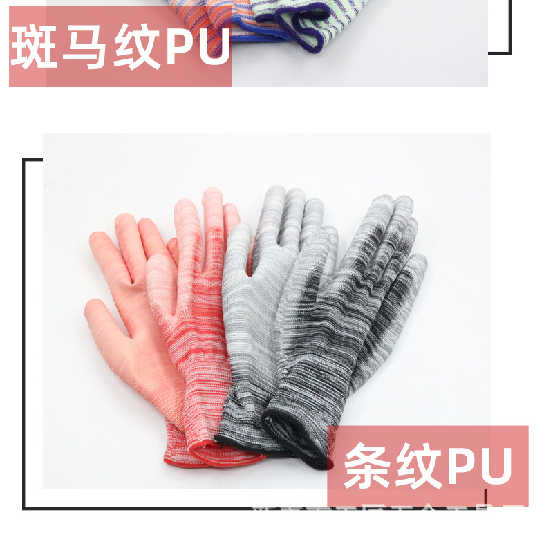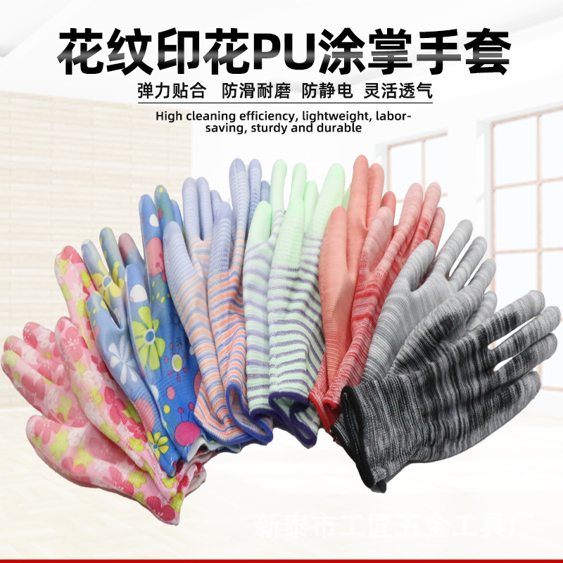 공장 도매 PU 야자 코팅 장갑 인쇄 줄무늬 먼지가없는 정전기 방지 담그는 미끄럼 방지 내마모성 원예 장갑