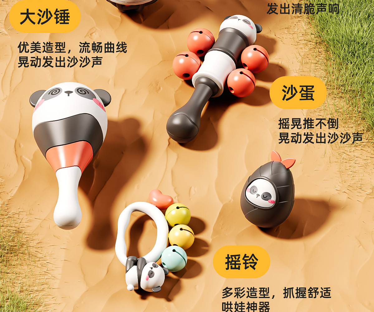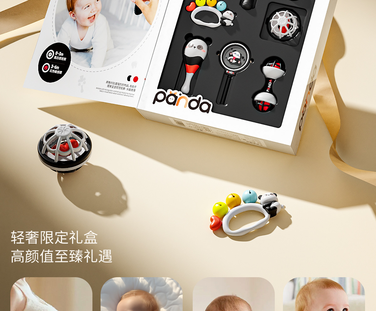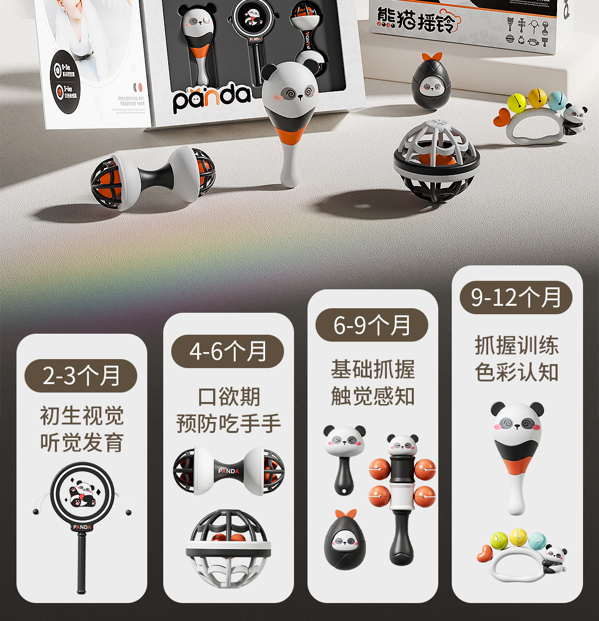 팬더 아기 장난감 0-1 세 로타리 세트 신생아 아기 안락한 손 손 지능 개발
