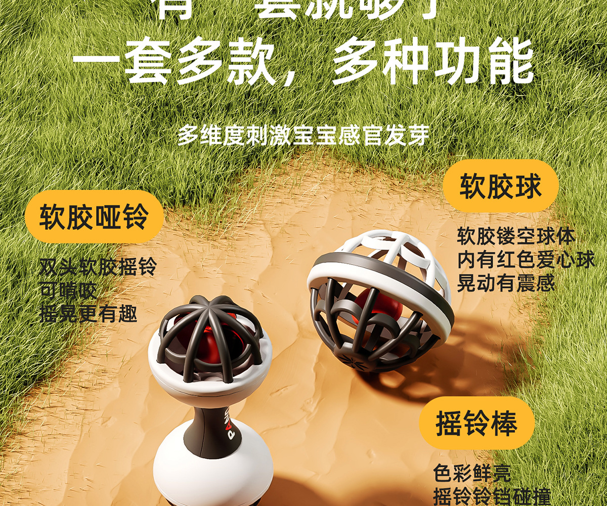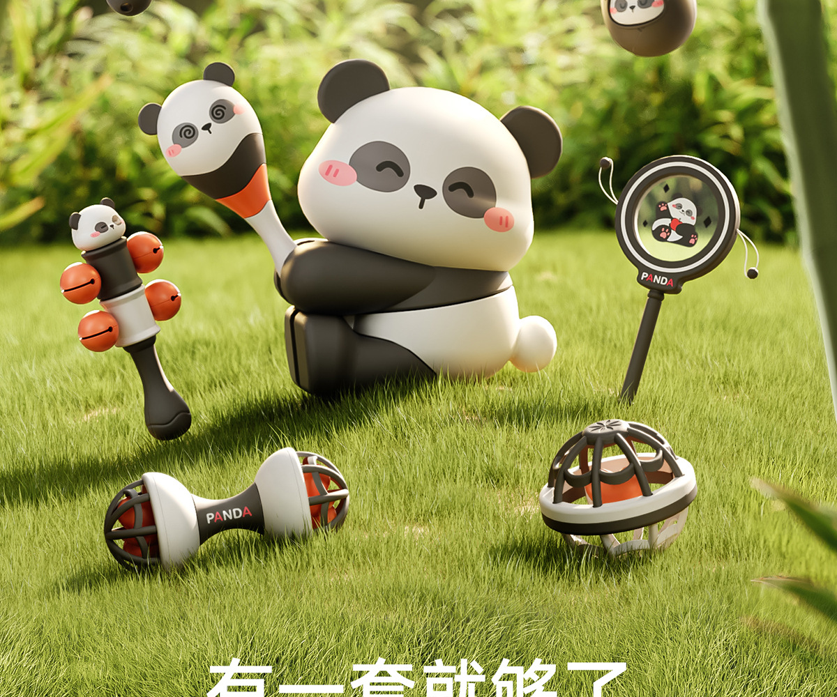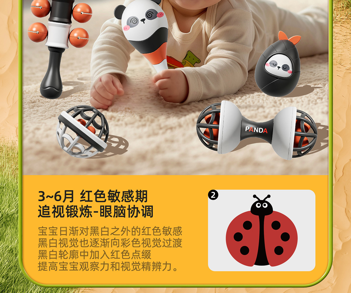팬더 아기 장난감 0-1 세 로타리 세트 신생아 아기 안락한 손 손 지능 개발