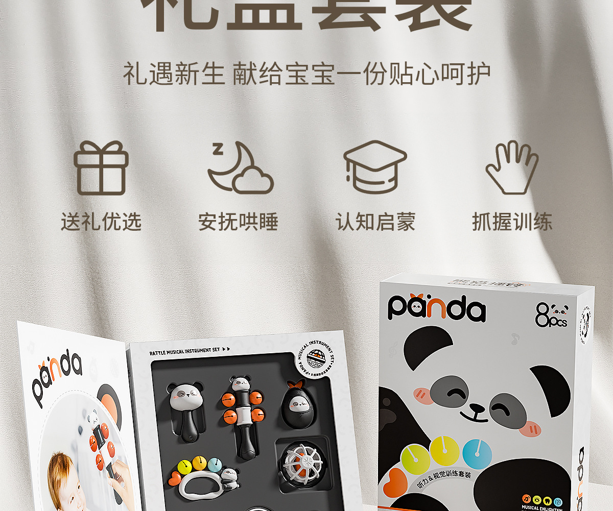 팬더 아기 장난감 0-1 세 로타리 세트 신생아 아기 안락한 손 손 지능 개발스토어 가기