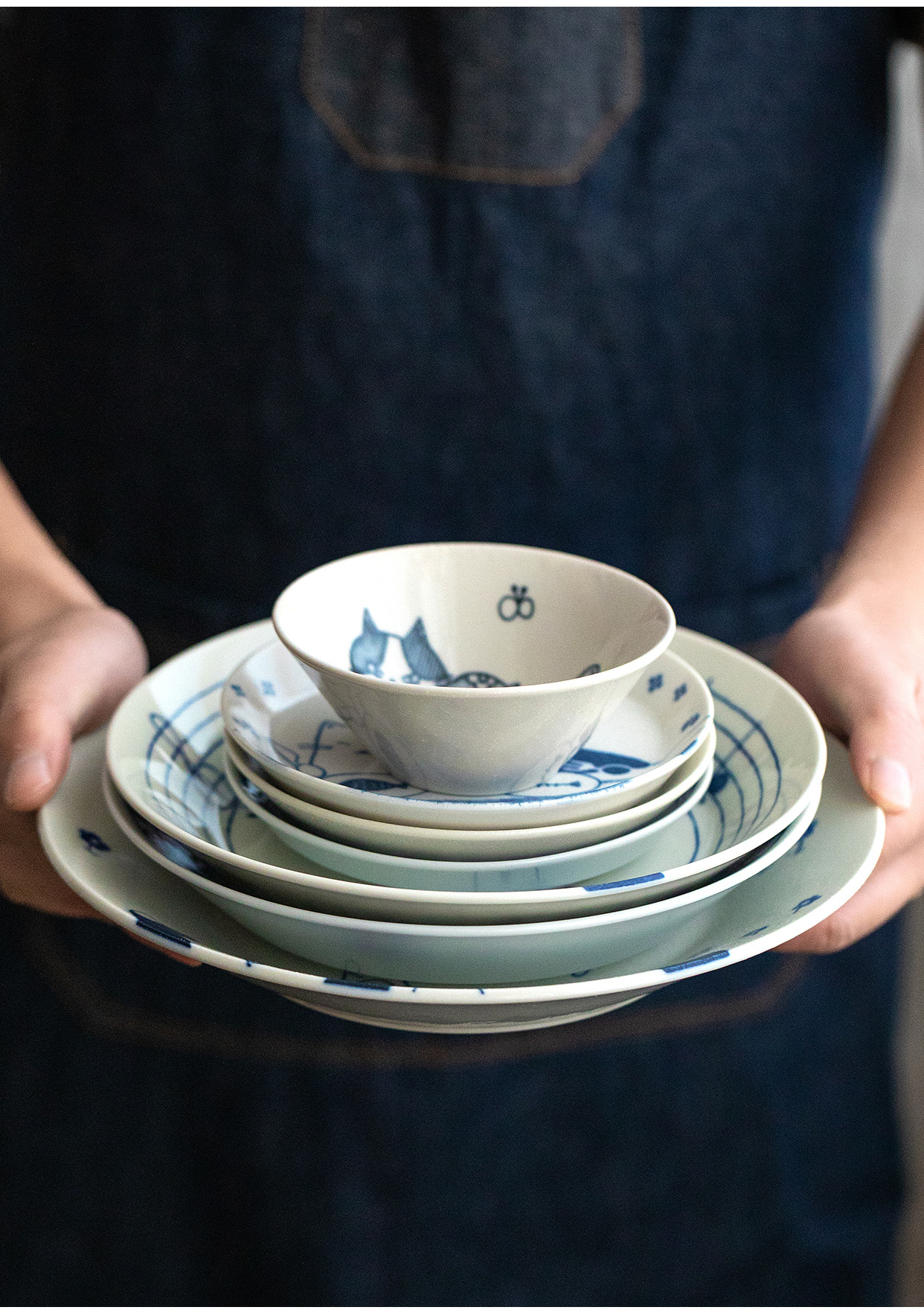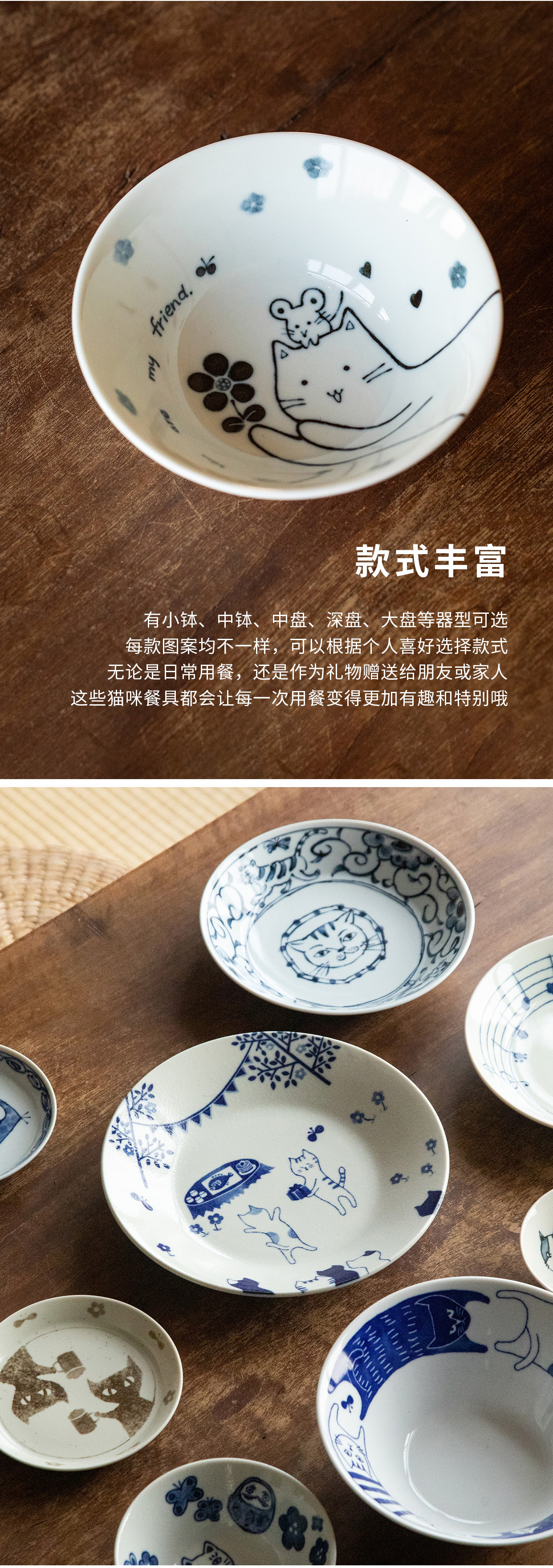 공식 정품 일본 수입 메이즈 귀여운 고양이 플레이트 대용량 국수 수프 그릇 일본 세라믹 플레이트스토어 가기