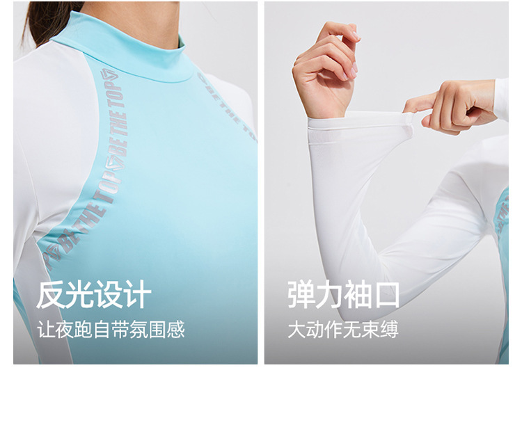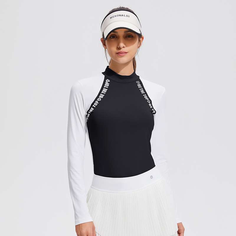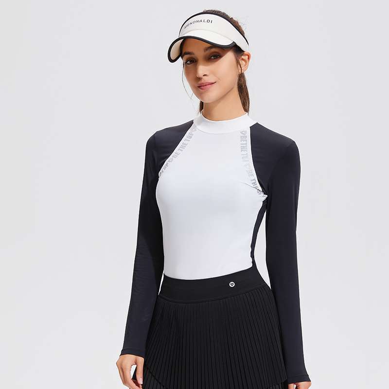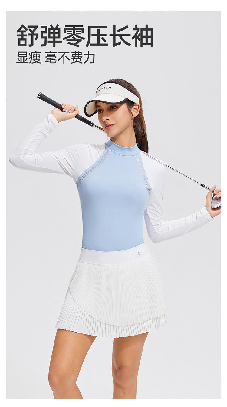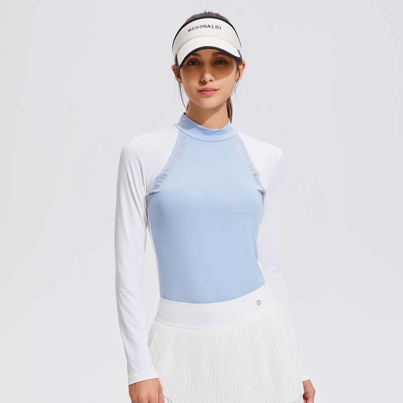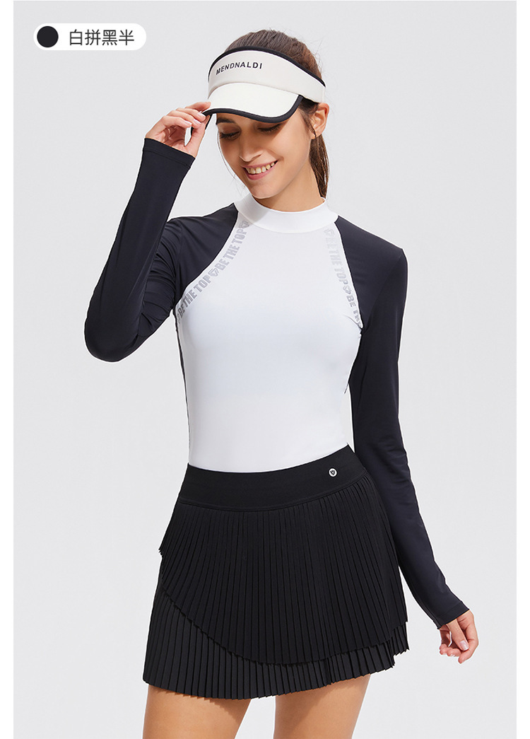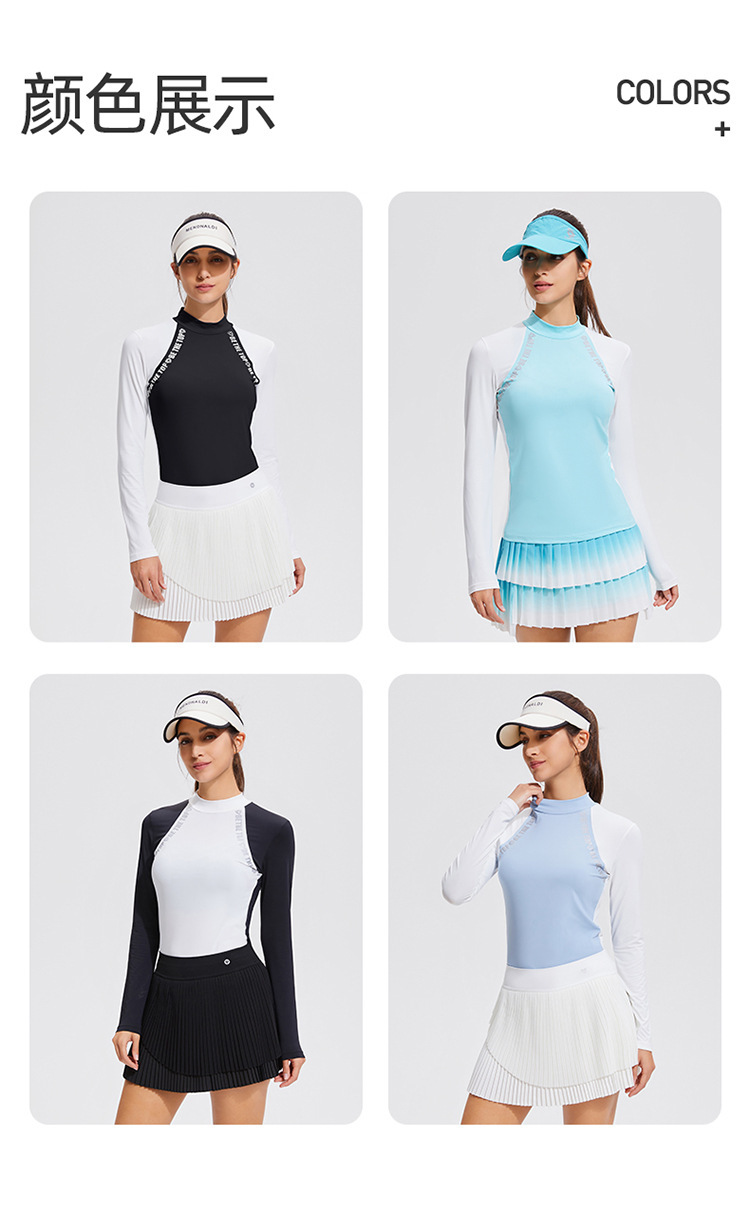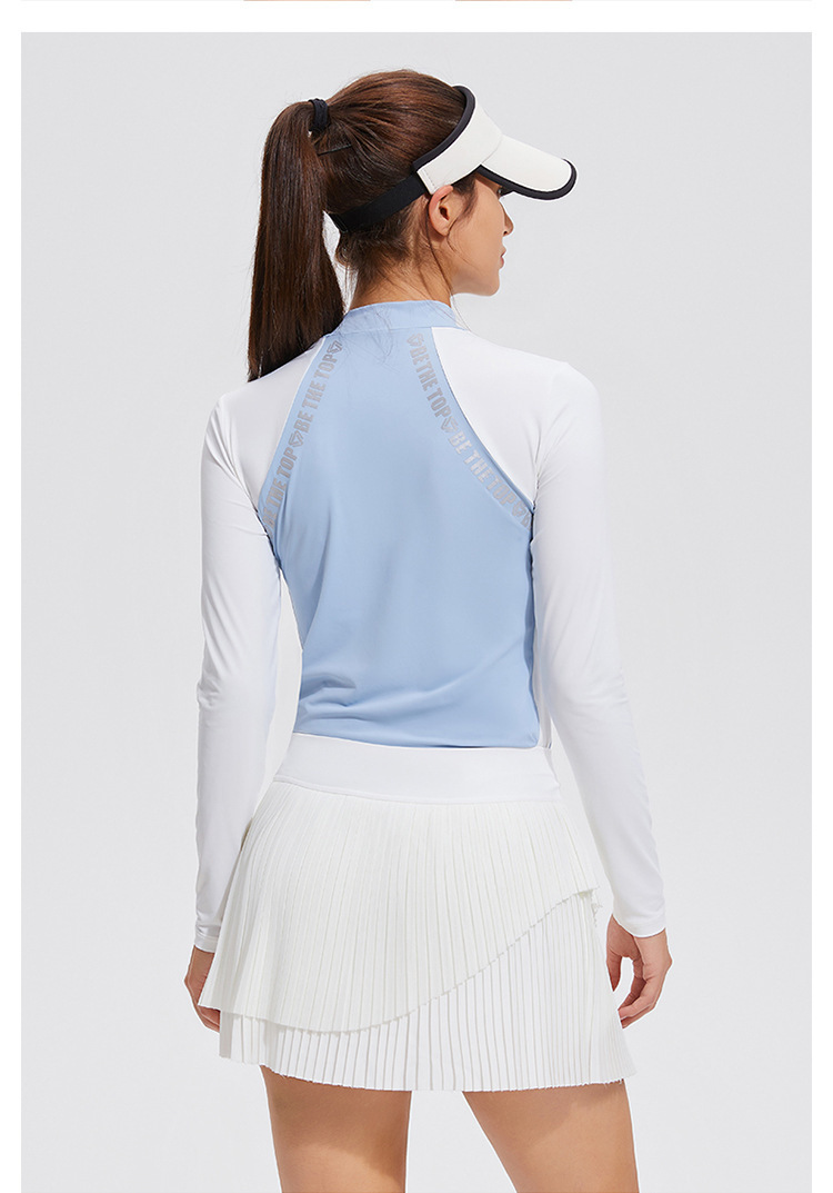 컬러 블록 세미 하이 칼라 긴 소매 골프 세트 얇은 통기성 여름 달리기 곡선 여성의 높은 탄성 야외 스포츠