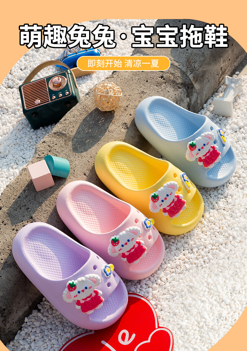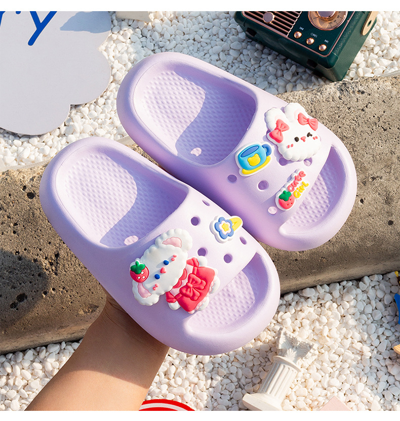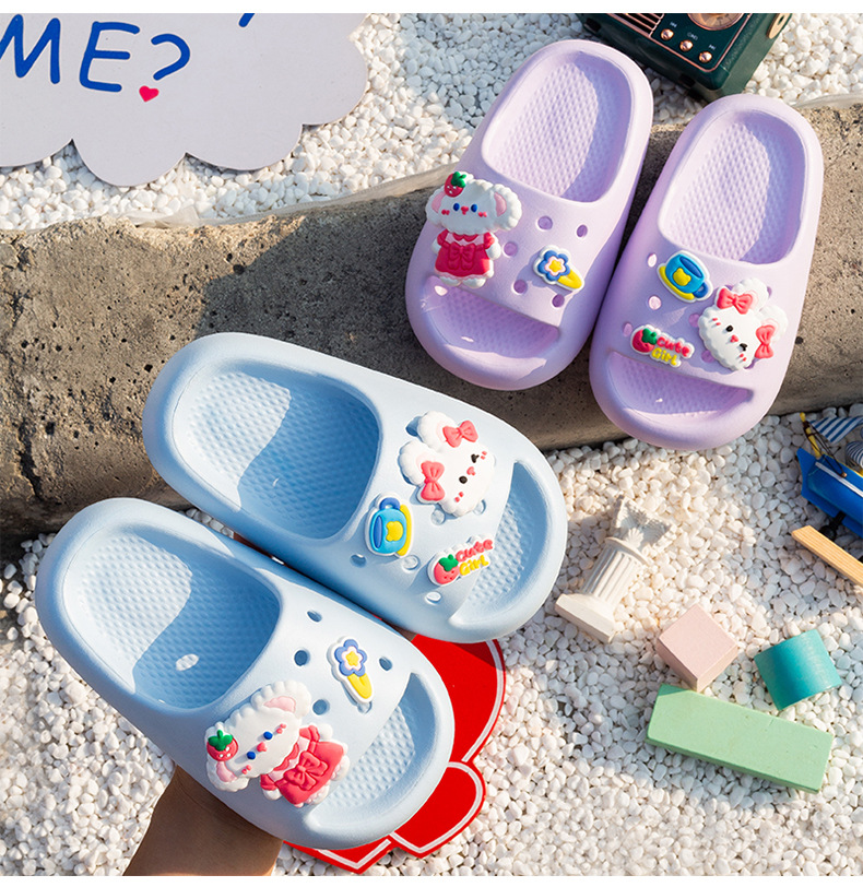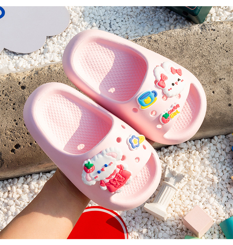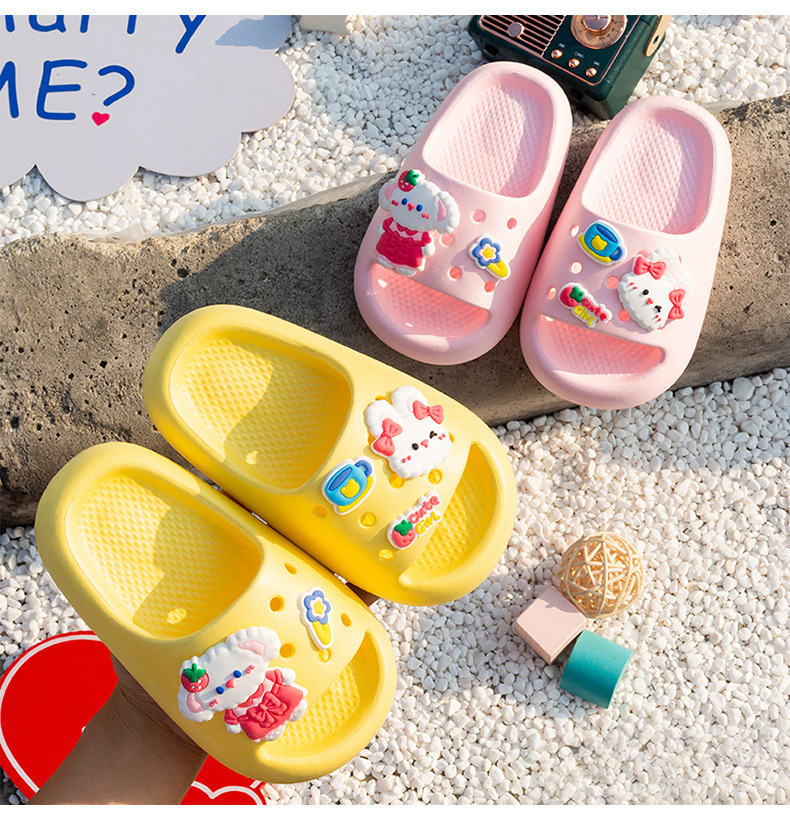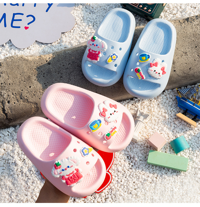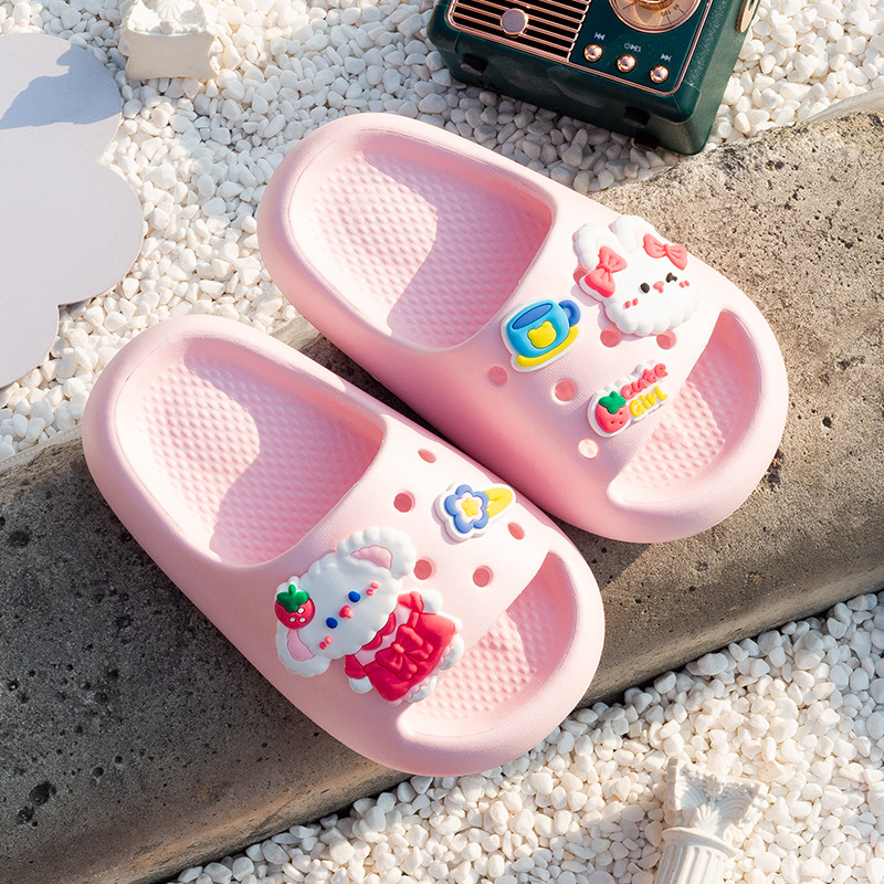 여름 만화 토끼 소년 소녀를위한 어린이 슬리퍼 홈 두꺼운 밑창 편안한 한 단어 슬리퍼 귀여운 겉옷 샌들과 슬리퍼