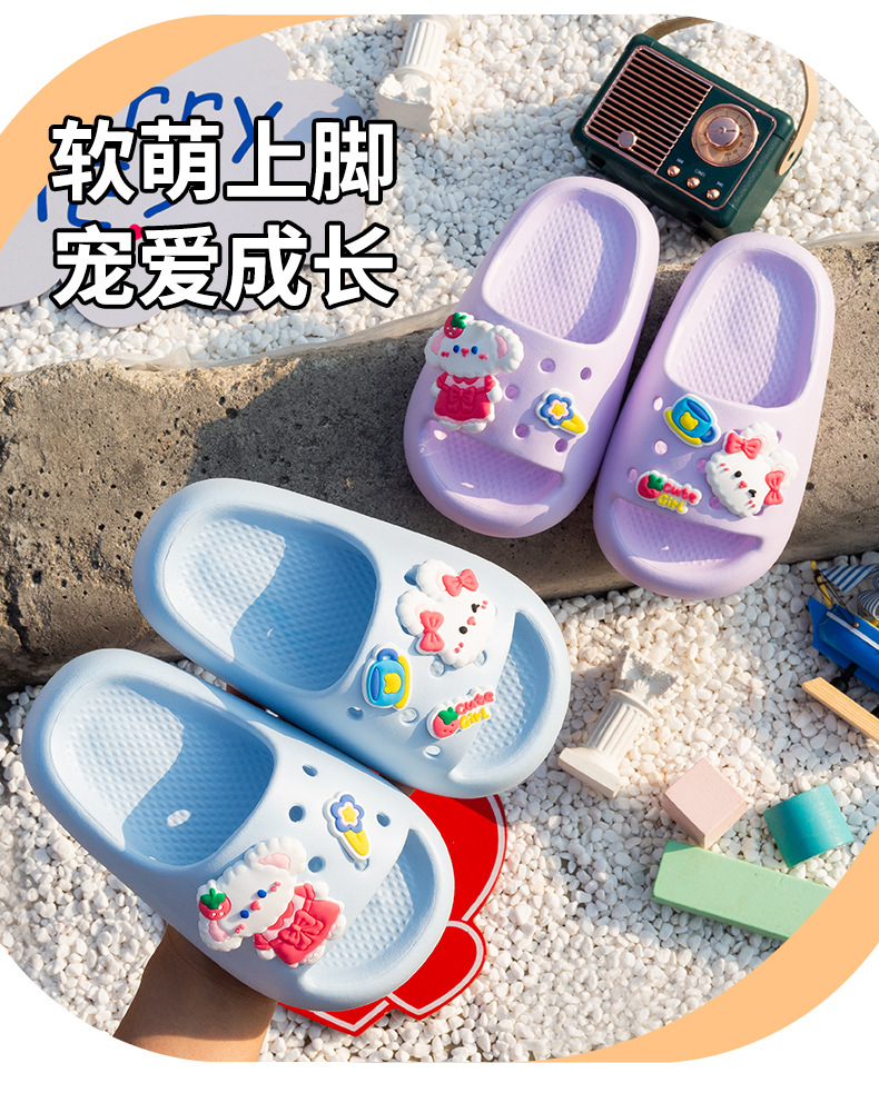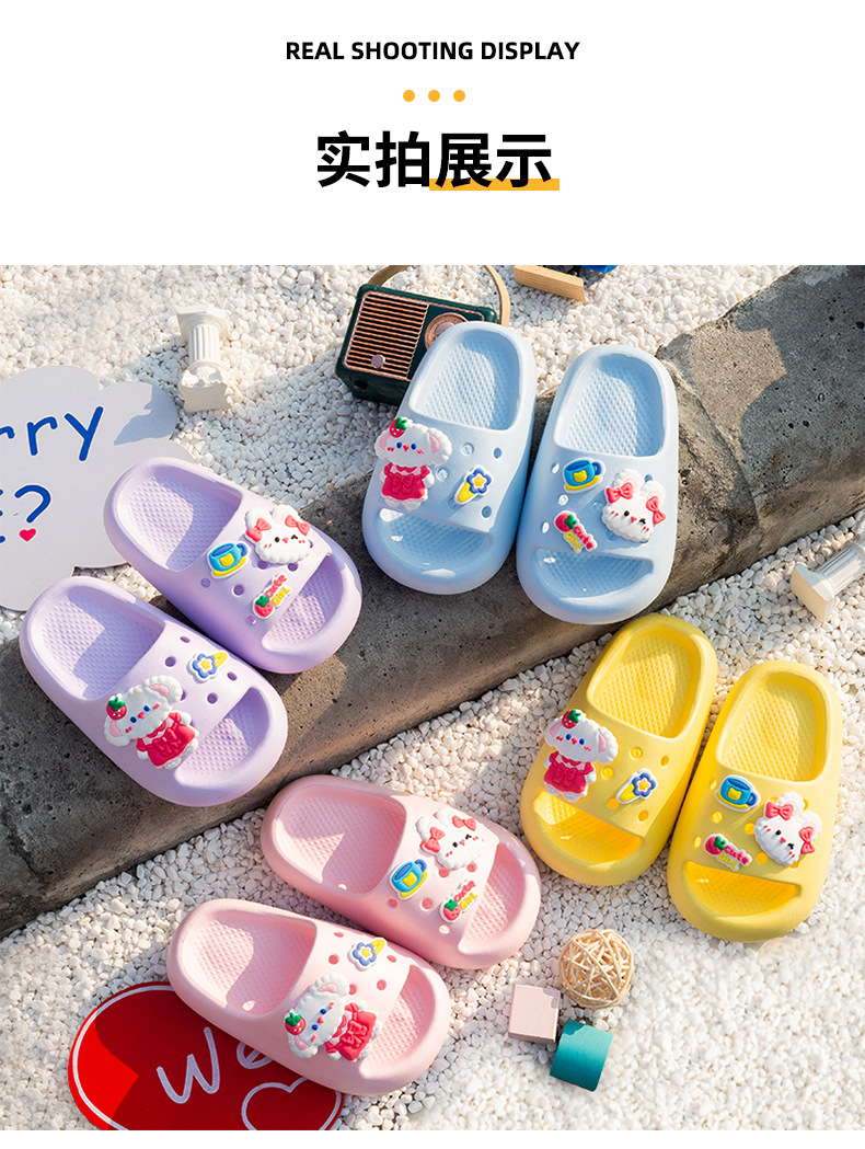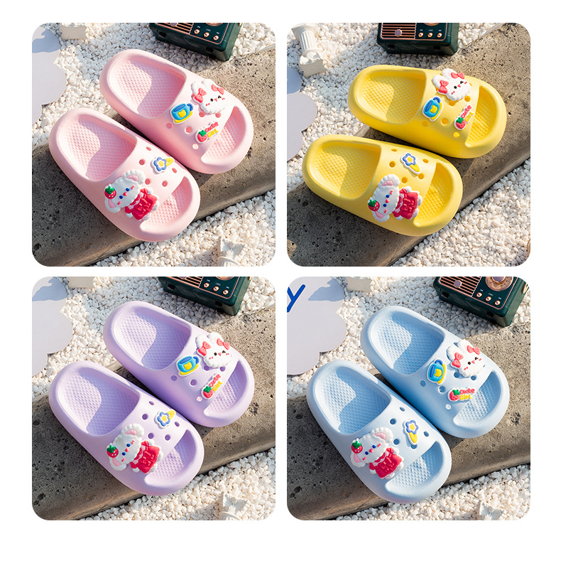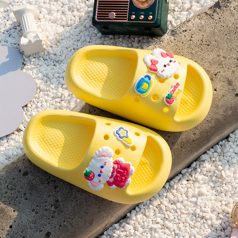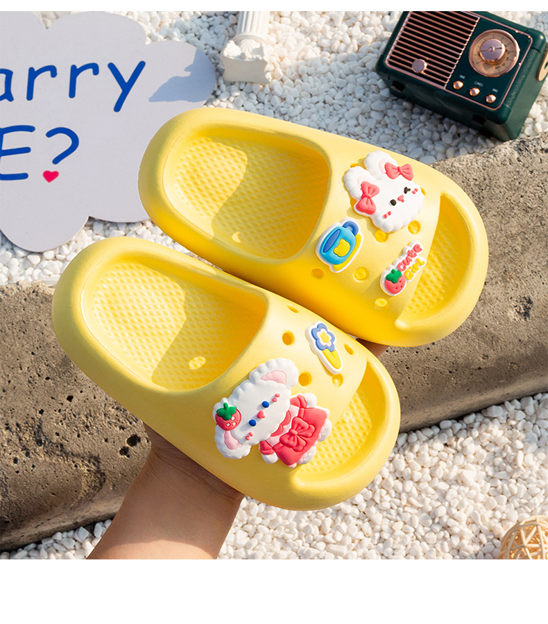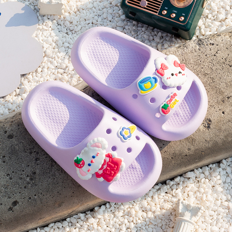 여름 만화 토끼 소년 소녀를위한 어린이 슬리퍼 홈 두꺼운 밑창 편안한 한 단어 슬리퍼 귀여운 겉옷 샌들과 슬리퍼