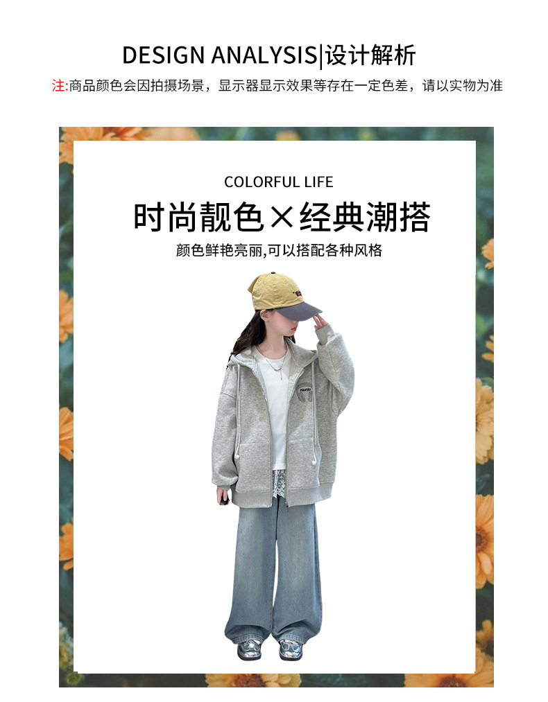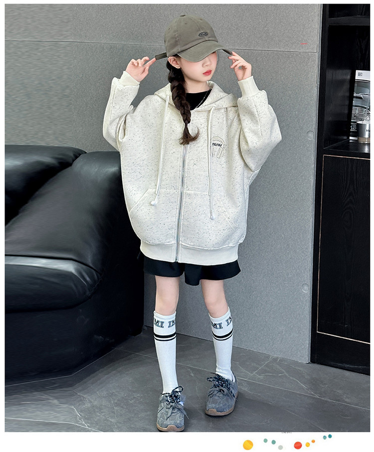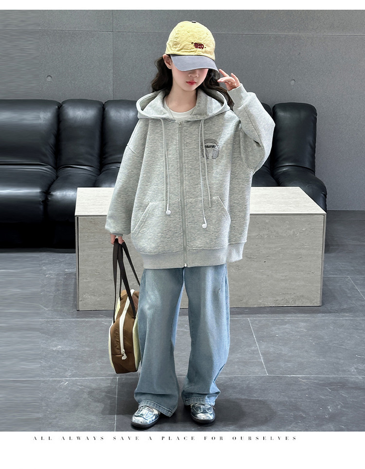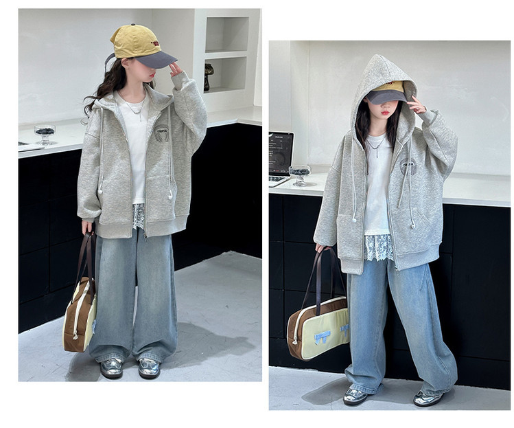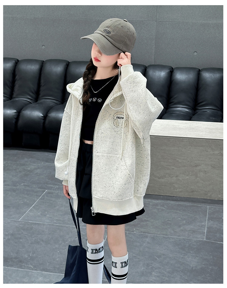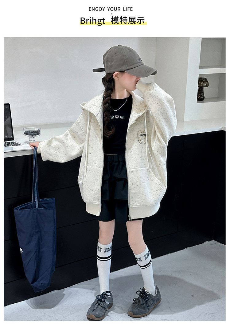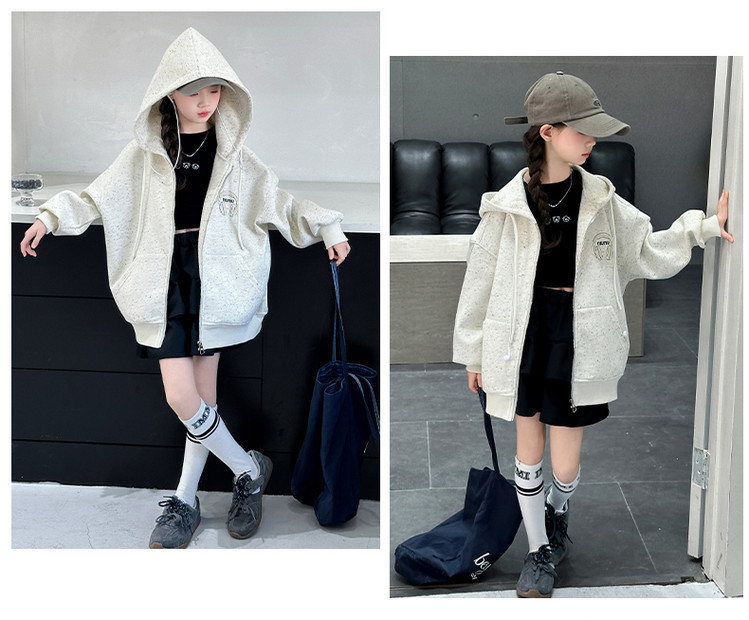 여아 코트 봄, 가을 2025 새로운 스타일 아동 스타일 느슨한 가을 의류 큰 어린이 가을 긴팔 캐주얼 후드 탑스토어 가기