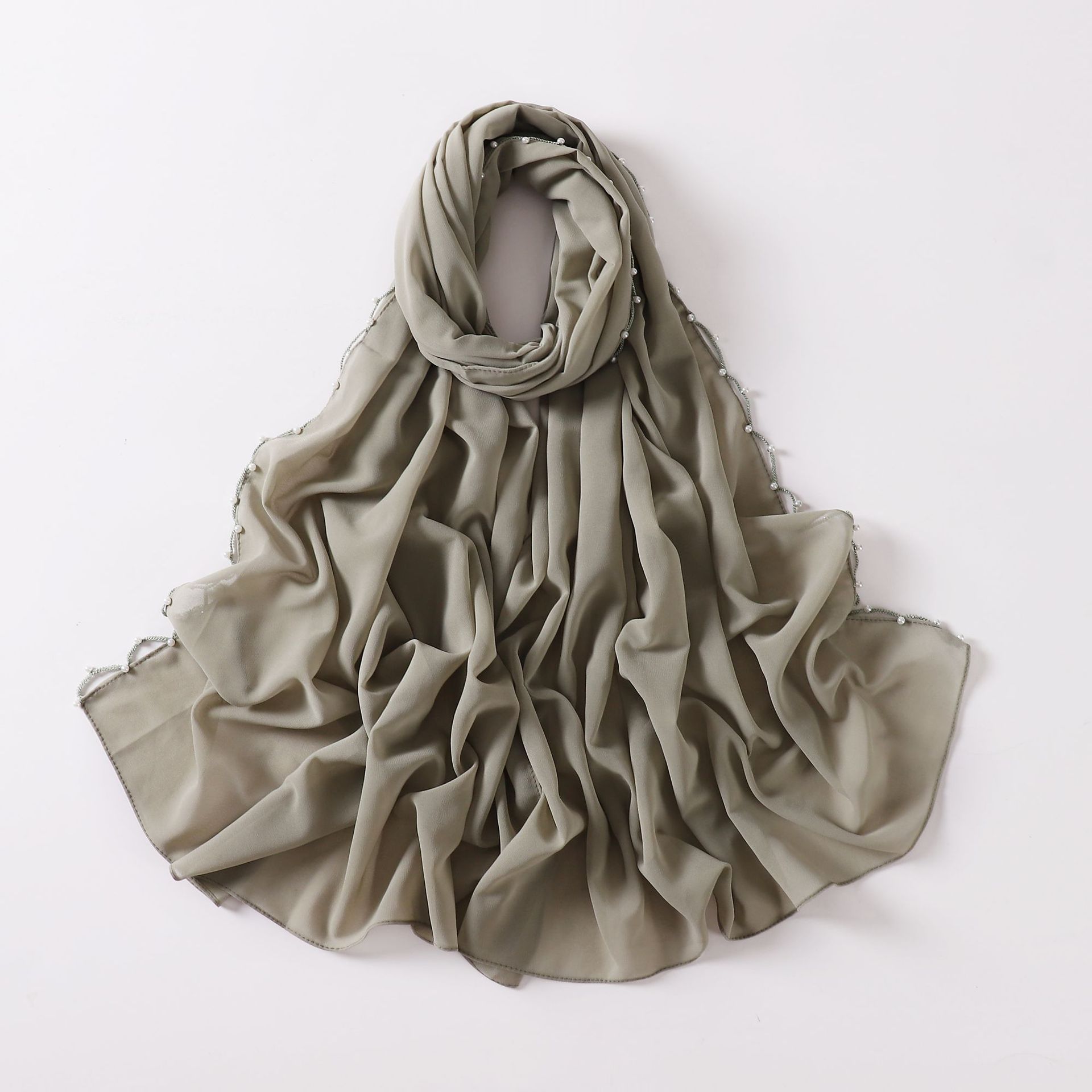 국경 단색 진주 시폰 웨이브 엣지 구슬 스카프 후이 스카프 말레이 헤드 스카프 중동 아프리카 히잡스토어 가기