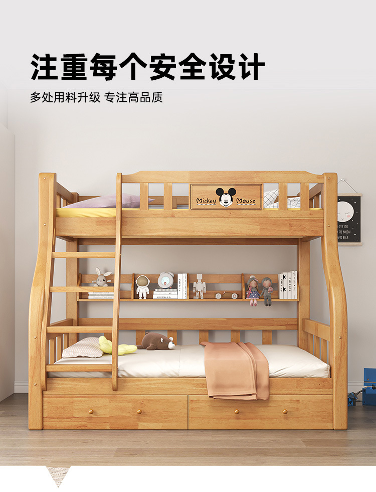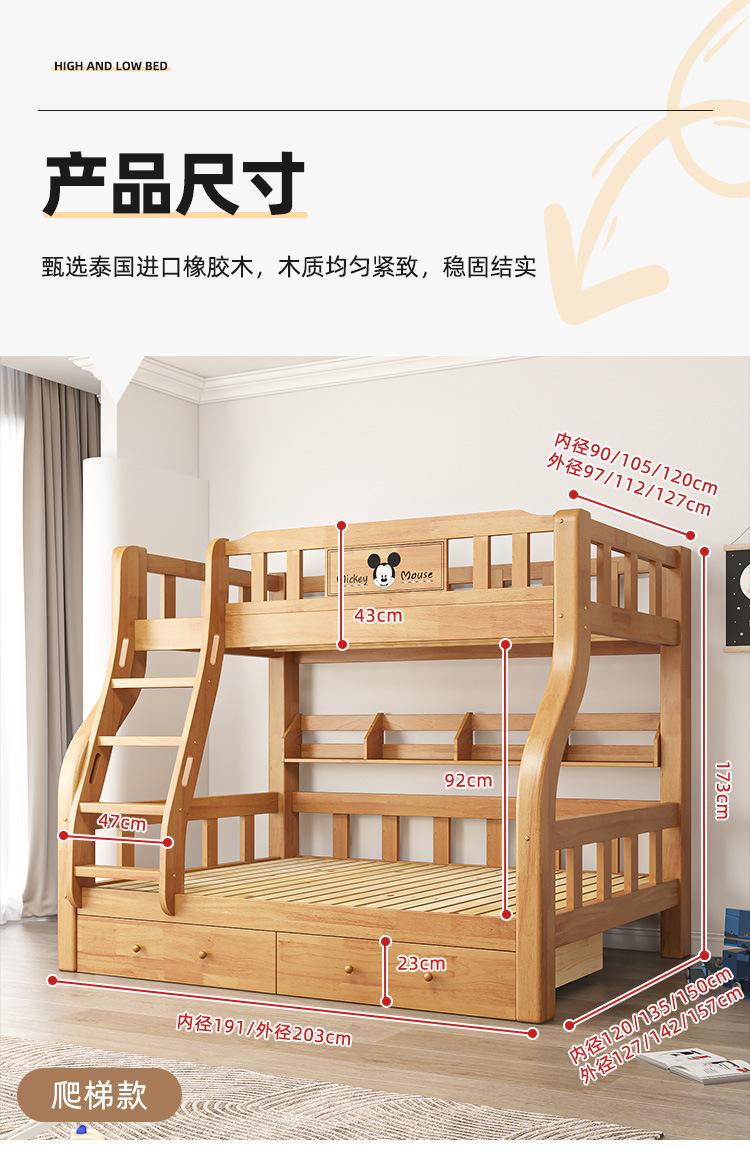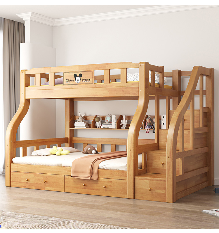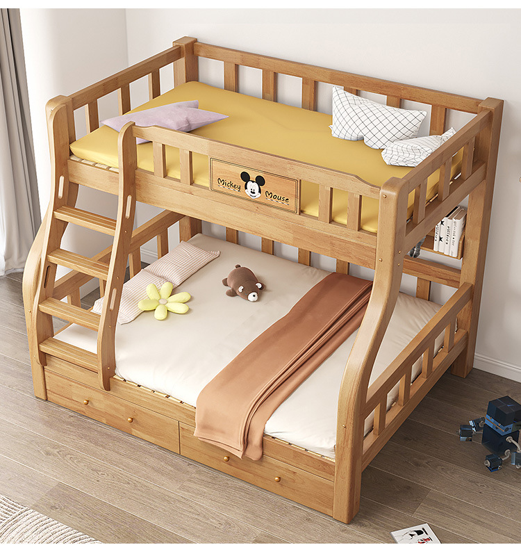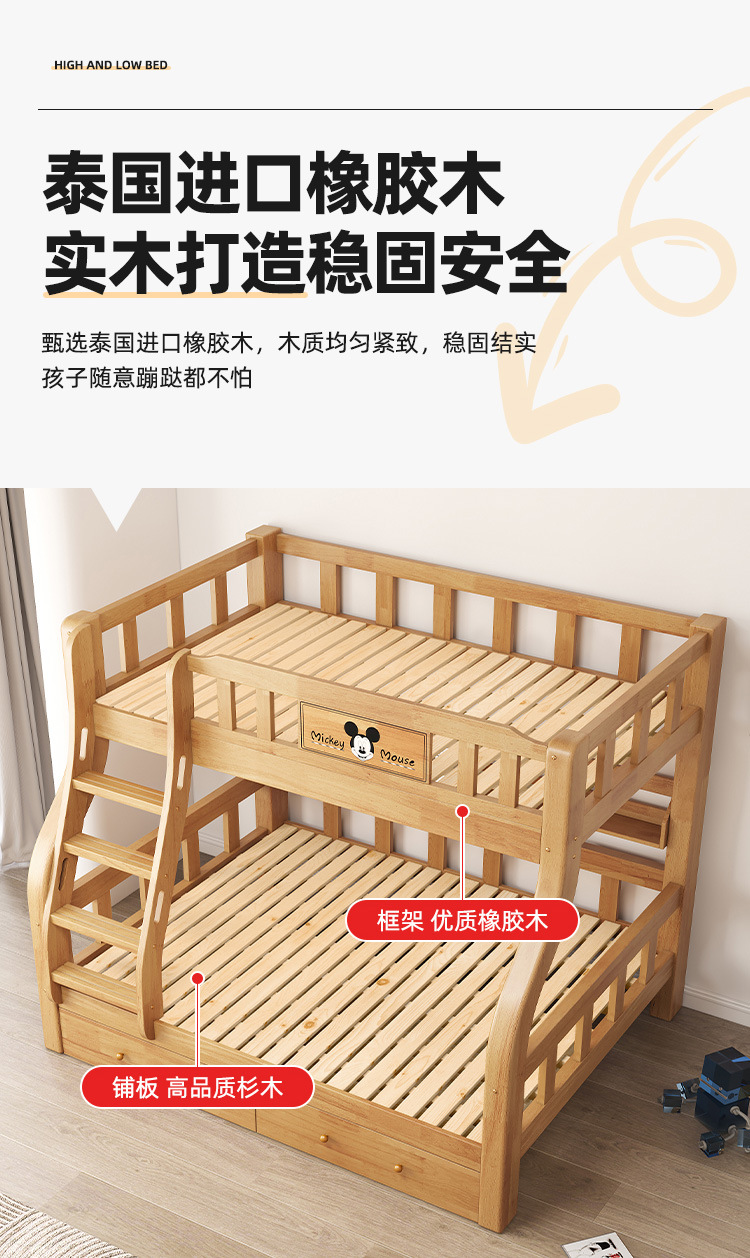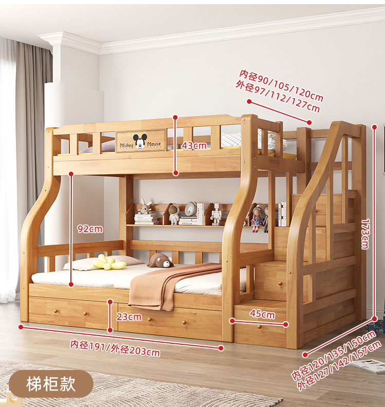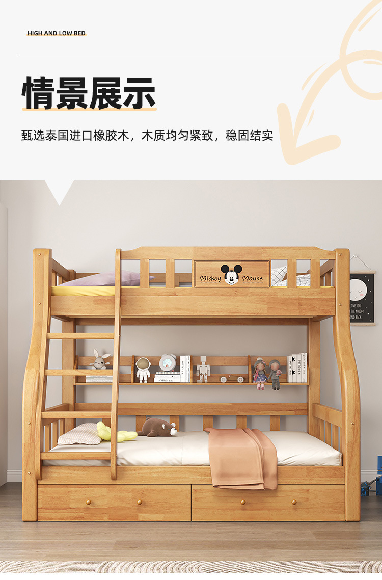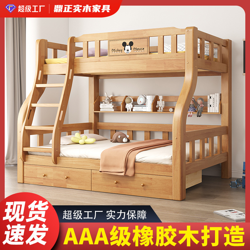 고무 나무 단단한 나무 상하 침대 이층 침대 가정 두꺼운 상하 이층 침대 어린이 침실 어머니 침대 작은 아파트 더블 침대