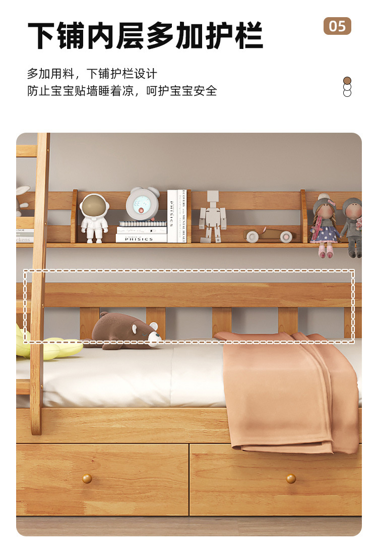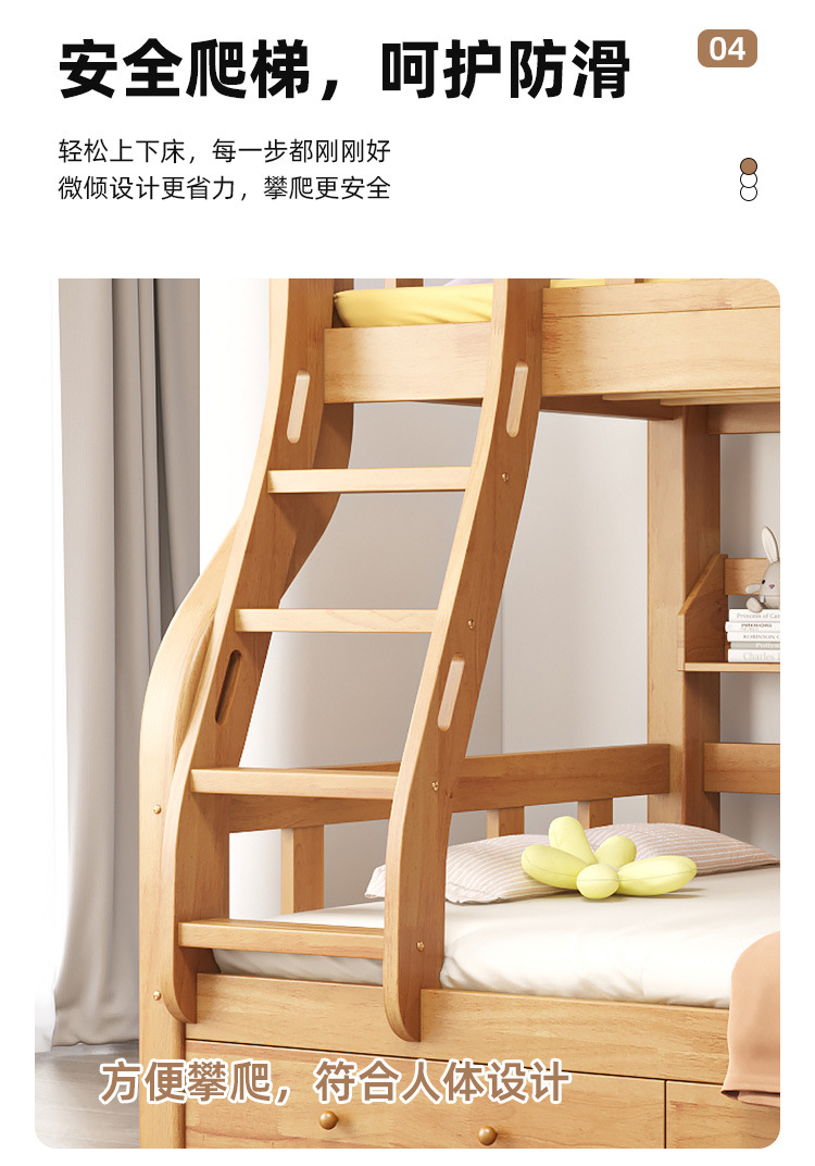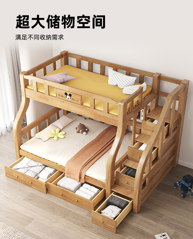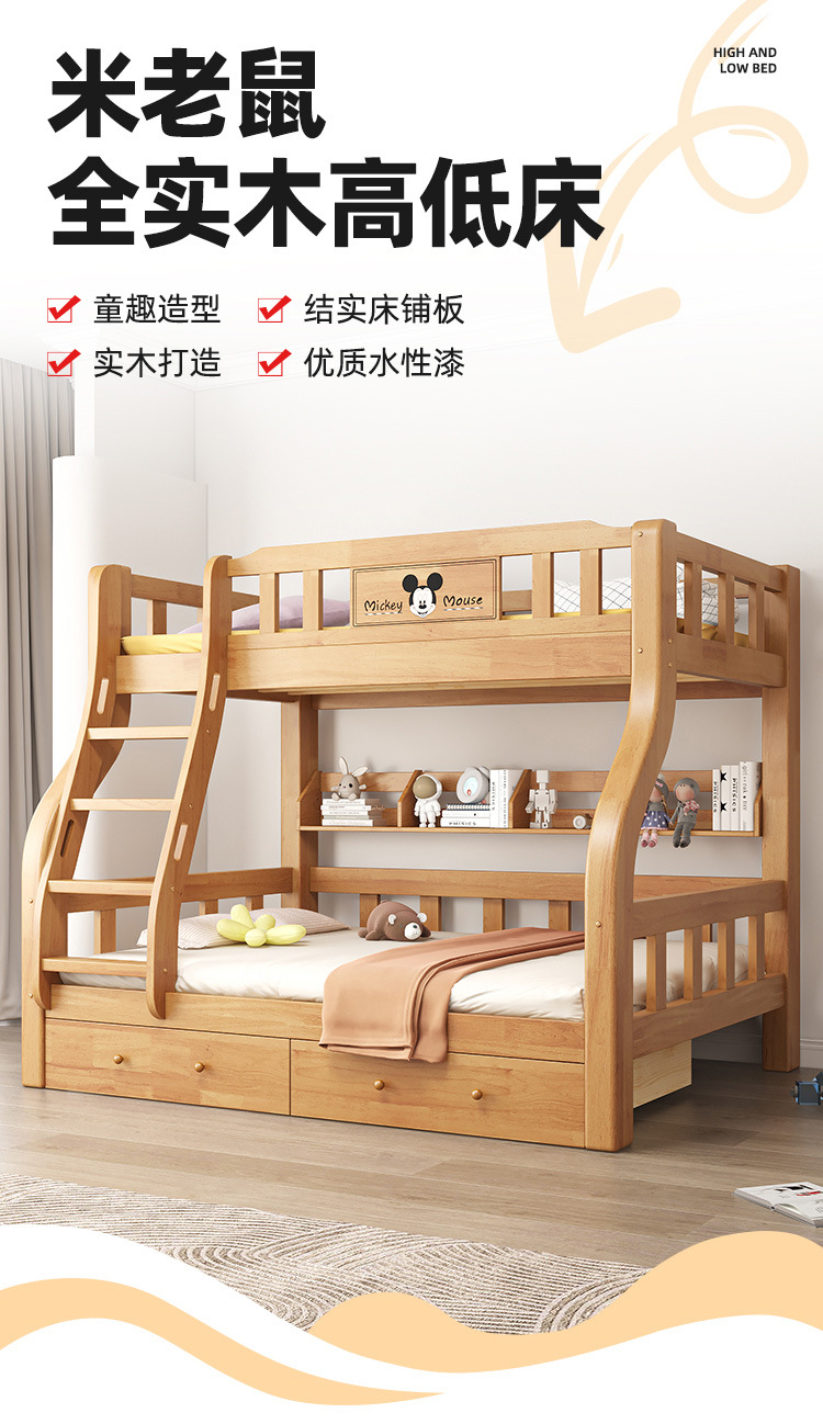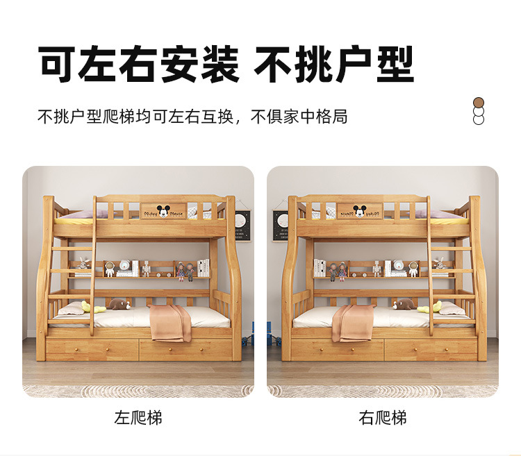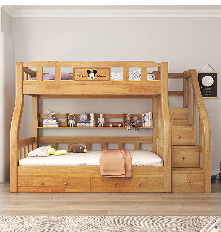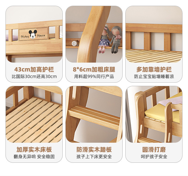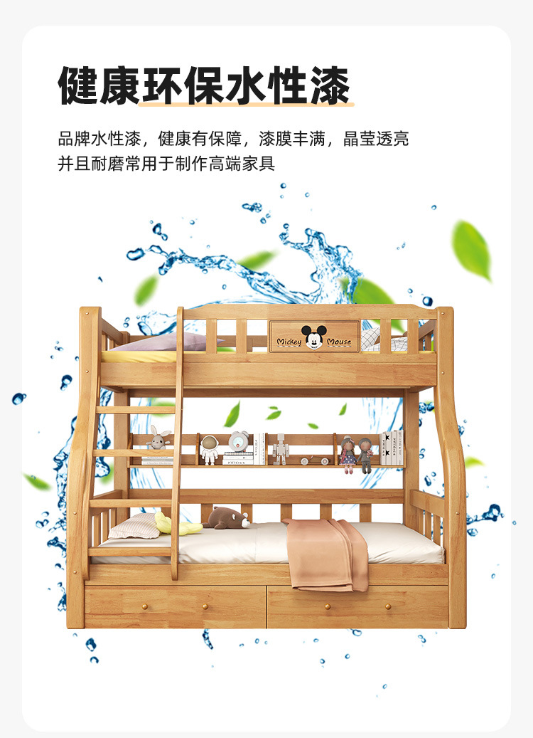 고무 나무 단단한 나무 상하 침대 이층 침대 가정 두꺼운 상하 이층 침대 어린이 침실 어머니 침대 작은 아파트 더블 침대
