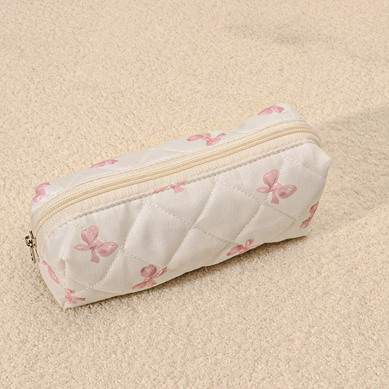 粉白蝴蝶结绗缝小化妆包 20X6X7CM
