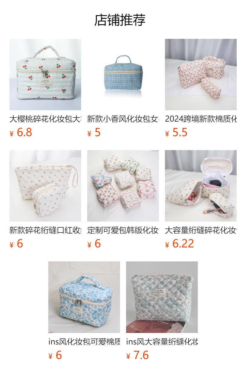 净重:粉白蝴蝶结绗缝手提化妆包 100G左右