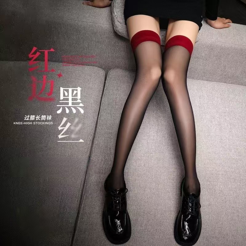 • 얇은 스플라이스 무릎 위 양말, 피부 실크 레드 엣지