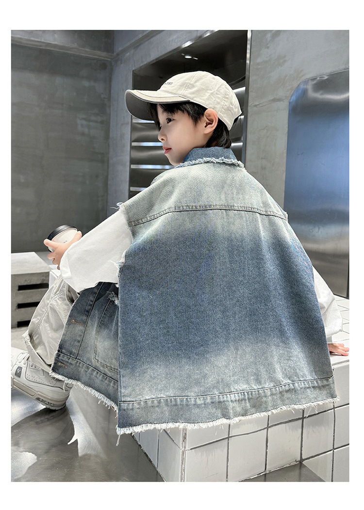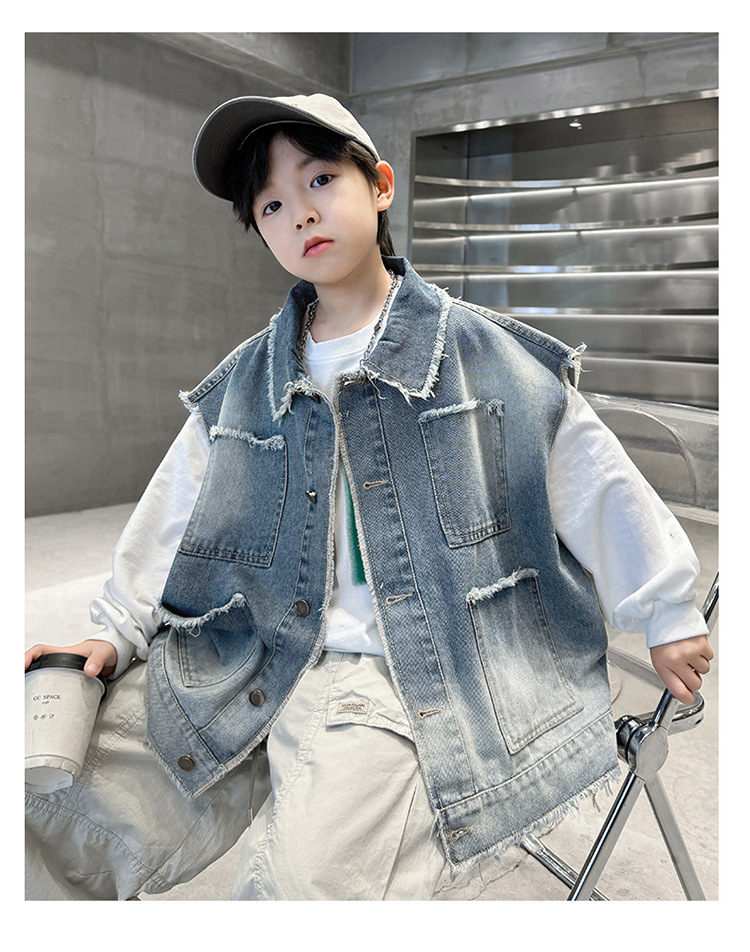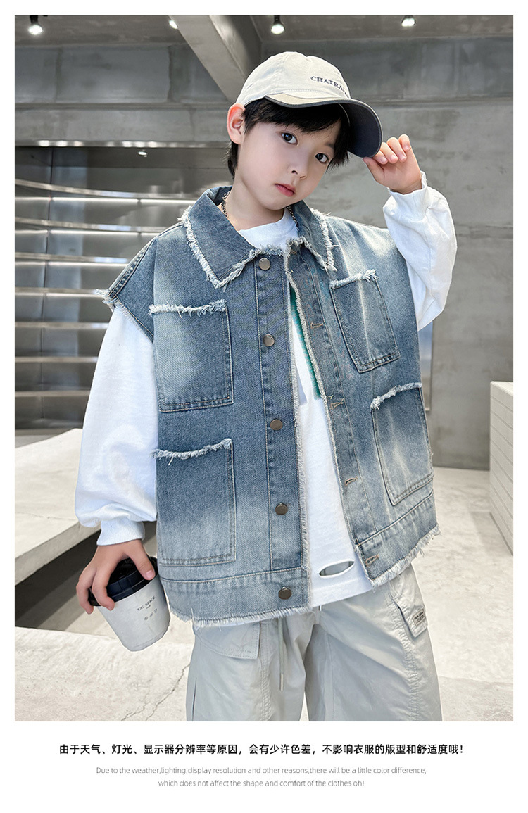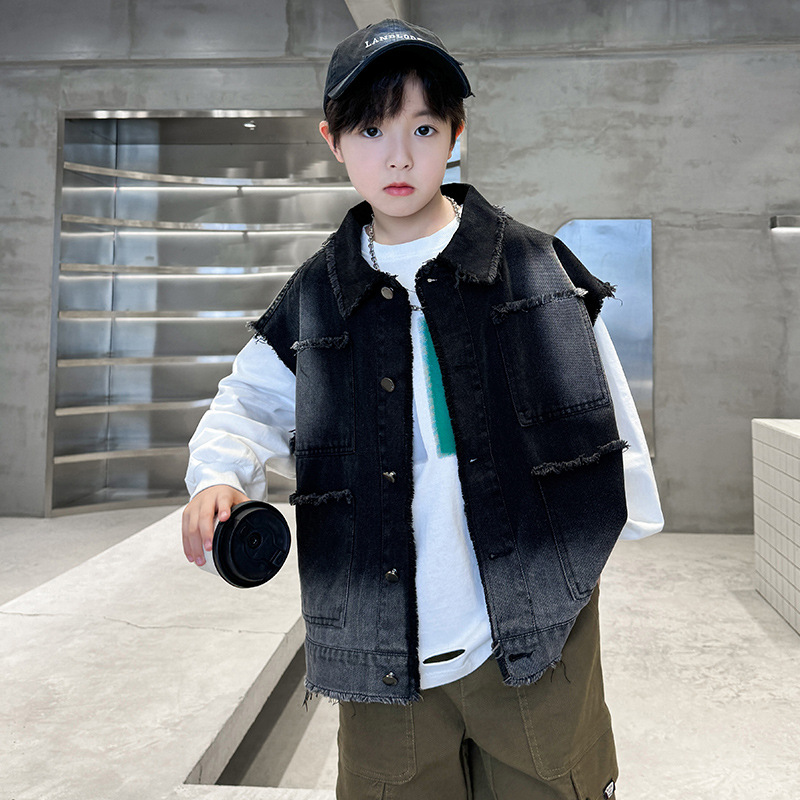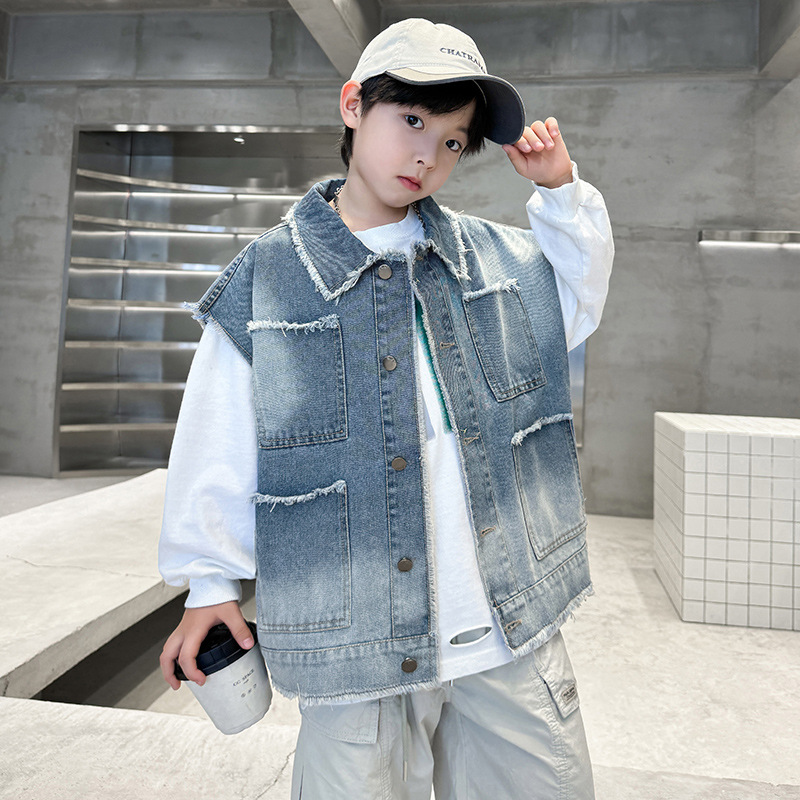 남학생 봄 데님 양복 조끼 2025 소년 큐크 어린이 잘 생긴 캐주얼 외국 스타일 양복 조끼스토어 가기