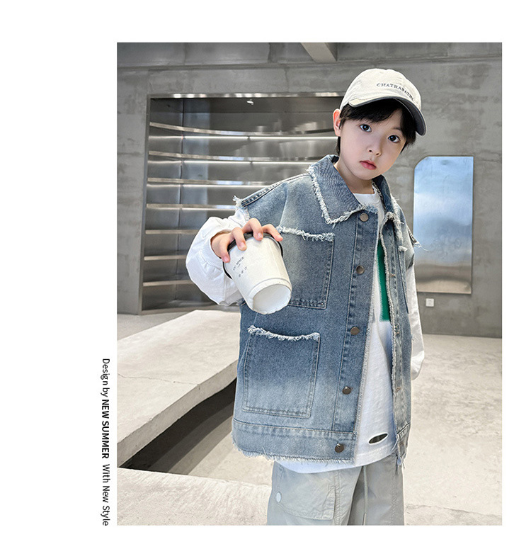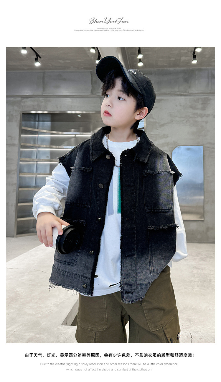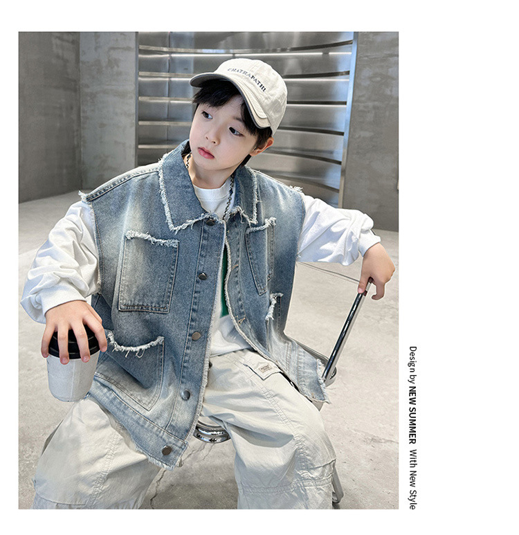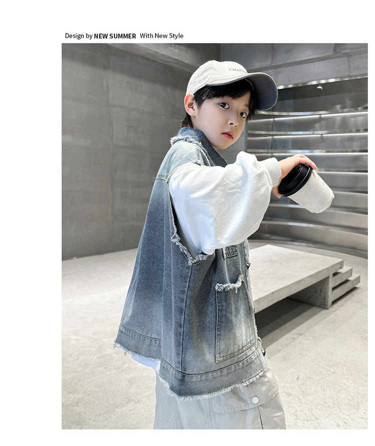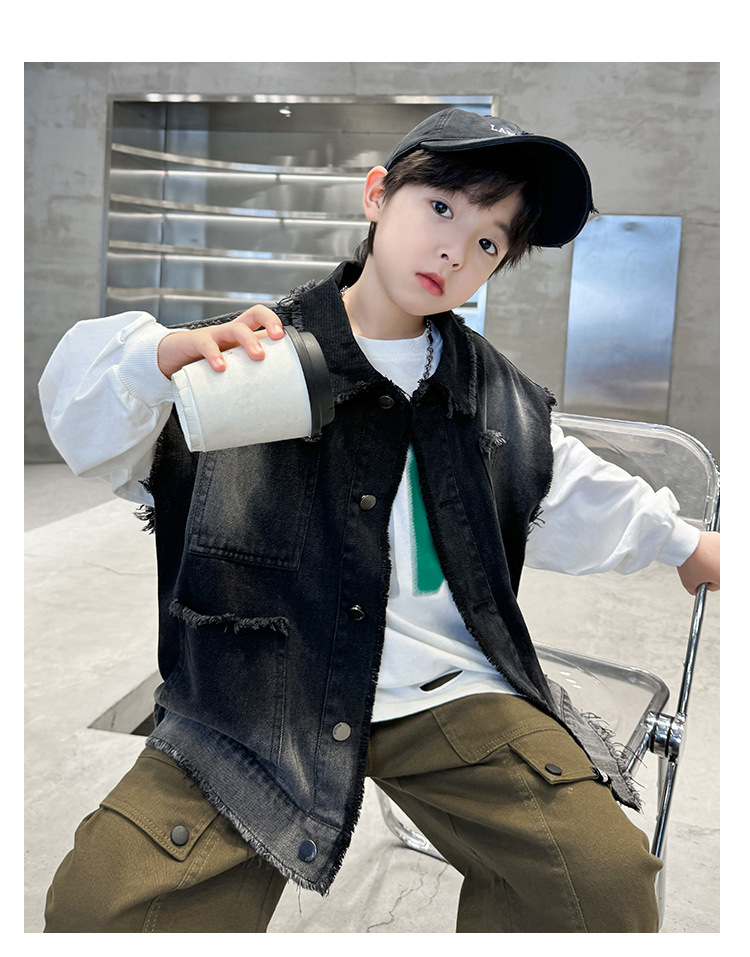 남학생 봄 데님 양복 조끼 2025 소년 큐크 어린이 잘 생긴 캐주얼 외국 스타일 양복 조끼스토어 가기