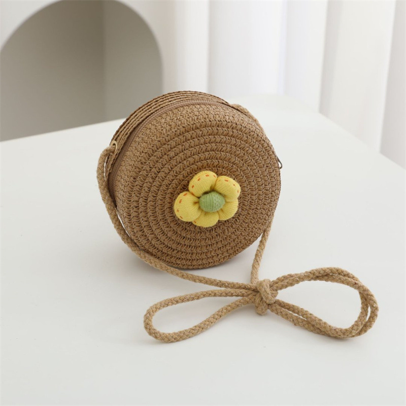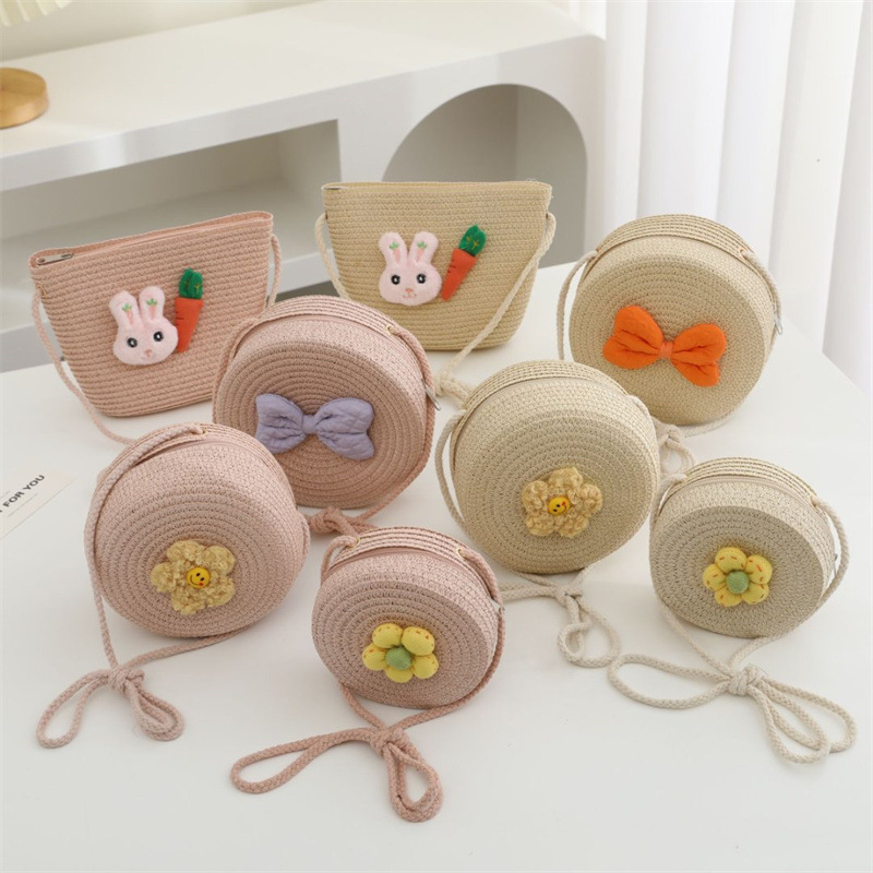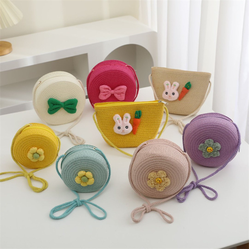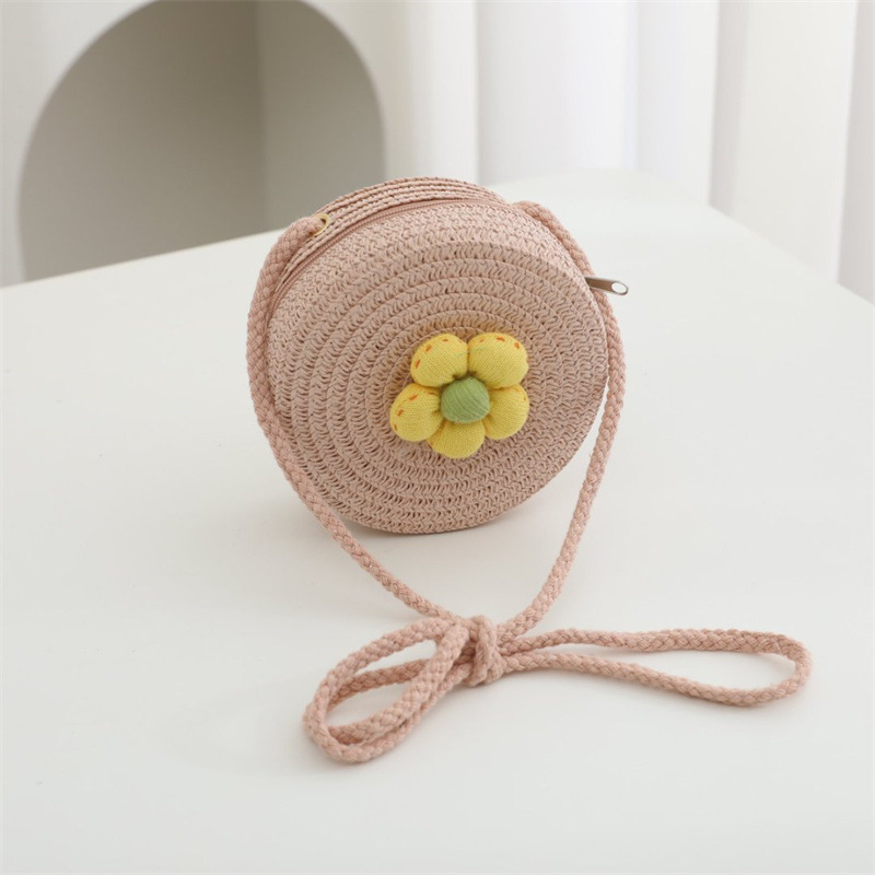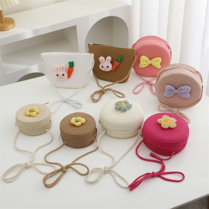 어린이 가방 여성 귀여운 아기 작은 배낭 크로스 바디 해변 밀짚 가방 꽃 미니 동전 지갑 밀짚 가방