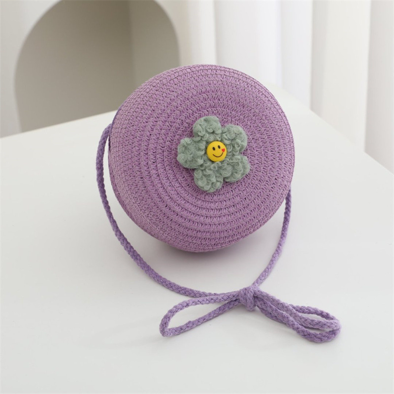 • 보라색 스마일리 플라워 라운드 백 직경 15cm