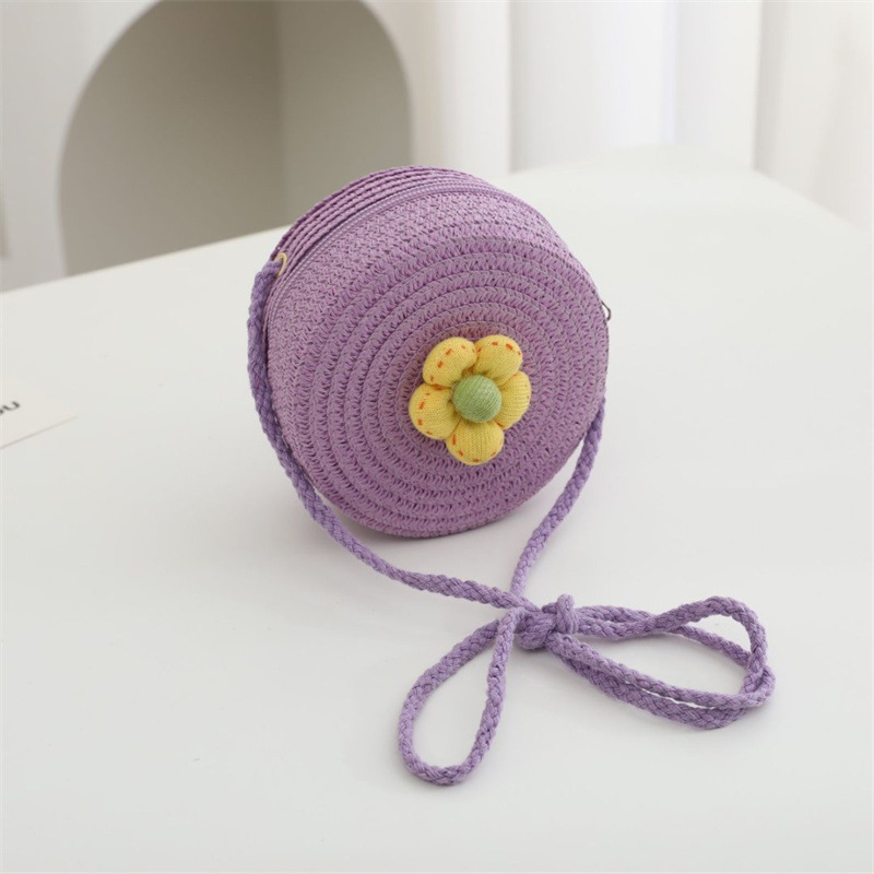 • 보라색 노란색 꽃 원형 가방 직경 12cm
