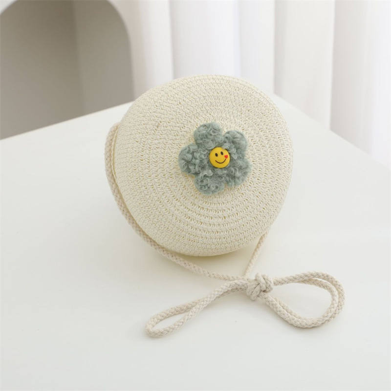 • 크림 화이트 스마일리 플라워 라운드 백 직경 15cm