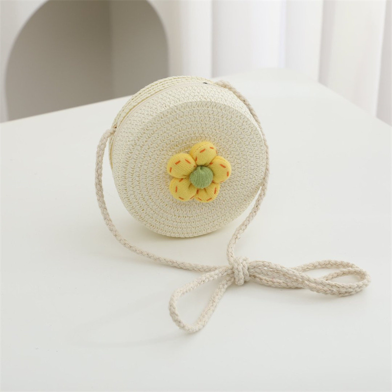 • 유백색 노란색 꽃 원형 가방 직경 12cm