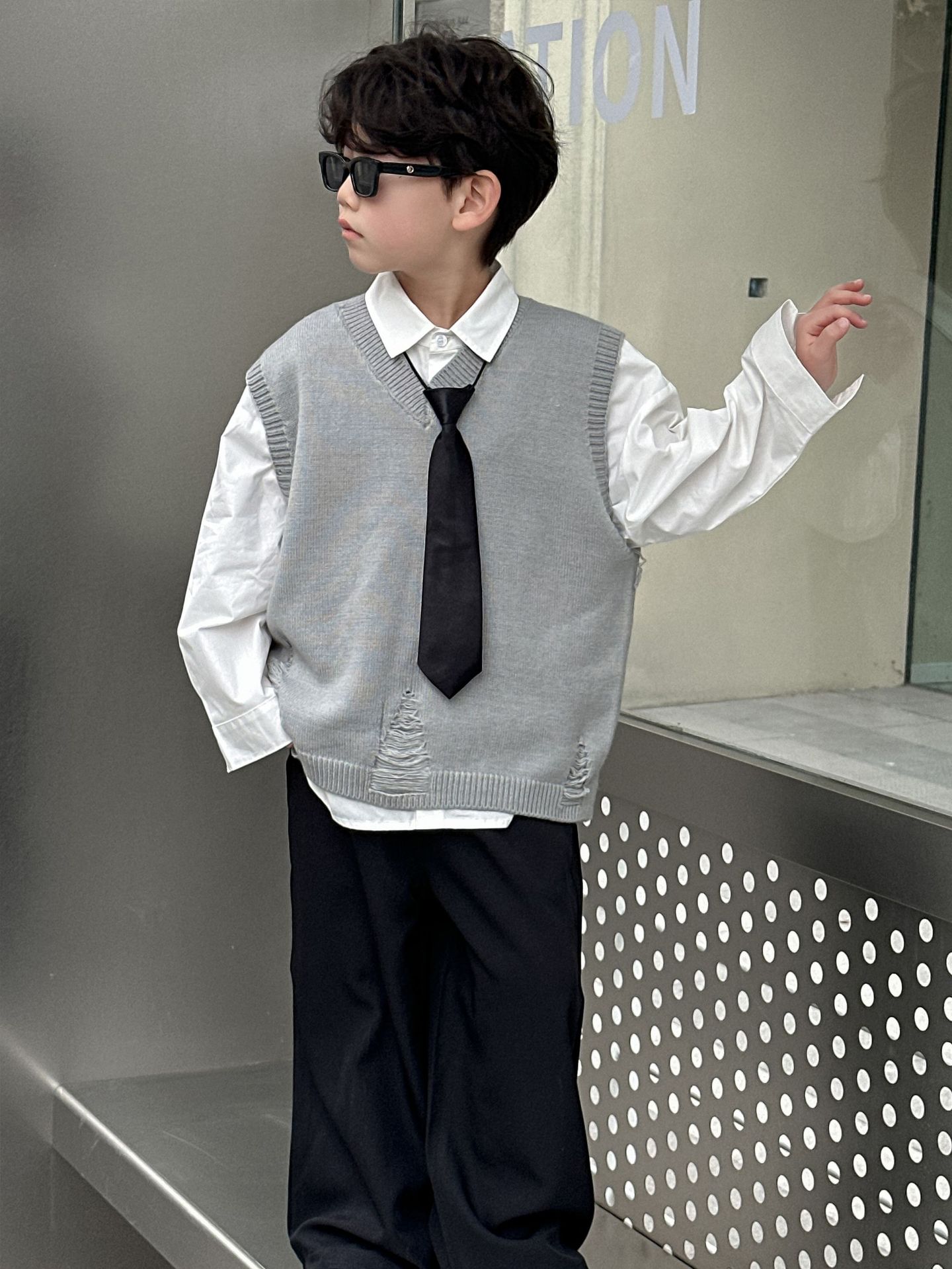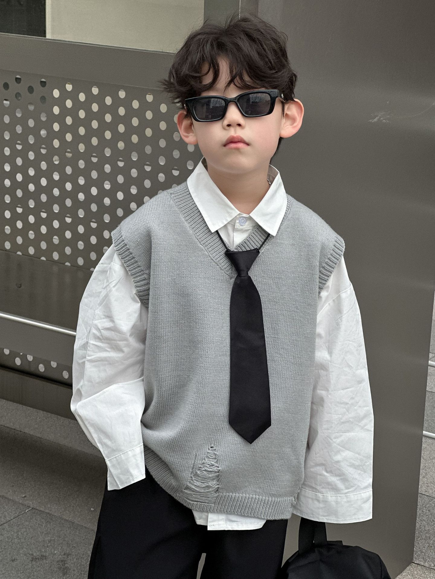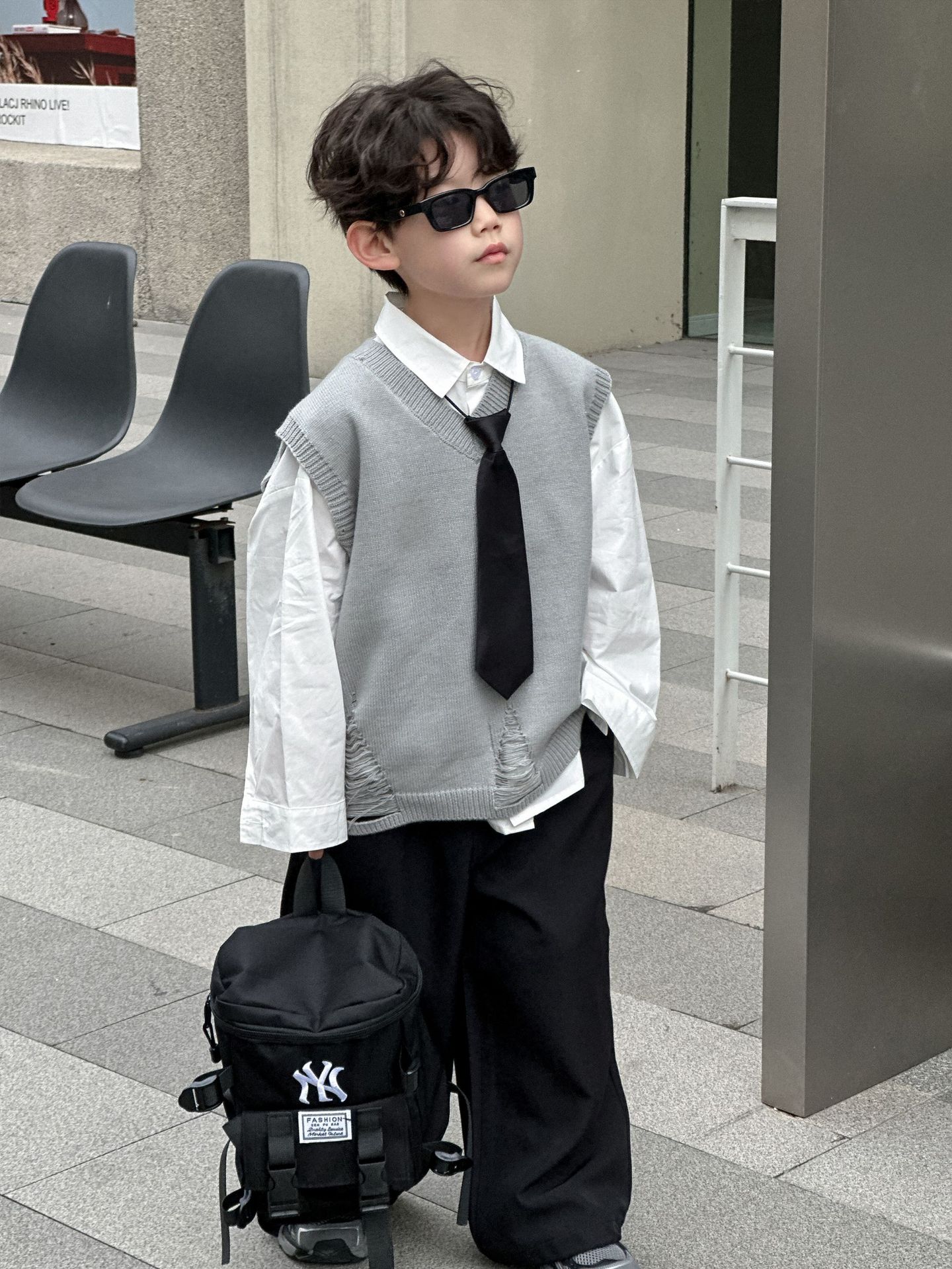 소년 한국 스웨터 2025 봄 새로운 어린이 패션 조끼 니트 셔츠 어린이 캐주얼 풀오버 트렌디스토어 가기