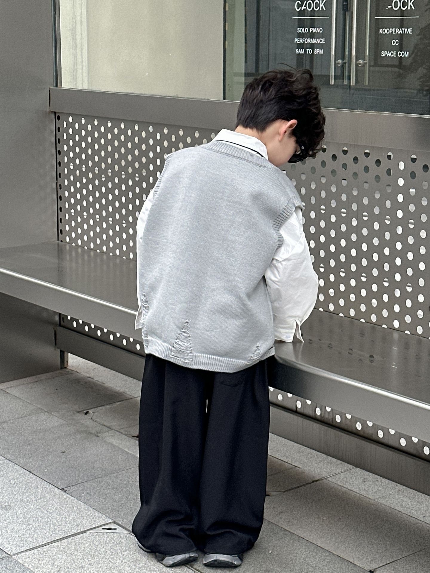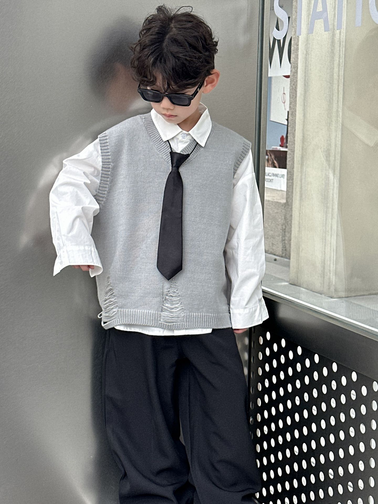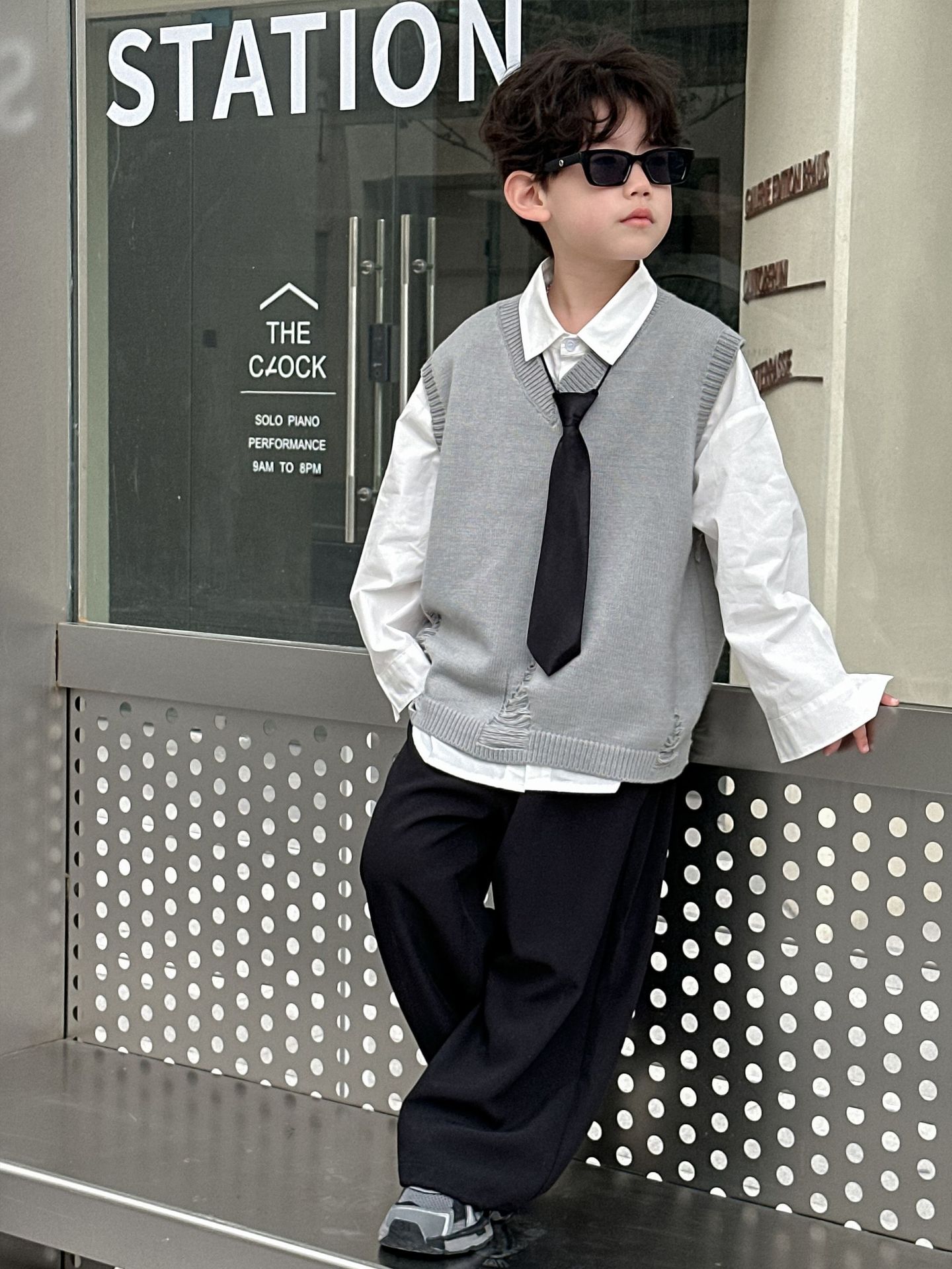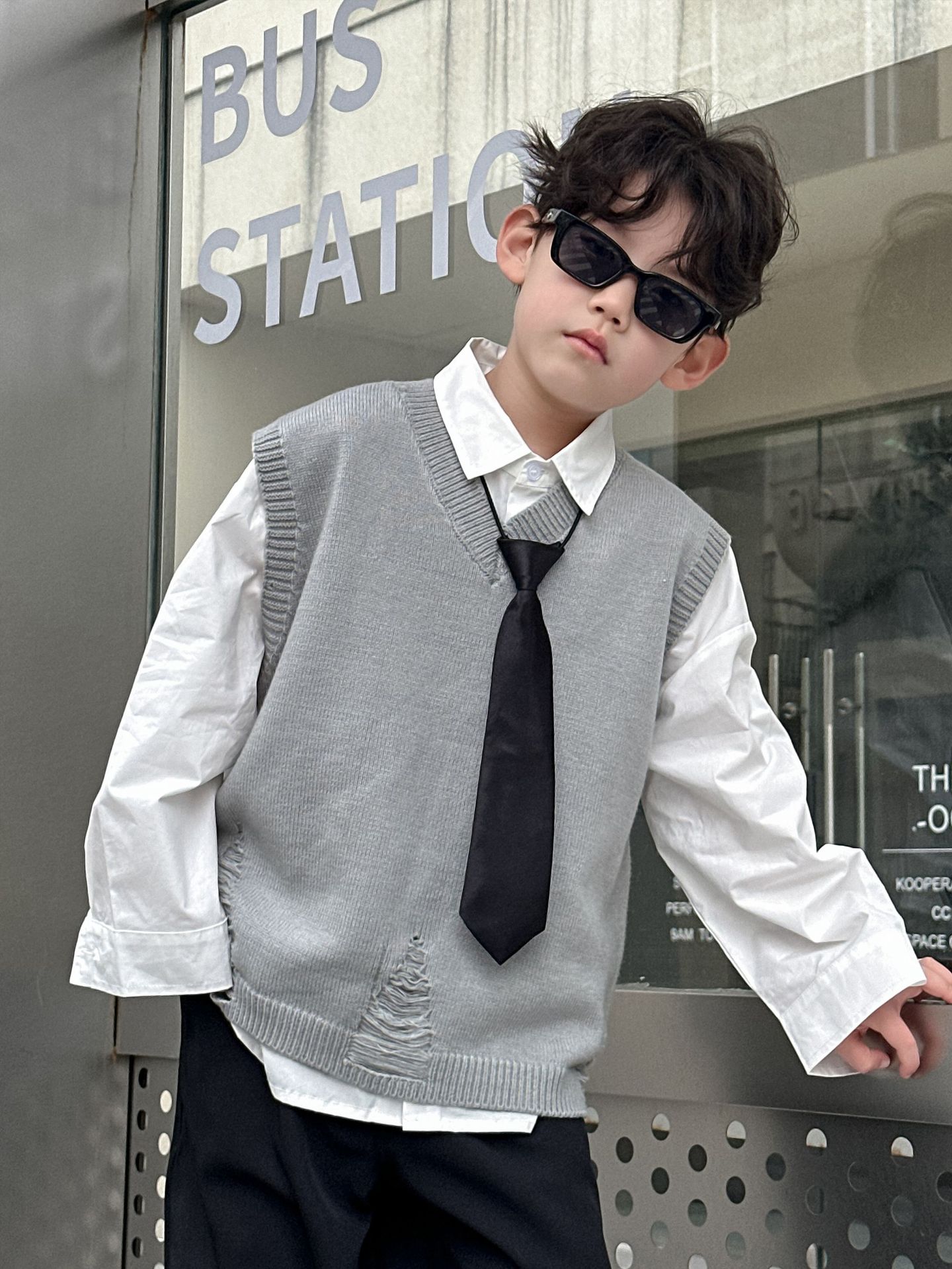 소년 한국 스웨터 2025 봄 새로운 어린이 패션 조끼 니트 셔츠 어린이 캐주얼 풀오버 트렌디스토어 가기