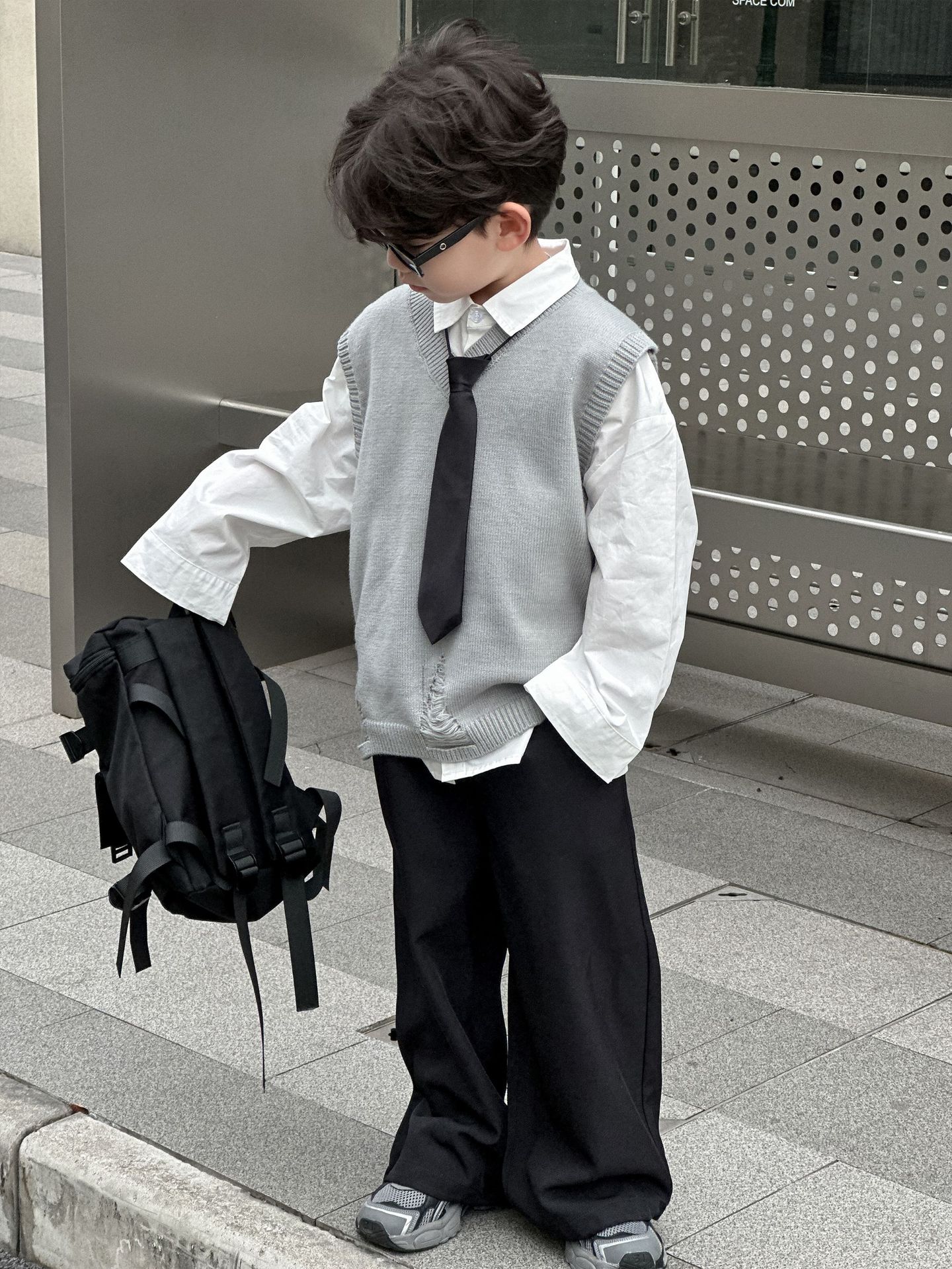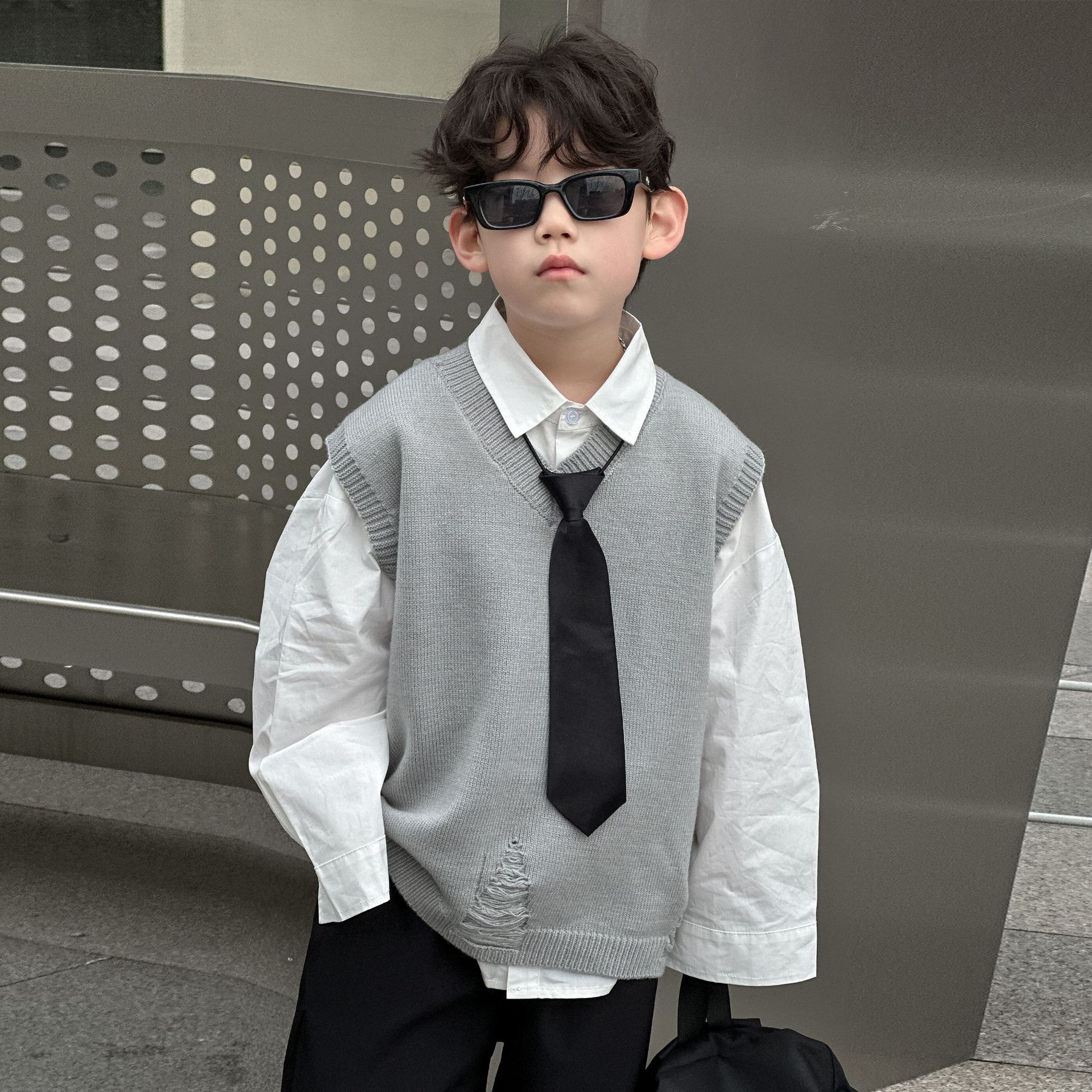 소년 한국 스웨터 2025 봄 새로운 어린이 패션 조끼 니트 셔츠 어린이 캐주얼 풀오버 트렌디