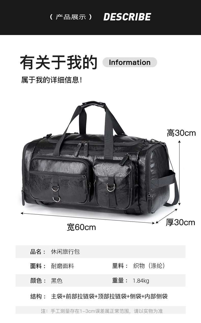 국경 간 PU 가죽 다목적 여행 가방 어깨 손 크로스 바디 가방 여행 수하물 가방 신발 창고 배낭 대용량
