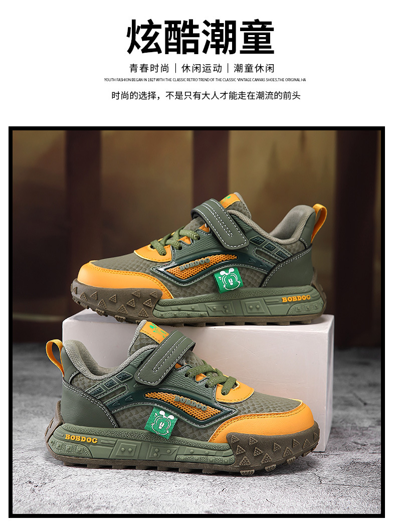 바부두 남아 신발 2025년 봄 가을 신상 아동 가죽 운동화 중대형 아동 통기성 메쉬 신발스토어 가기