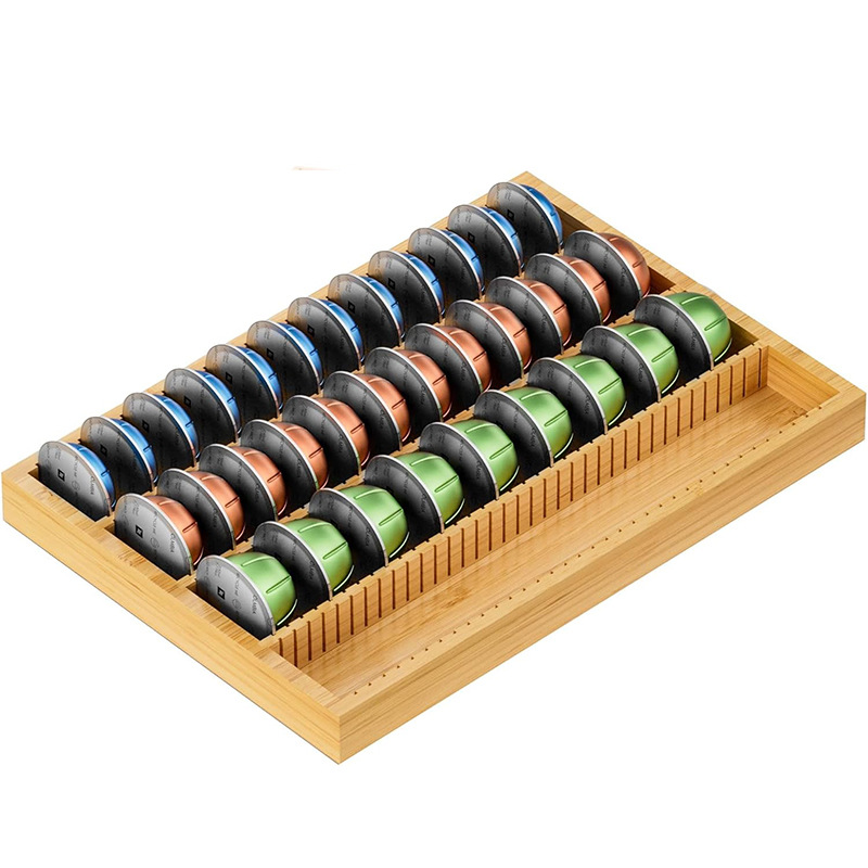 사무실 커피 랙 서랍 플러그 인 카운터 커피 캡슐 랙 대나무 커피 콩 홈 주방 보관 랙