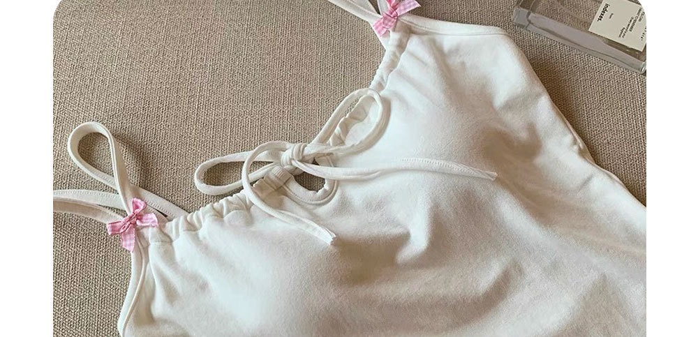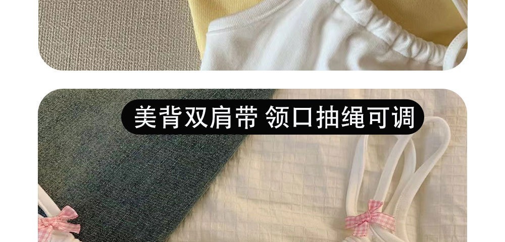 여름 새로운 도착 활 귀여운 작은 슬링 탑 가슴 패드 더블 어깨 스트랩 아름다운 백 디자인 센스 내부 조끼
