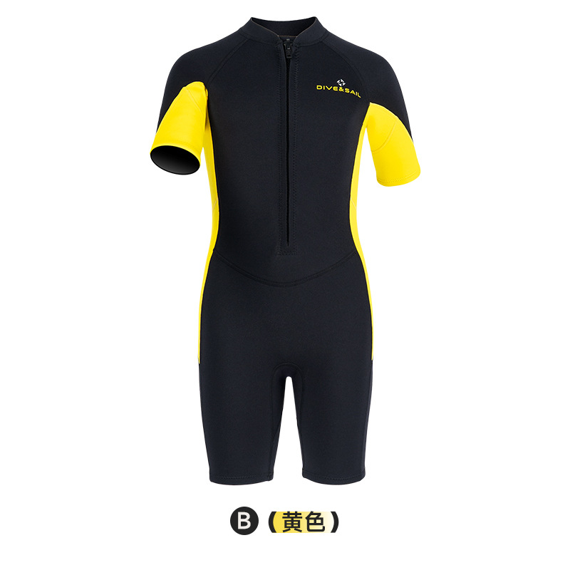 DIVE & SAIL2.5MM 어린이 따뜻한 잠수복 프론트 오픈 짧은 소매 잠수복 십대 스노클링 서핑 반바지