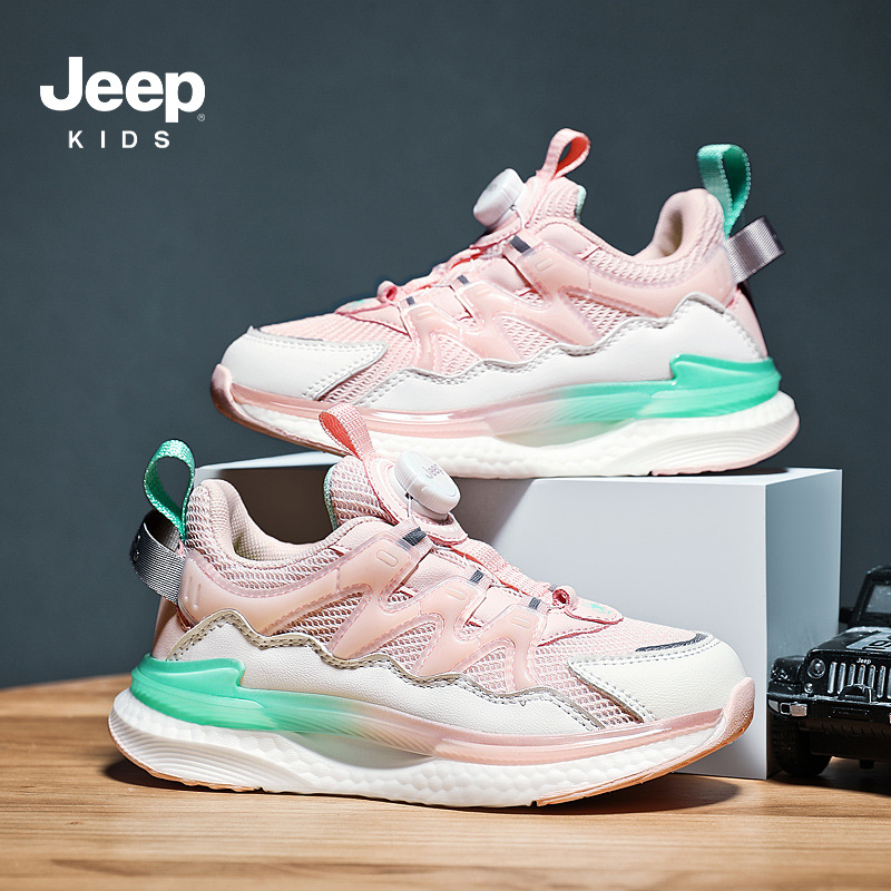 지프 어린이 신발 2025 봄 새로운 도착 회전 버튼 운동화 편안한 소프트 단독 여성용 신발 통기성 메쉬 얼굴 소년스토어 가기
