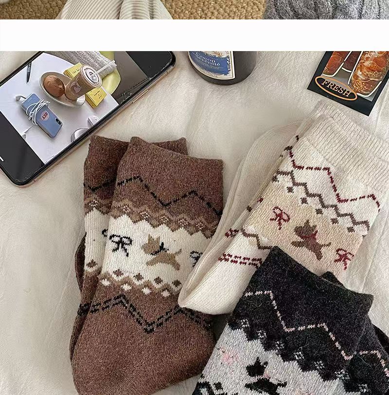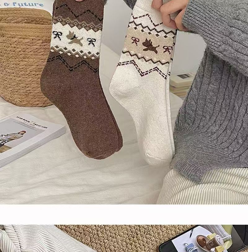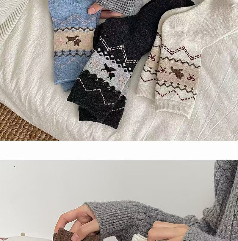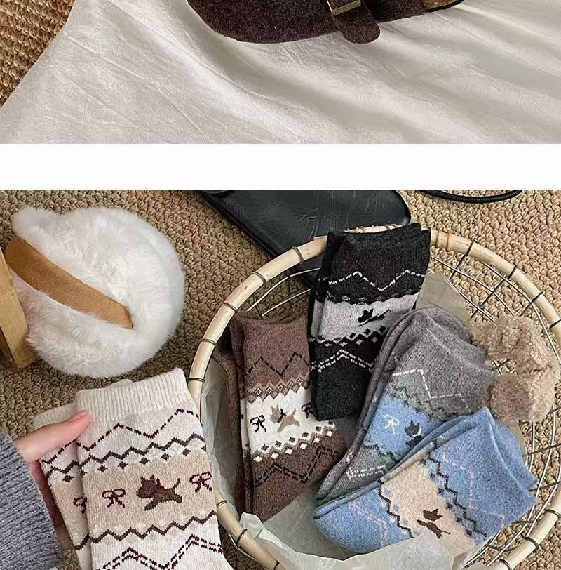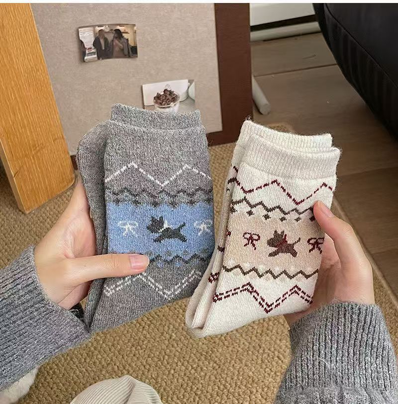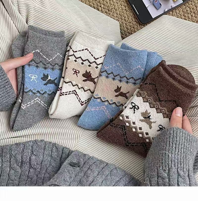 페어 아일 가을, 겨울 새로운 복고풍 강아지 양말 여성용 활 만화 일본식 귀여운 중간 튜브 양말 슬리밍