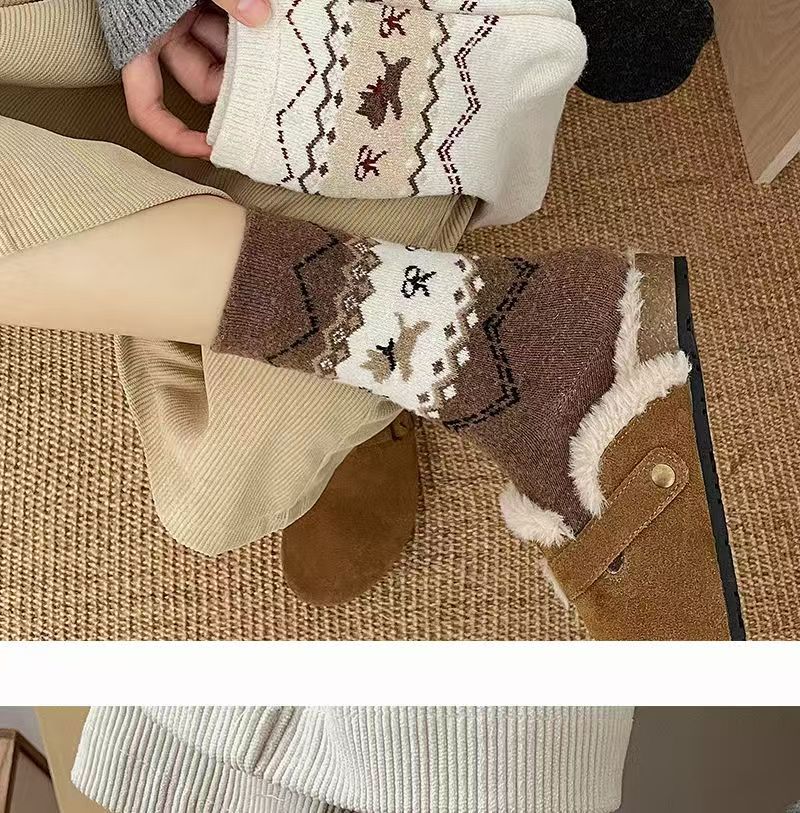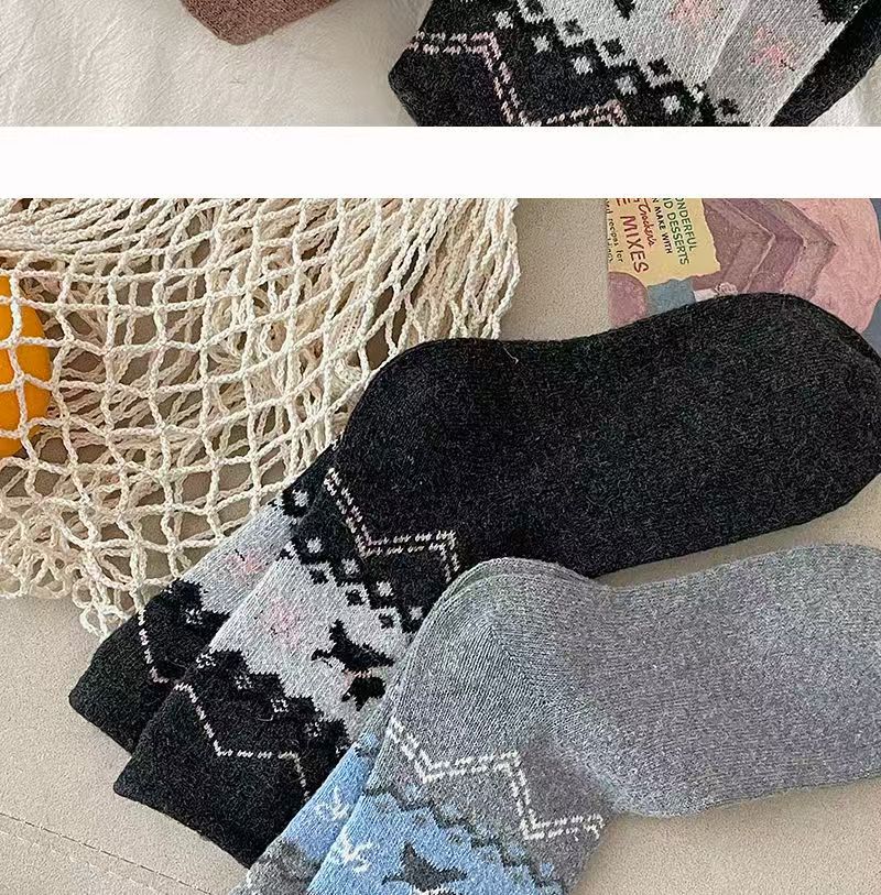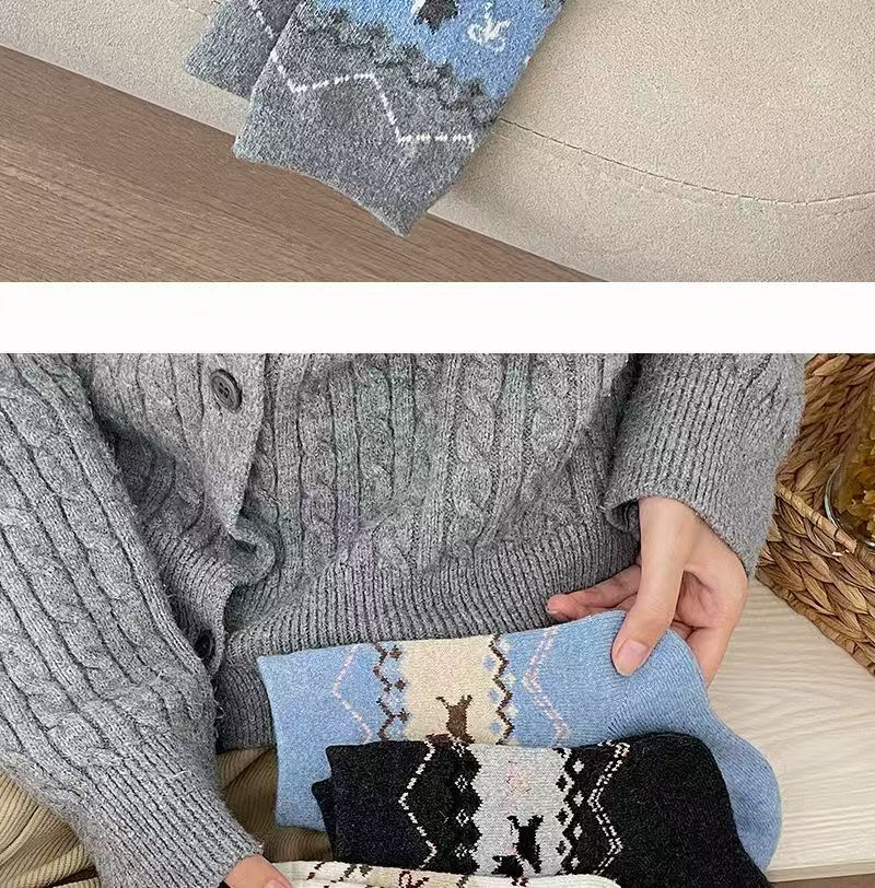 페어 아일 가을, 겨울 새로운 복고풍 강아지 양말 여성용 활 만화 일본식 귀여운 중간 튜브 양말 슬리밍스토어 가기