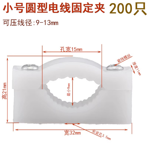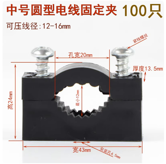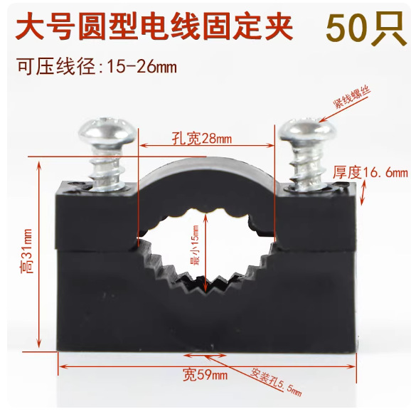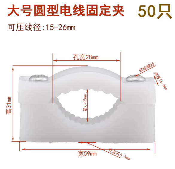 플라스틱 원형 와이어 클립 위아래 고정 와이어 클립 나일론 케이블 클램프 대형, 중형 및 소형 흰색 검정색스토어 가기