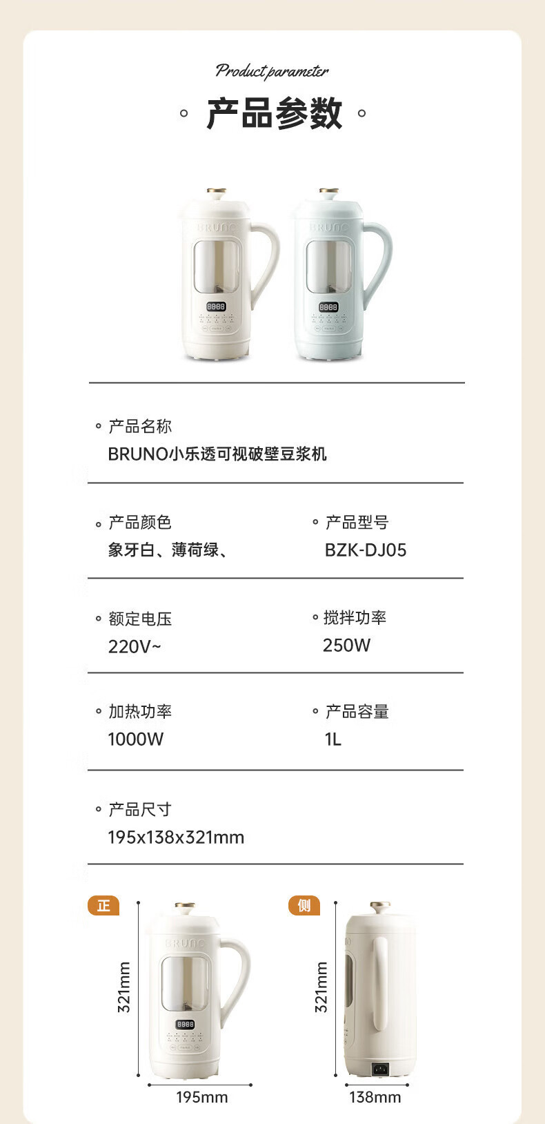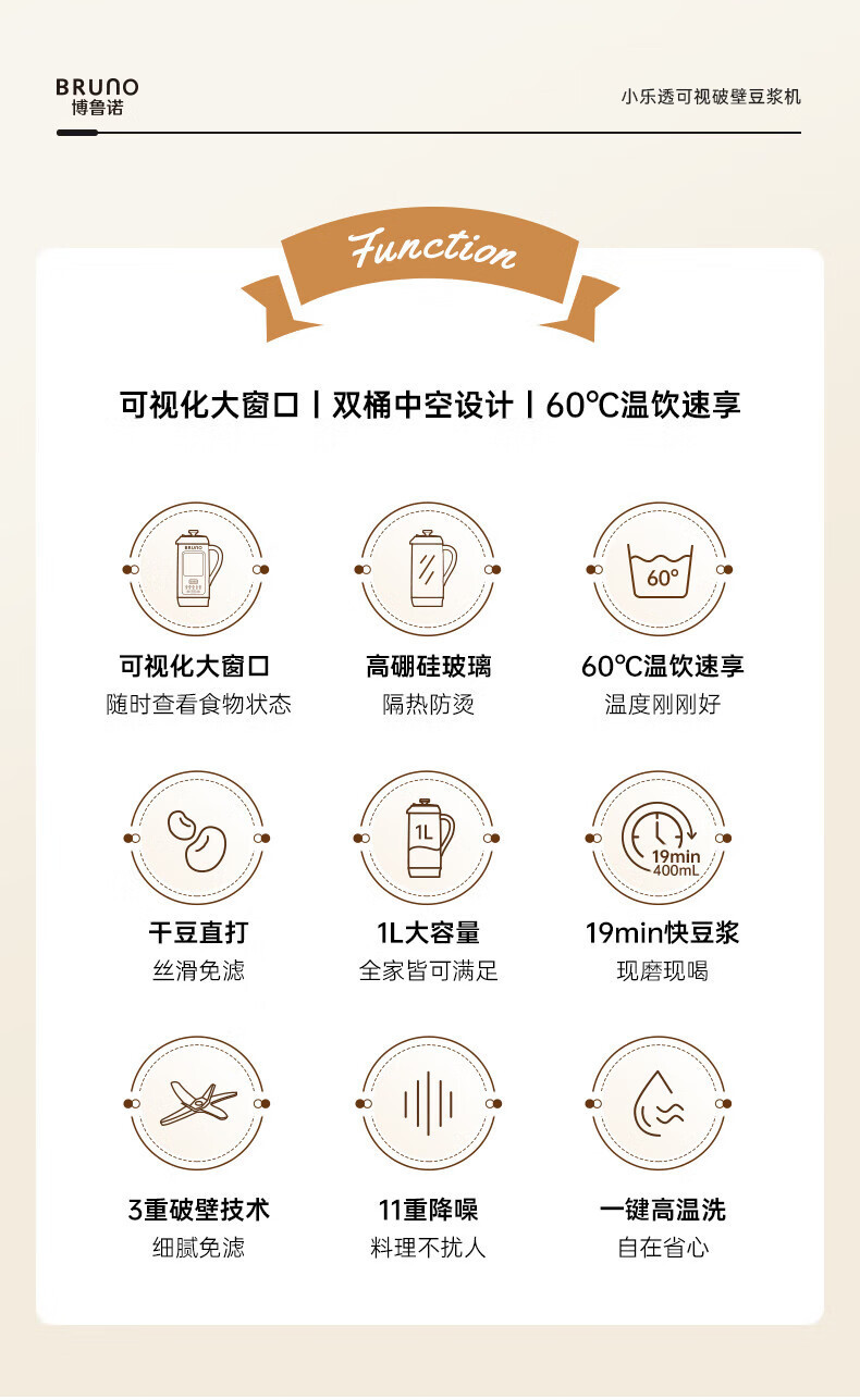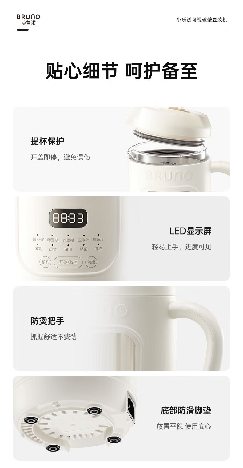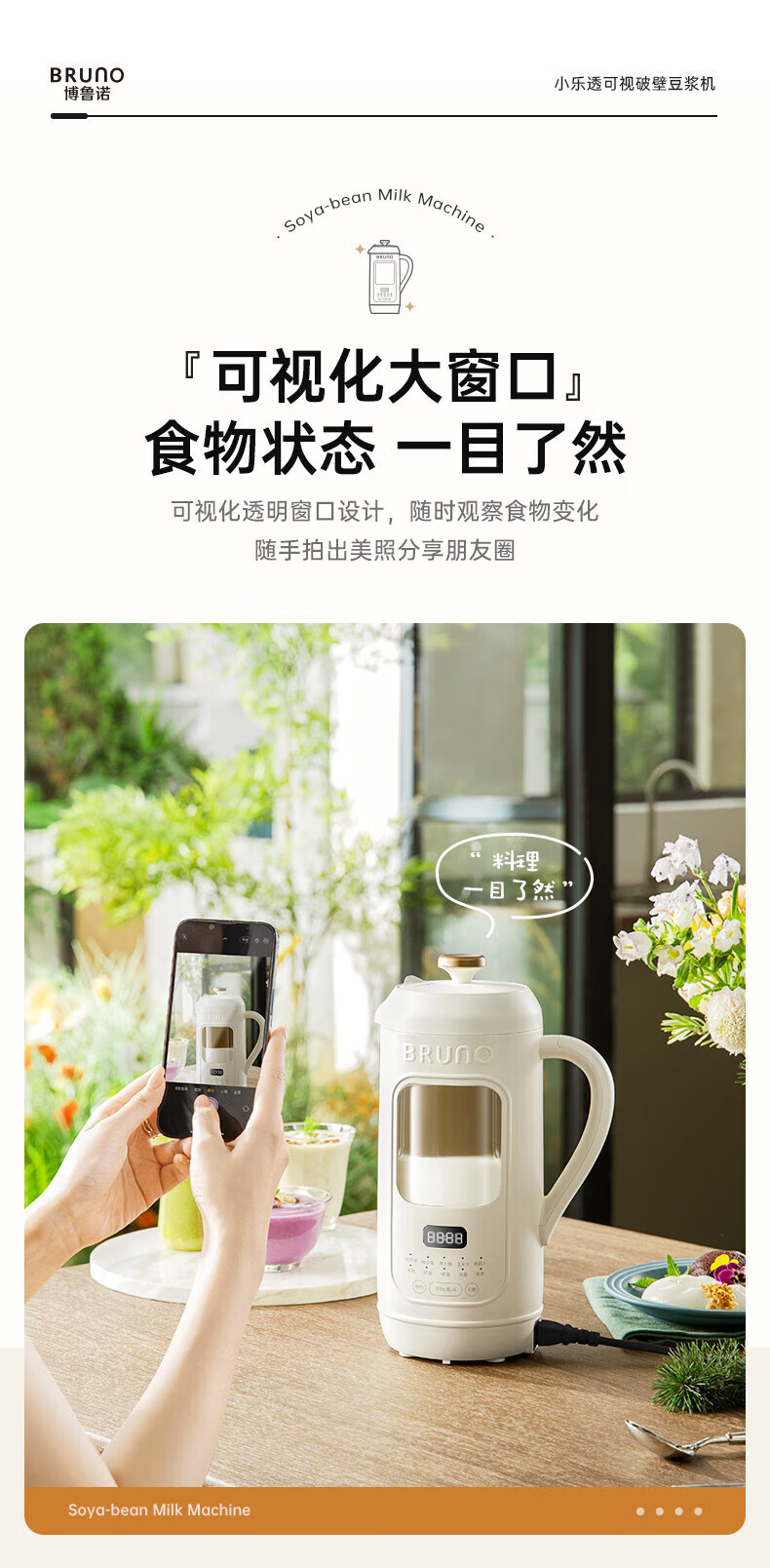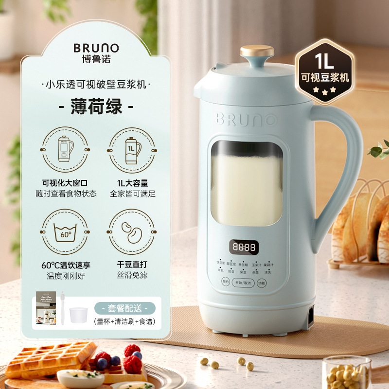 BRUNO 두유 기계 가정용 자동 시각화 비 끓는 벽 속보 기계 미니 비 필터링 베이스 보충 식품 요리