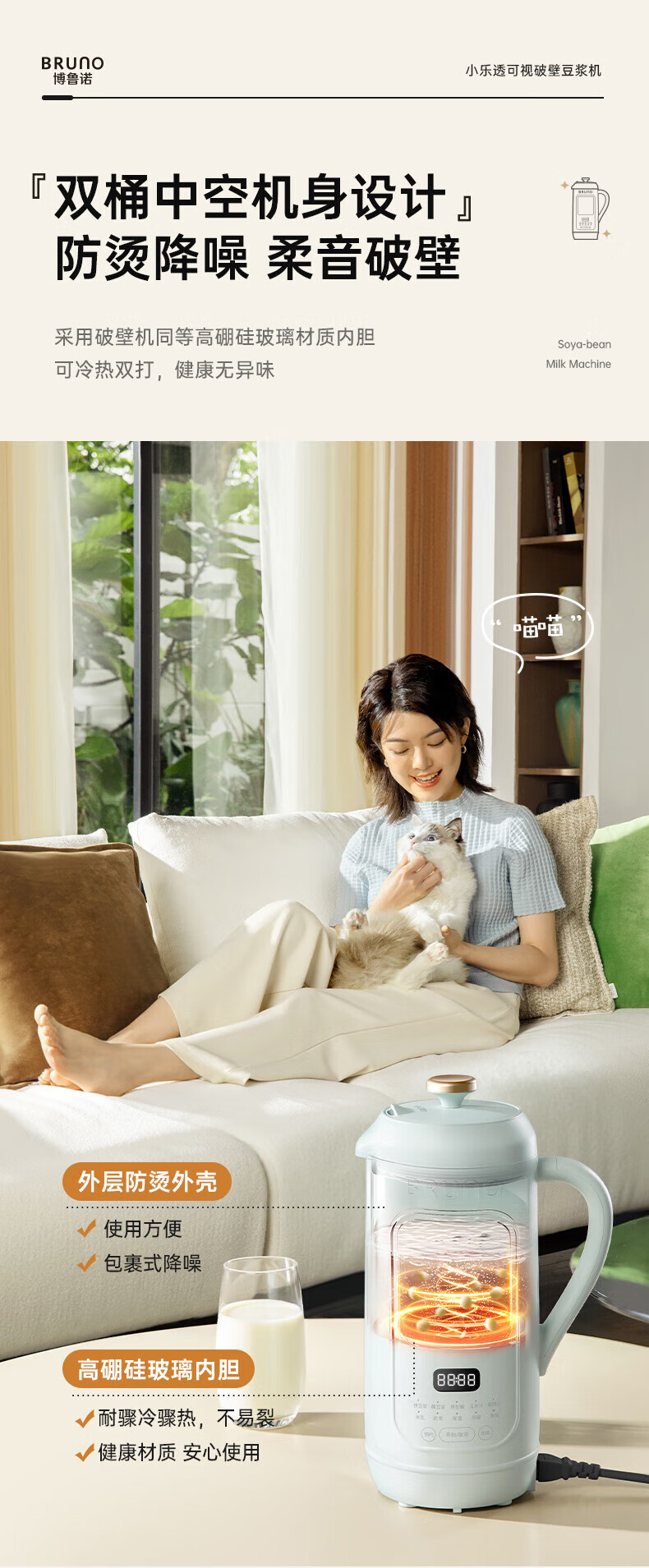 BRUNO 두유 기계 가정용 자동 시각화 비 끓는 벽 속보 기계 미니 비 필터링 베이스 보충 식품 요리스토어 가기