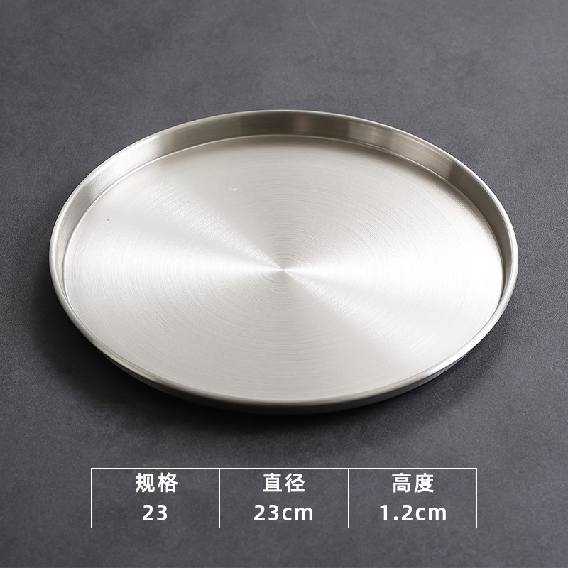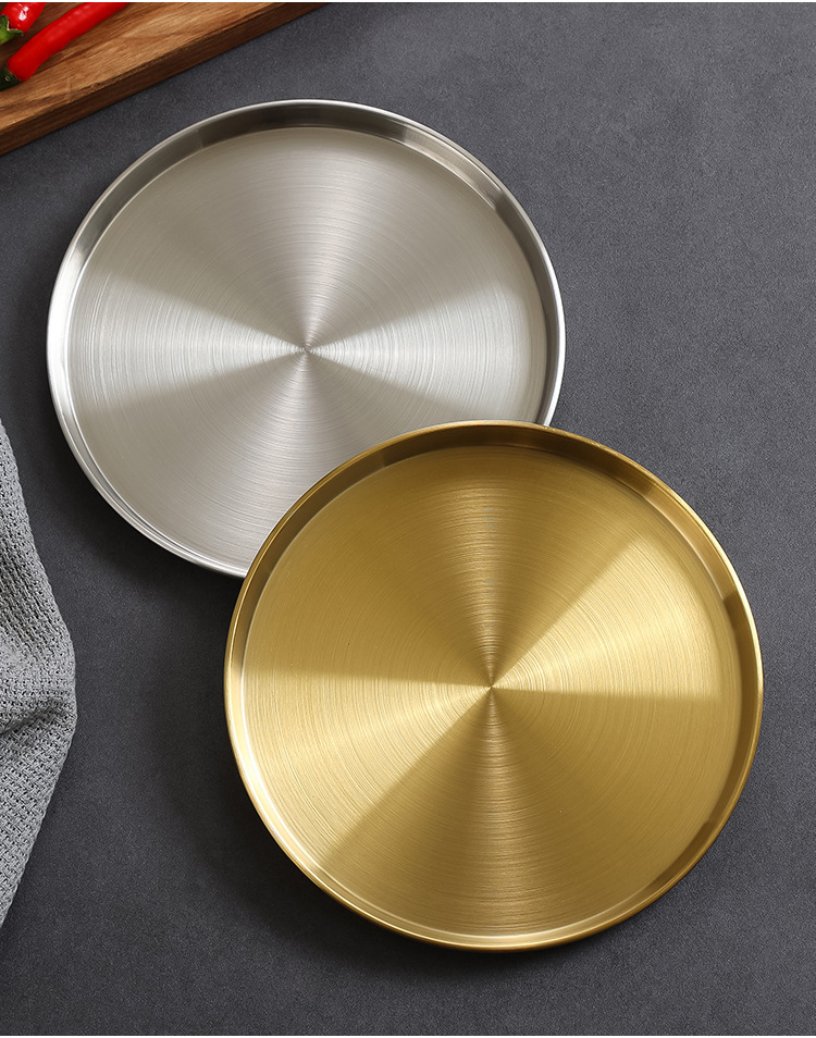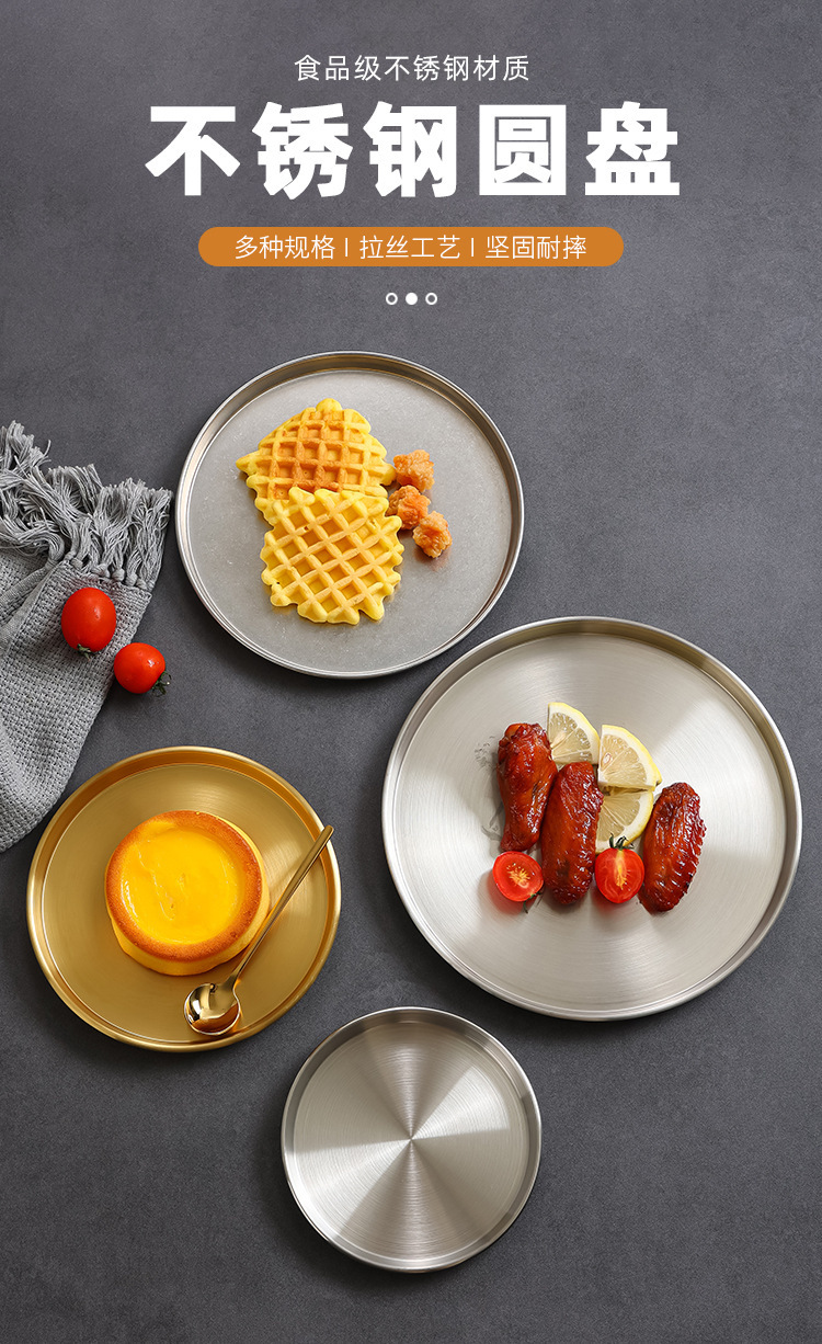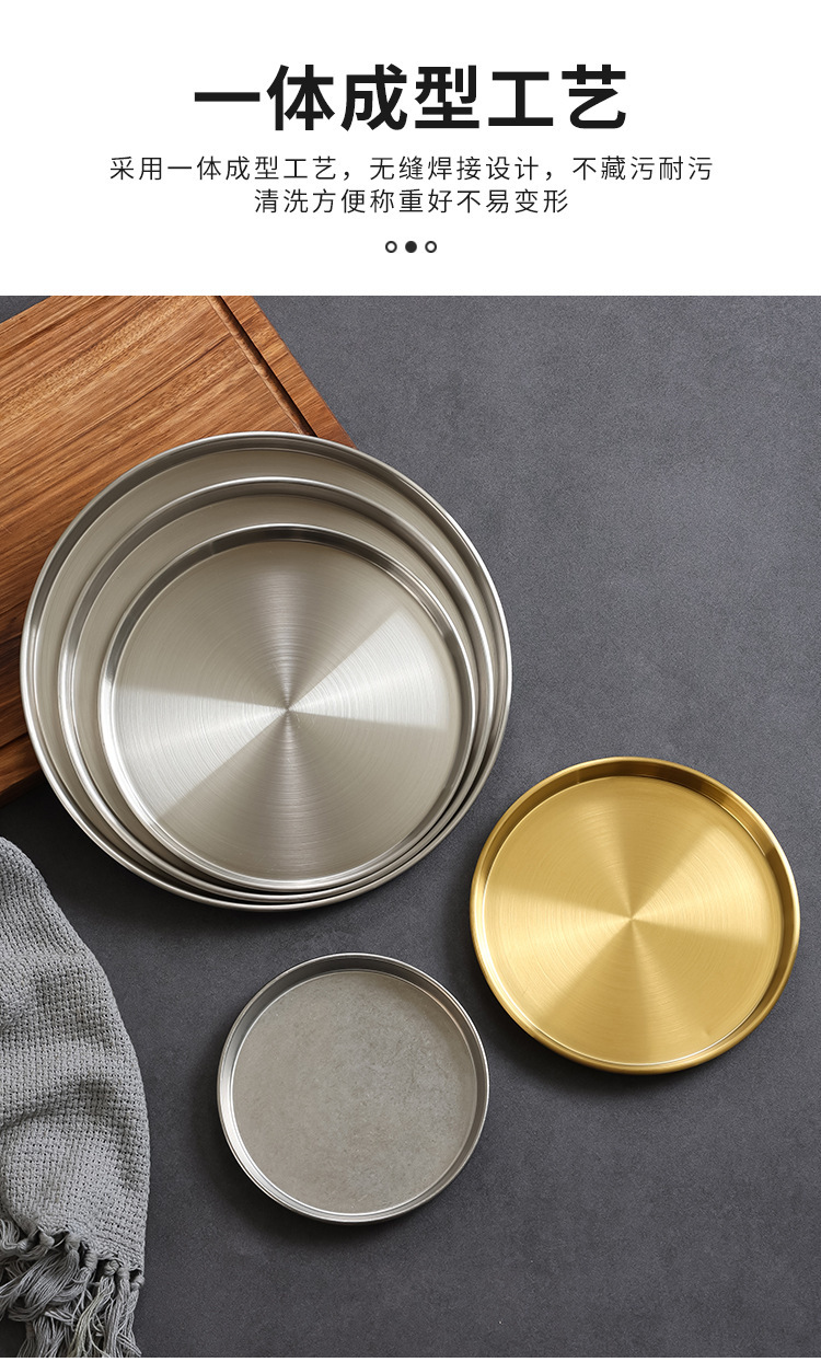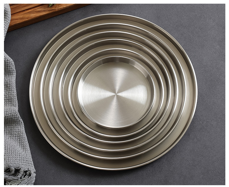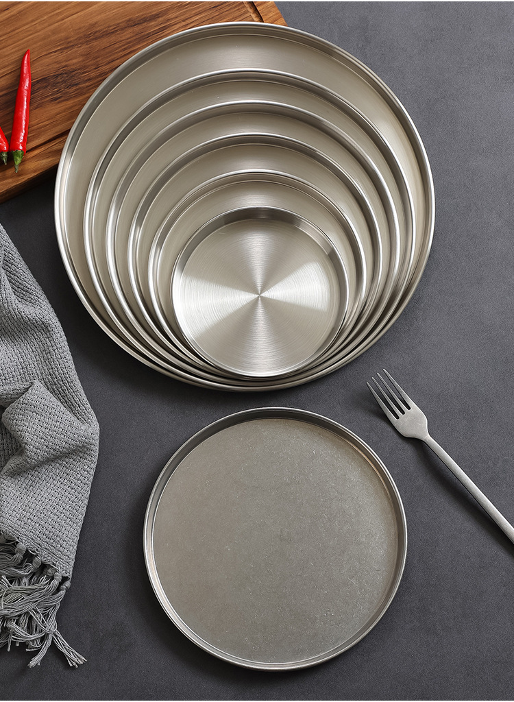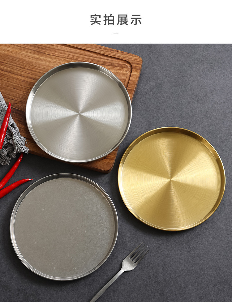 한국식 스테인레스 스틸 디스크 바베큐 얕은 접시 디저트 케이크 플레이트 과일 트레이 라운드 플랫 바닥 트레이 뼈 플레이트스토어 가기
