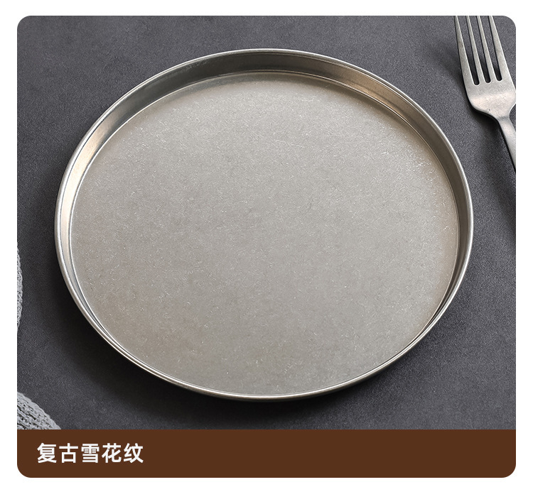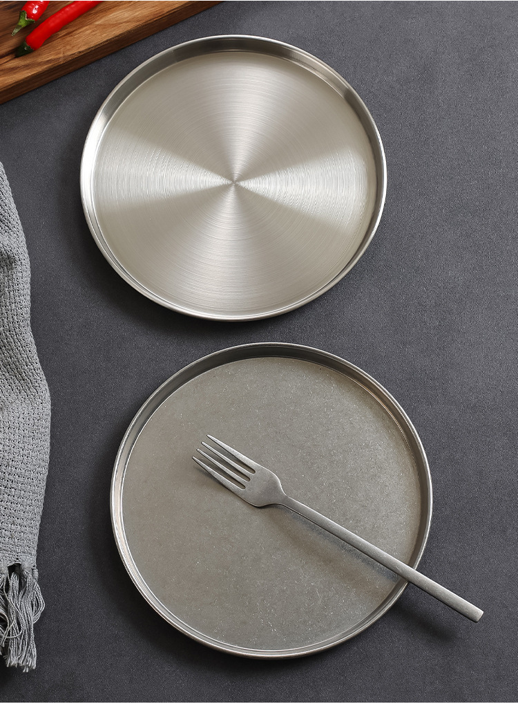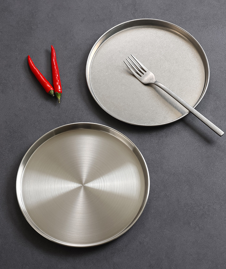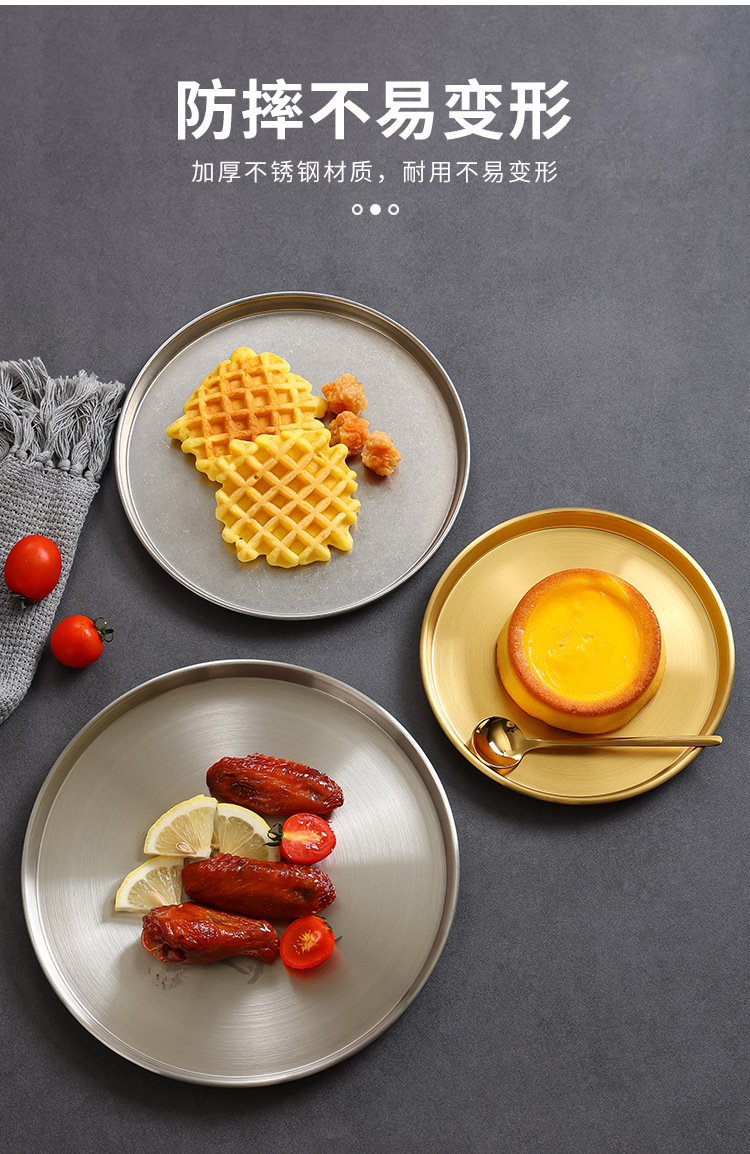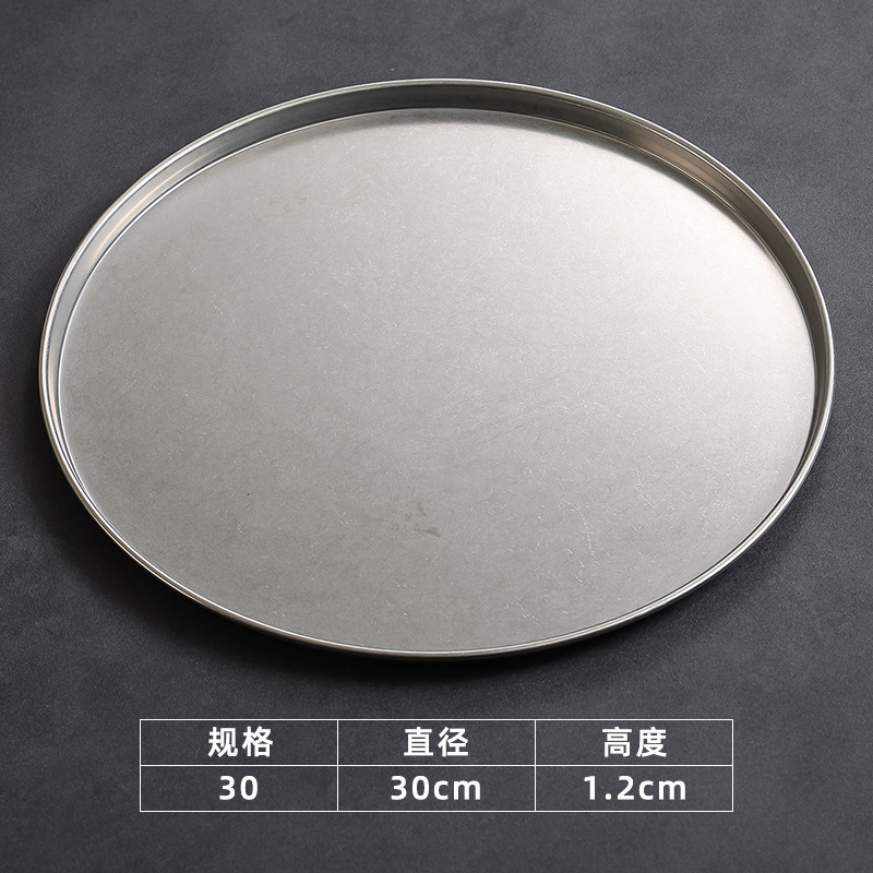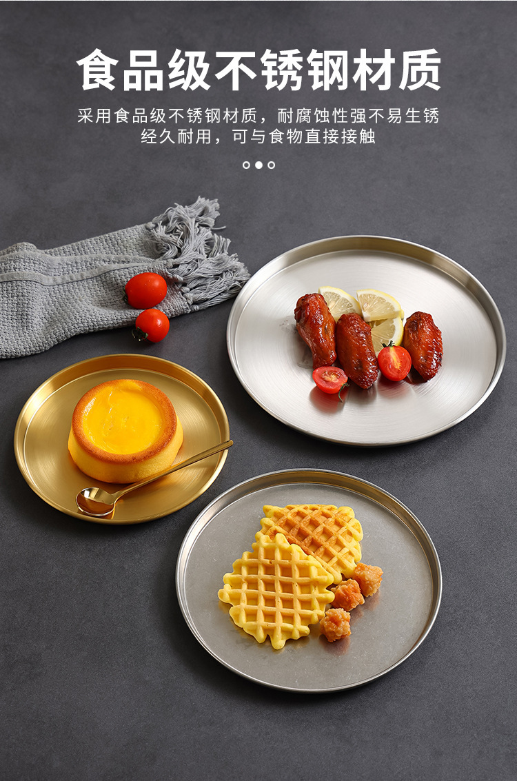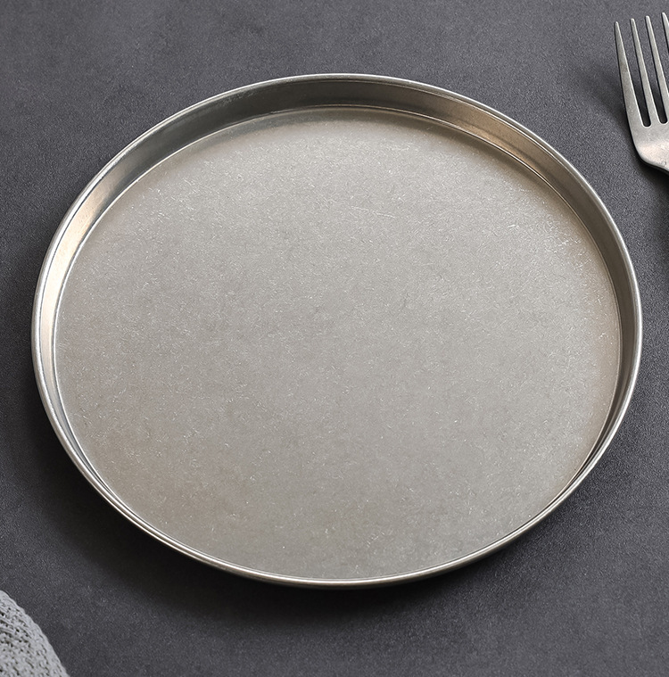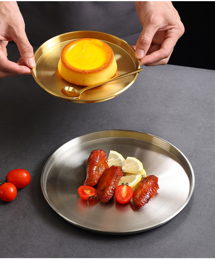 한국식 스테인레스 스틸 디스크 바베큐 얕은 접시 디저트 케이크 플레이트 과일 트레이 라운드 플랫 바닥 트레이 뼈 플레이트스토어 가기
