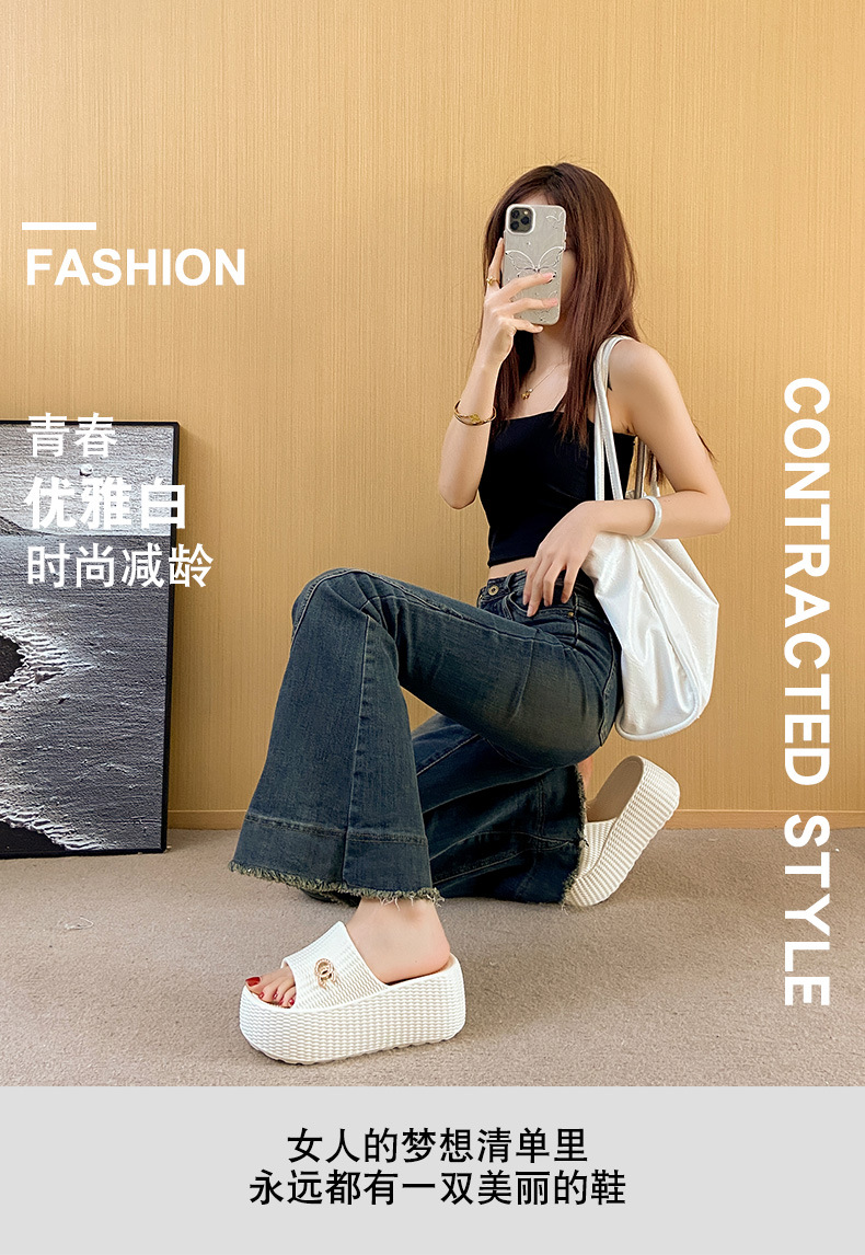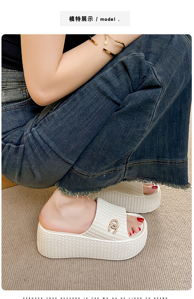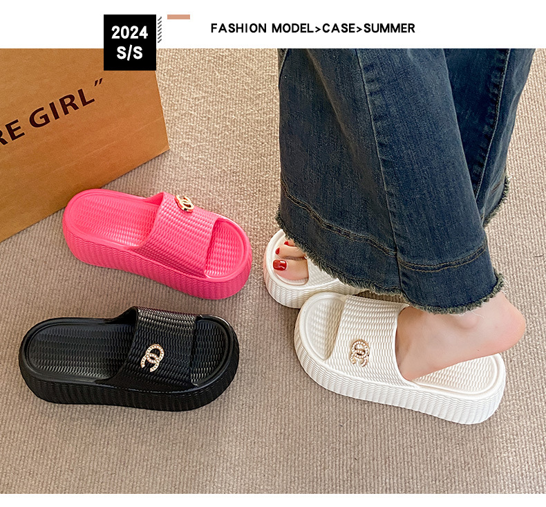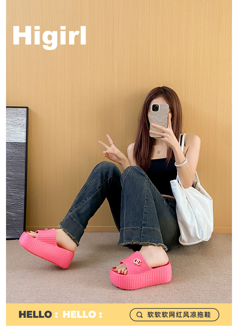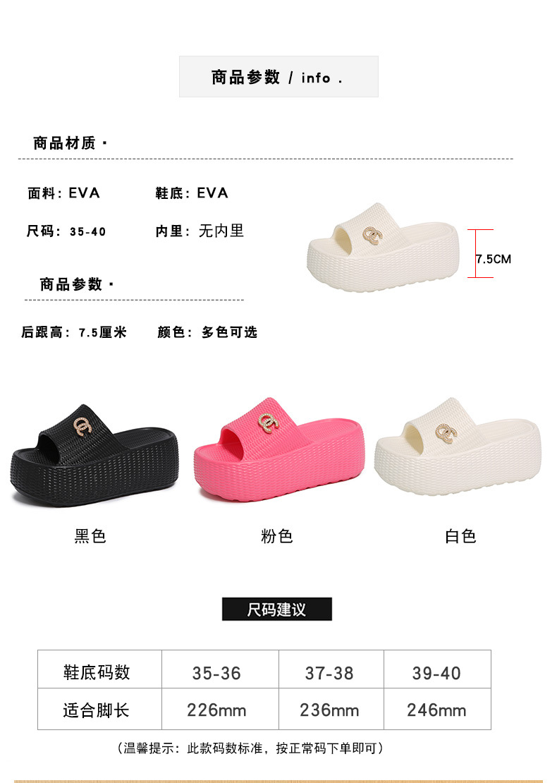 7.5cmEVA 두꺼운 바닥 슬리퍼 여성 외부 착용 미끄럼 방지 홈 패션 짠 샌들 두꺼운 경량 여성용 슬라이드