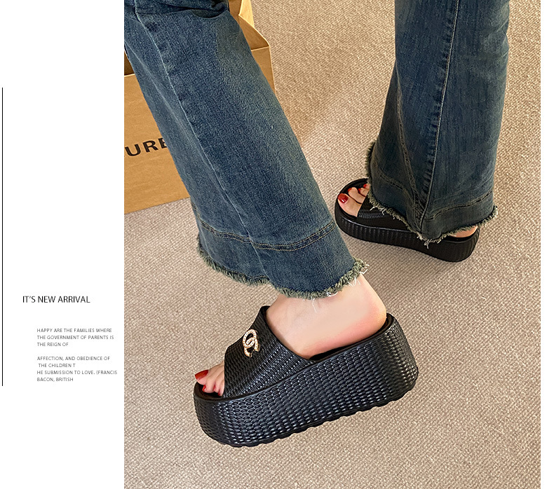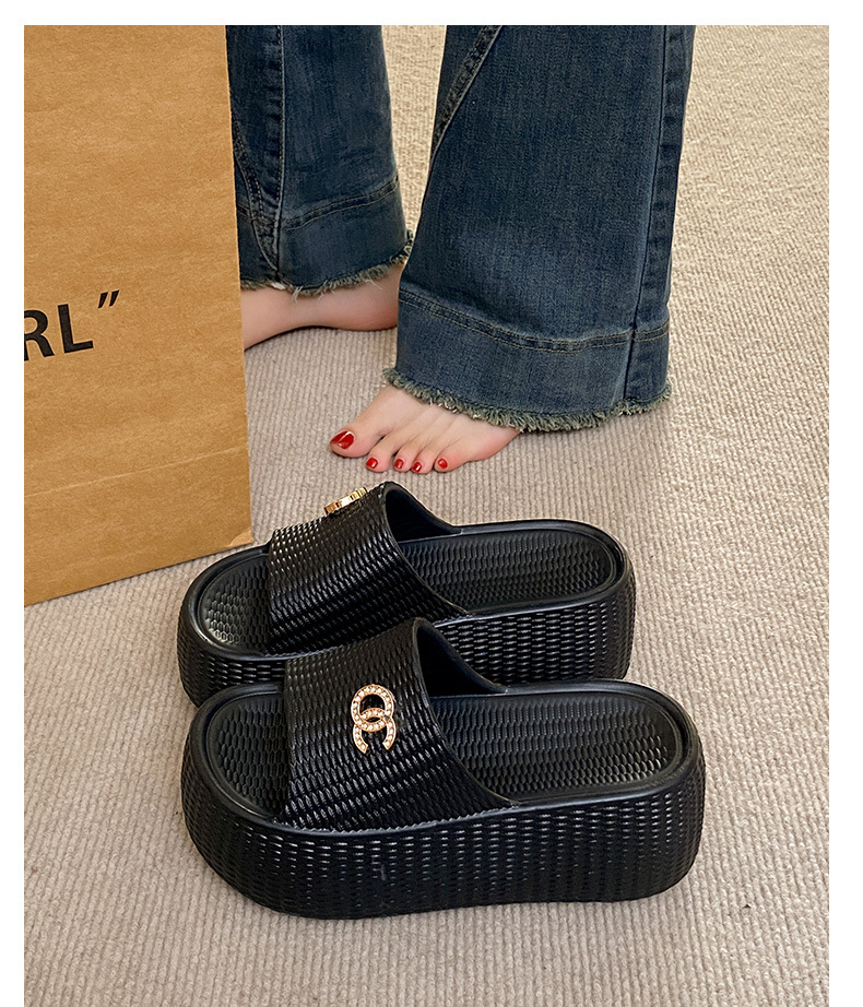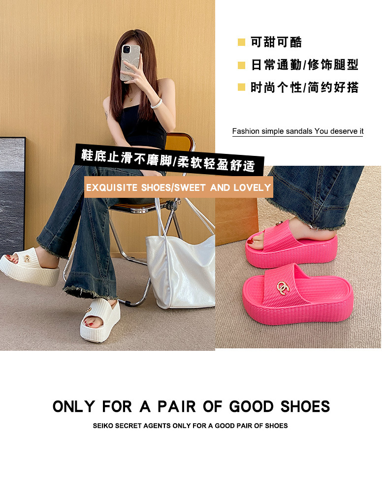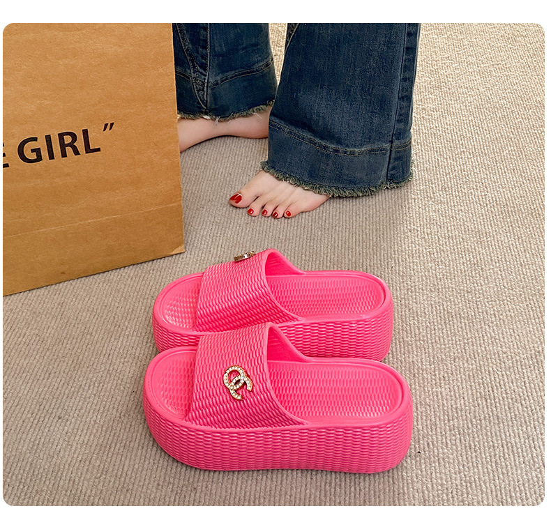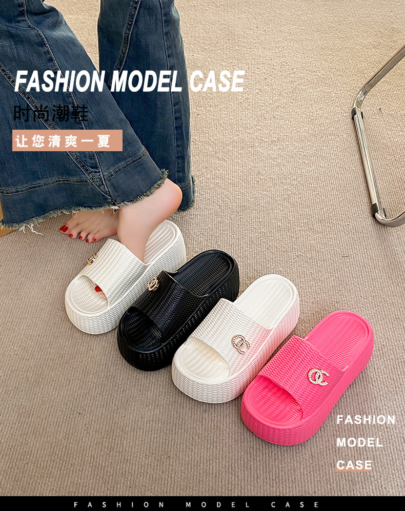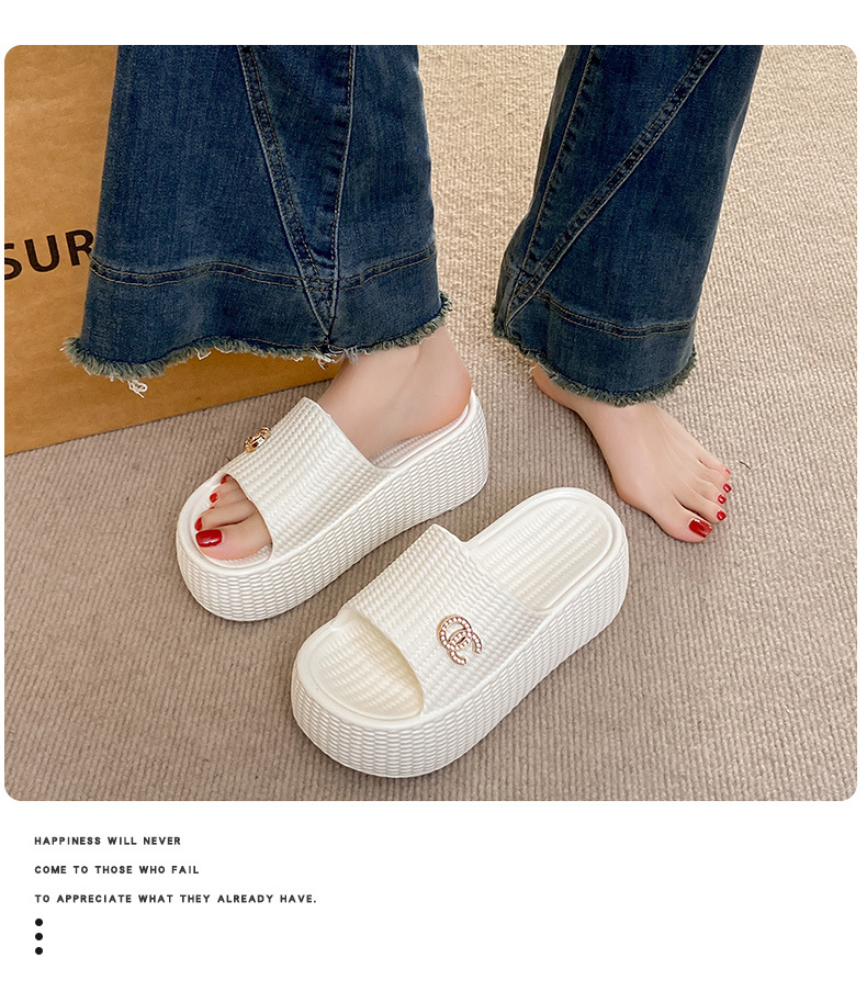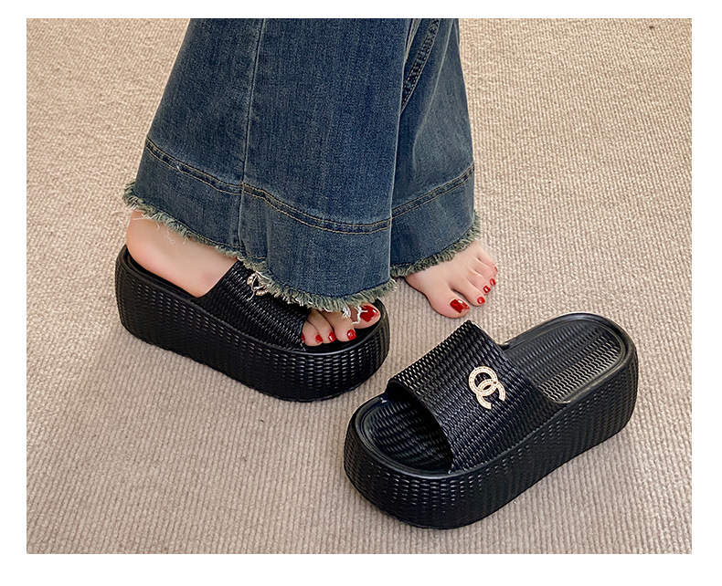 7.5cmEVA 두꺼운 바닥 슬리퍼 여성 외부 착용 미끄럼 방지 홈 패션 짠 샌들 두꺼운 경량 여성용 슬라이드
