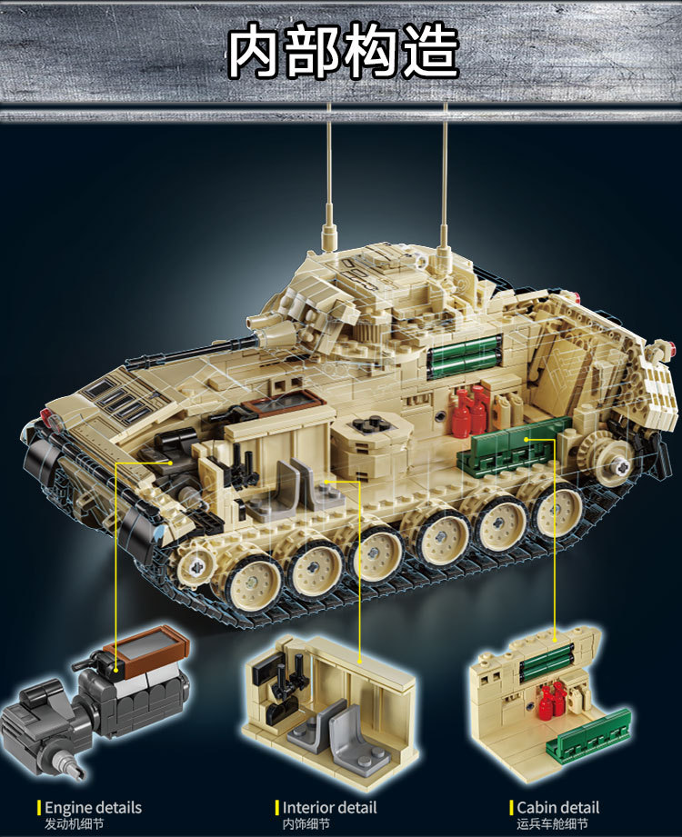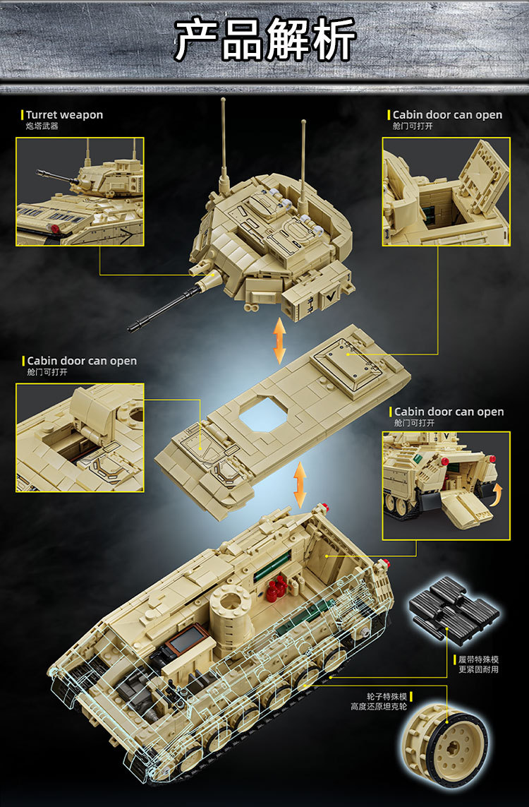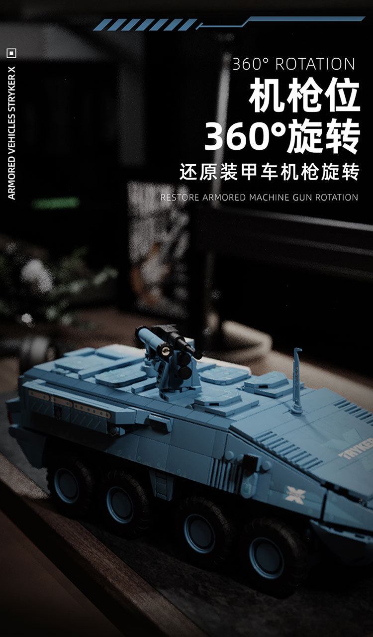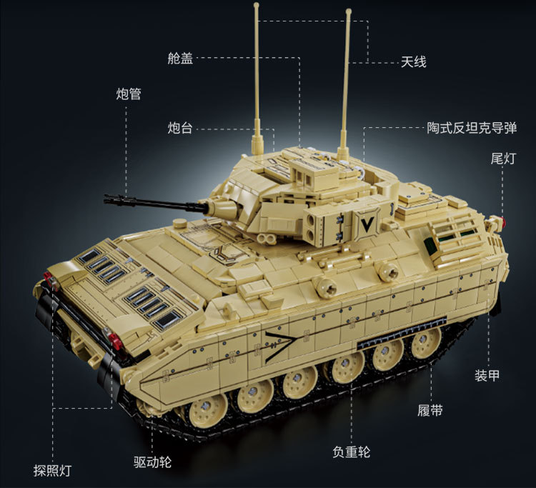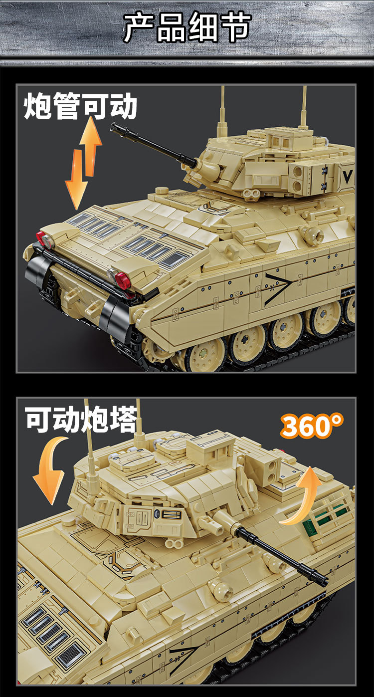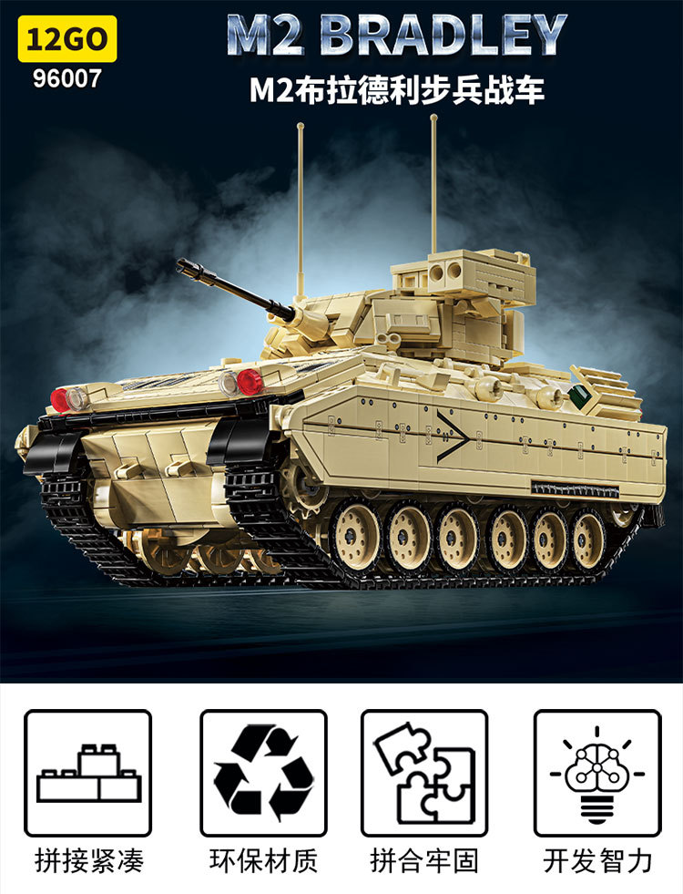 12GO96007M2 Bradley Stryker X 장갑차 탱크 조립 퍼즐 빌딩 블록 모델 어린이 장난감스토어 가기
