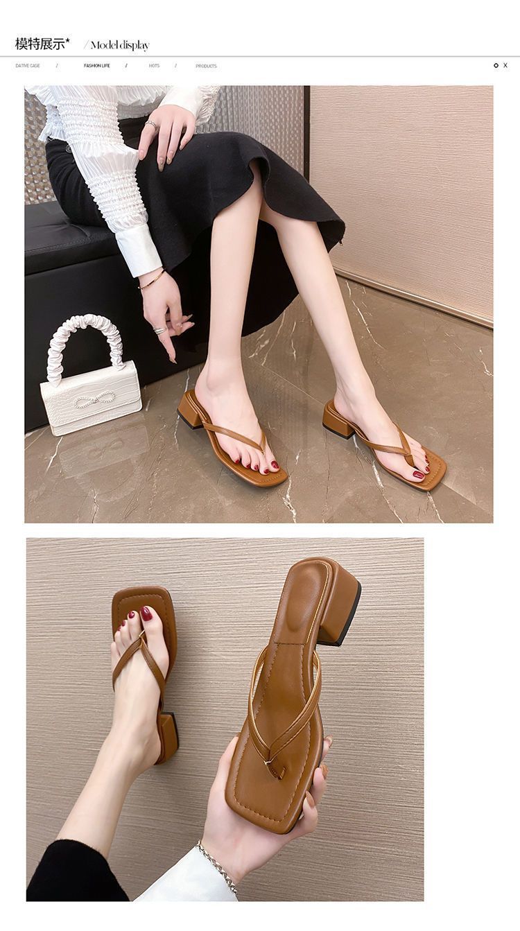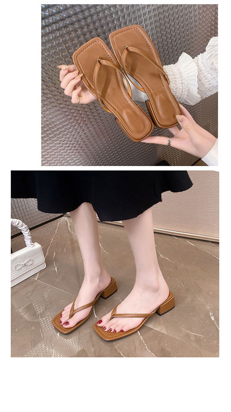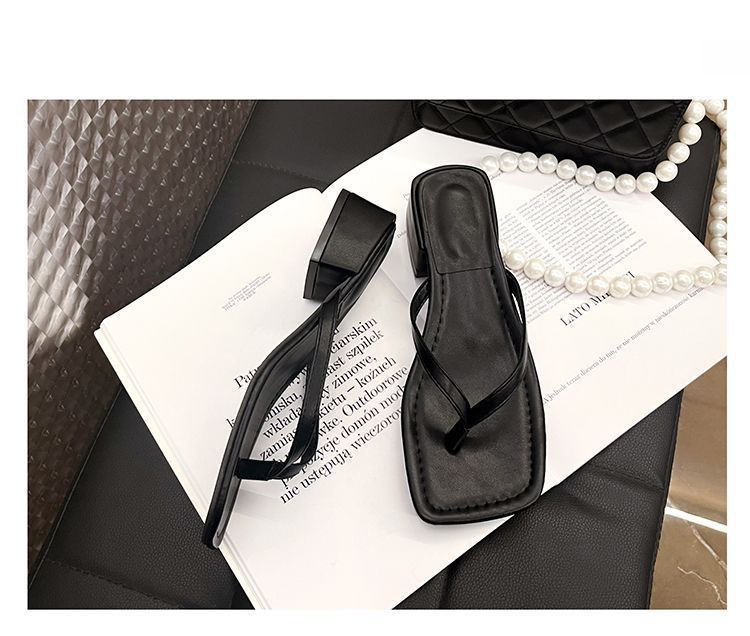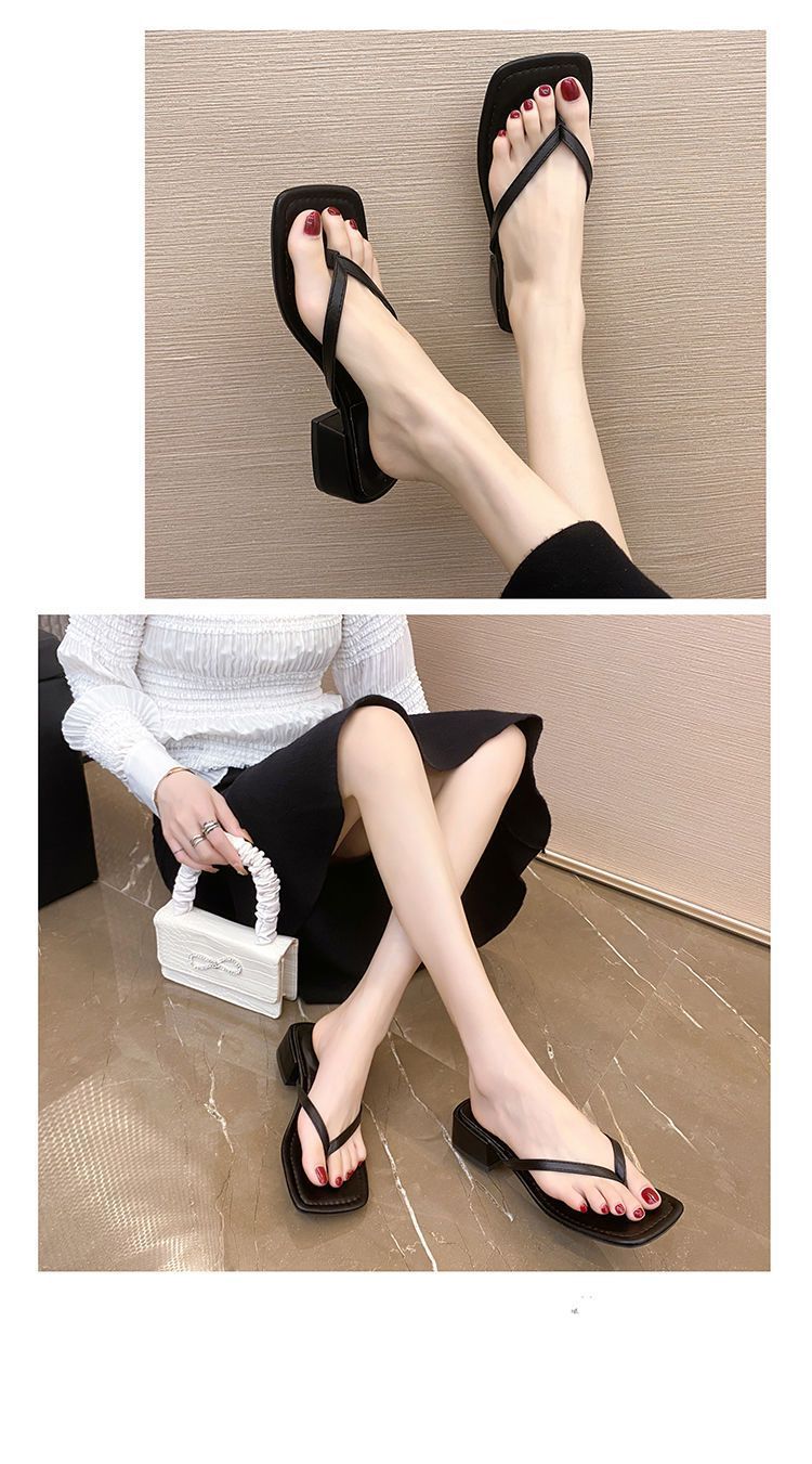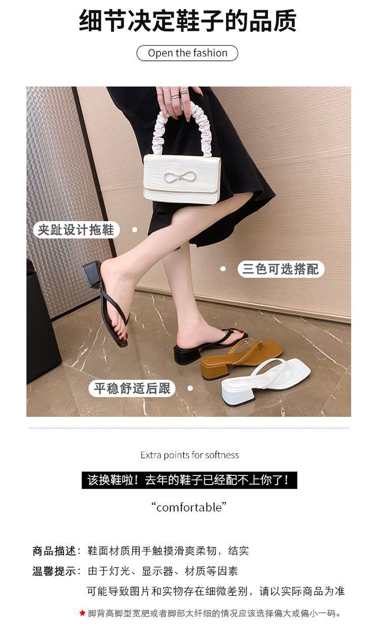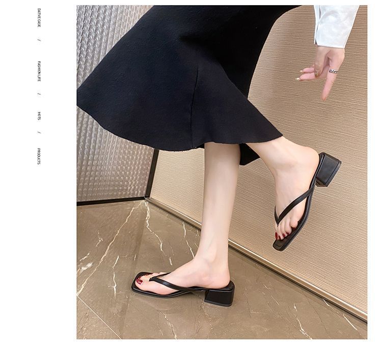 2024 겨울 새로운 스타일 스퀘어 토 인터넷 인기있는 간단한 올 매치 캐주얼 샌들 미드힐 통 게으른 샌들 플립 플롭-여성을위한 플롭스토어 가기