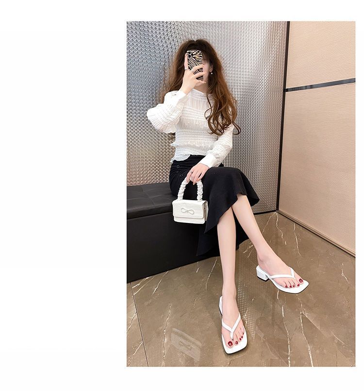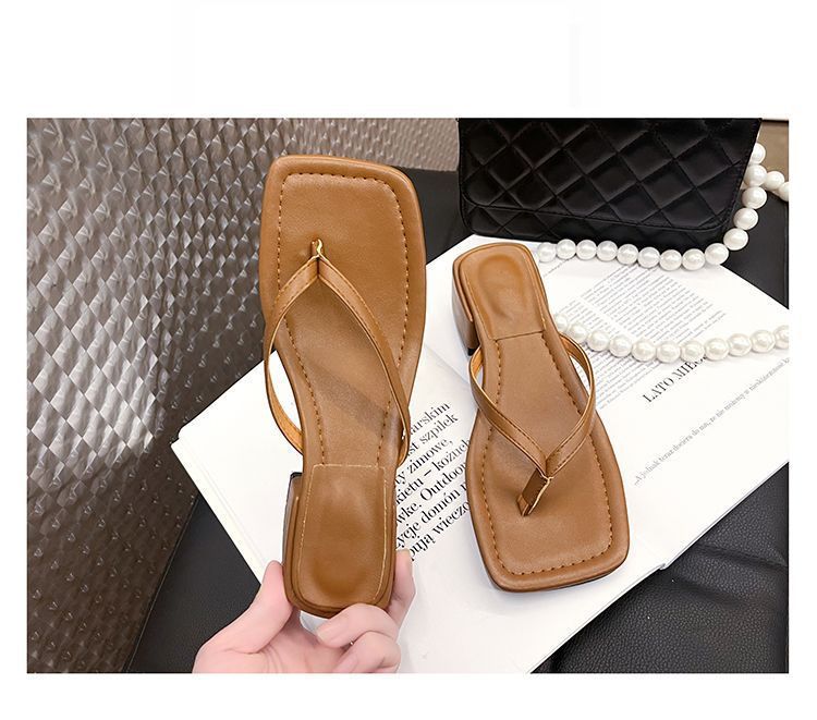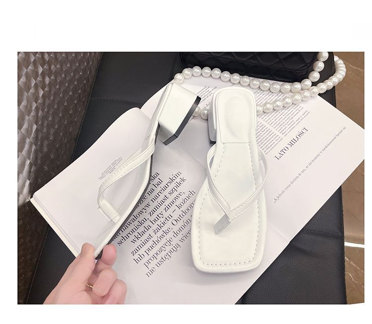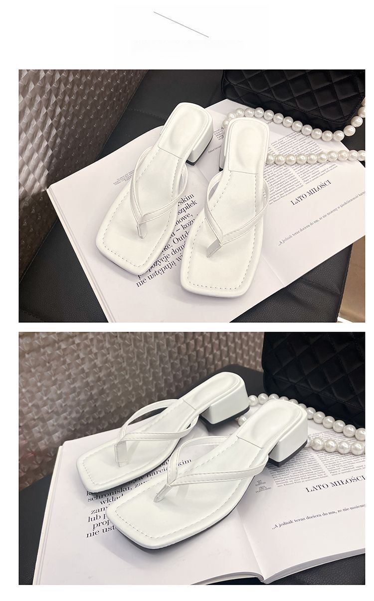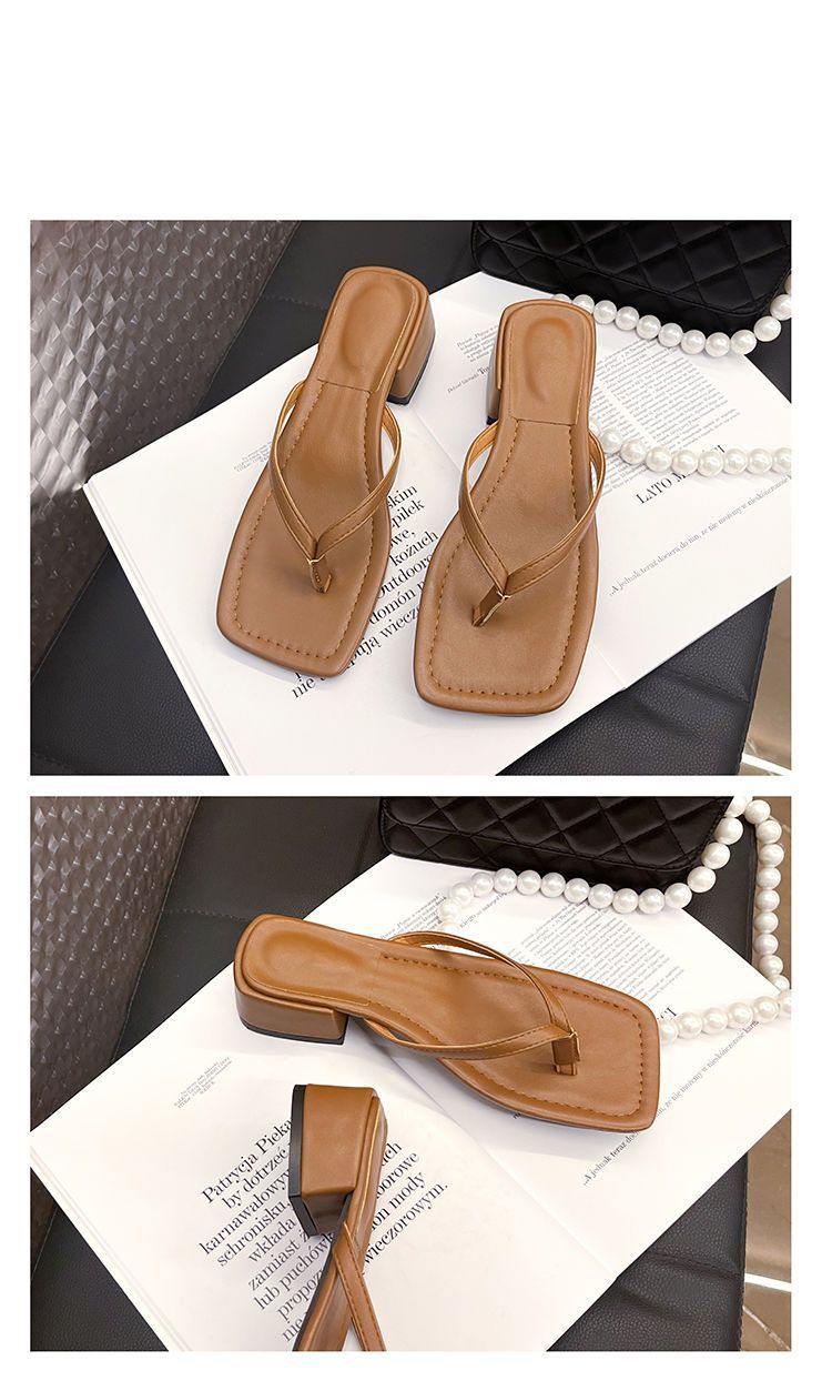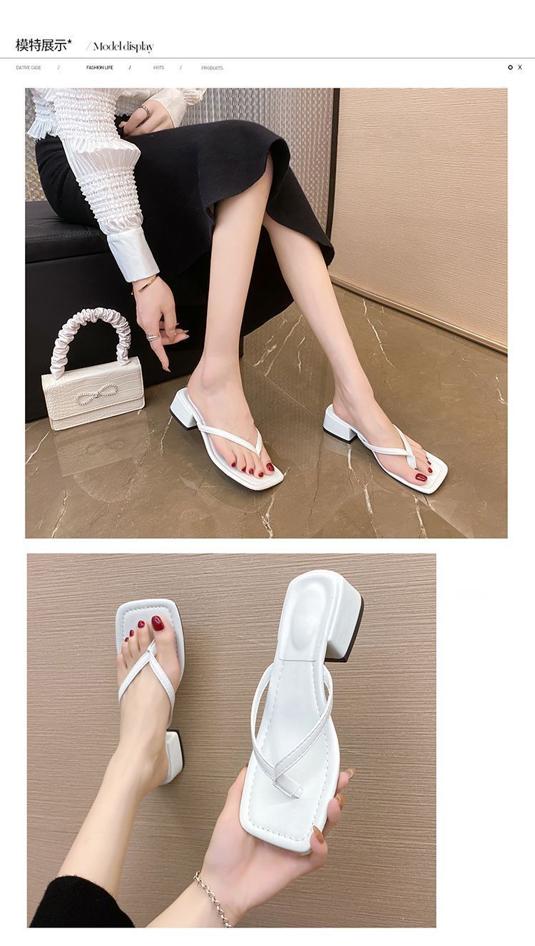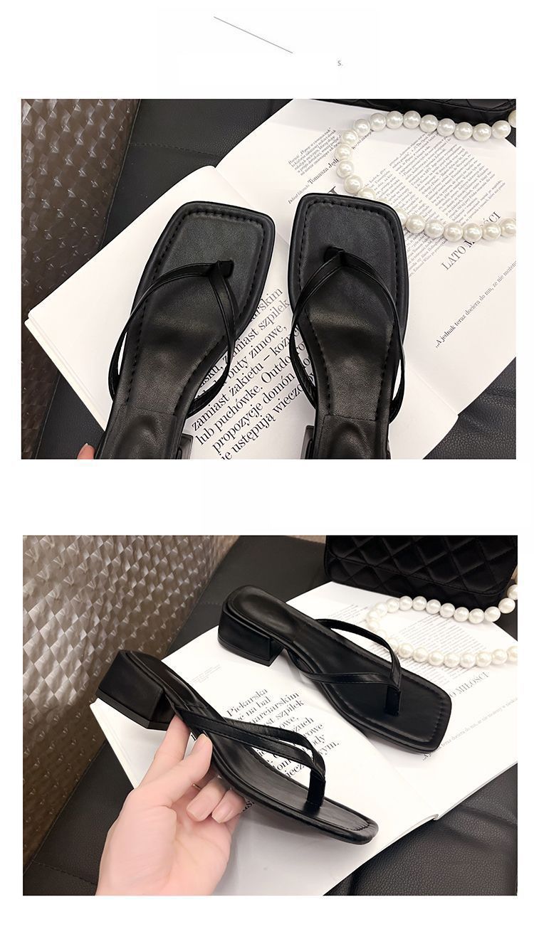 2024 겨울 새로운 스타일 스퀘어 토 인터넷 인기있는 간단한 올 매치 캐주얼 샌들 미드힐 통 게으른 샌들 플립 플롭-여성을위한 플롭스토어 가기
