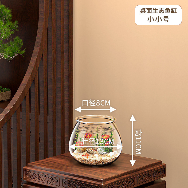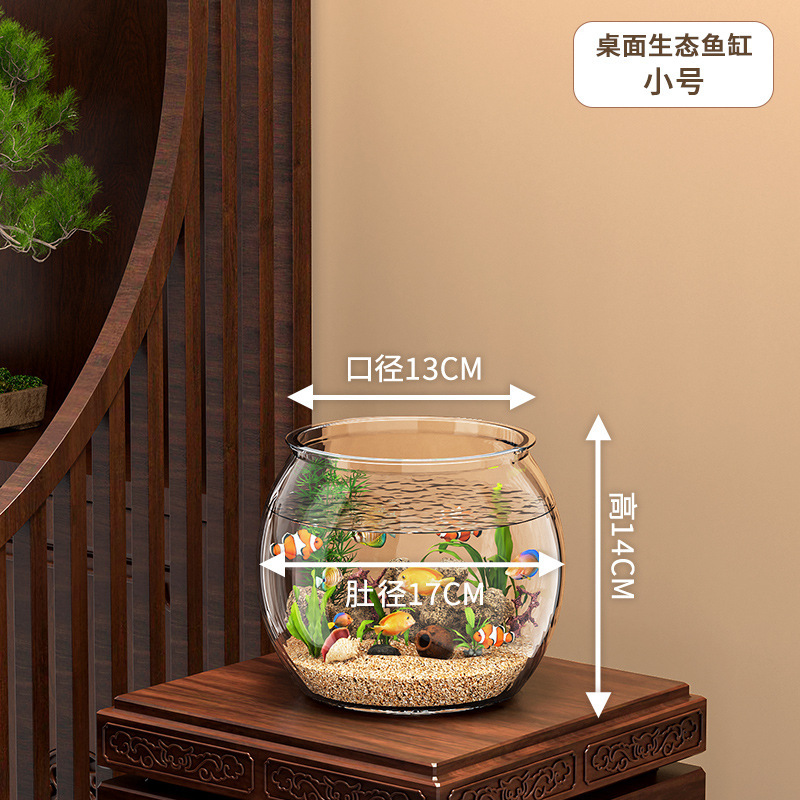 둥근 물고기 탱크 플라스틱 원피스 성형 모조 유리 낙하 방지 거실 작은 풍경 데스크탑 생태 탱크스토어 가기