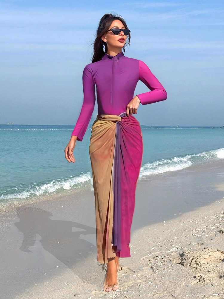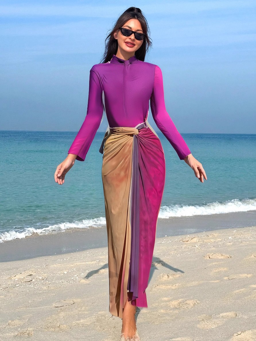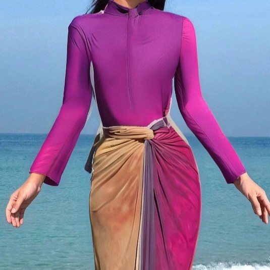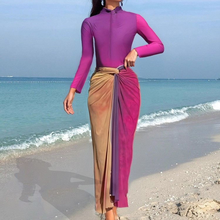 2025 새로운 보수 수영복 중동 컬러 긴 소매 바지 태양 보호 해변 서핑 스포츠 수영복 3 피스 세트