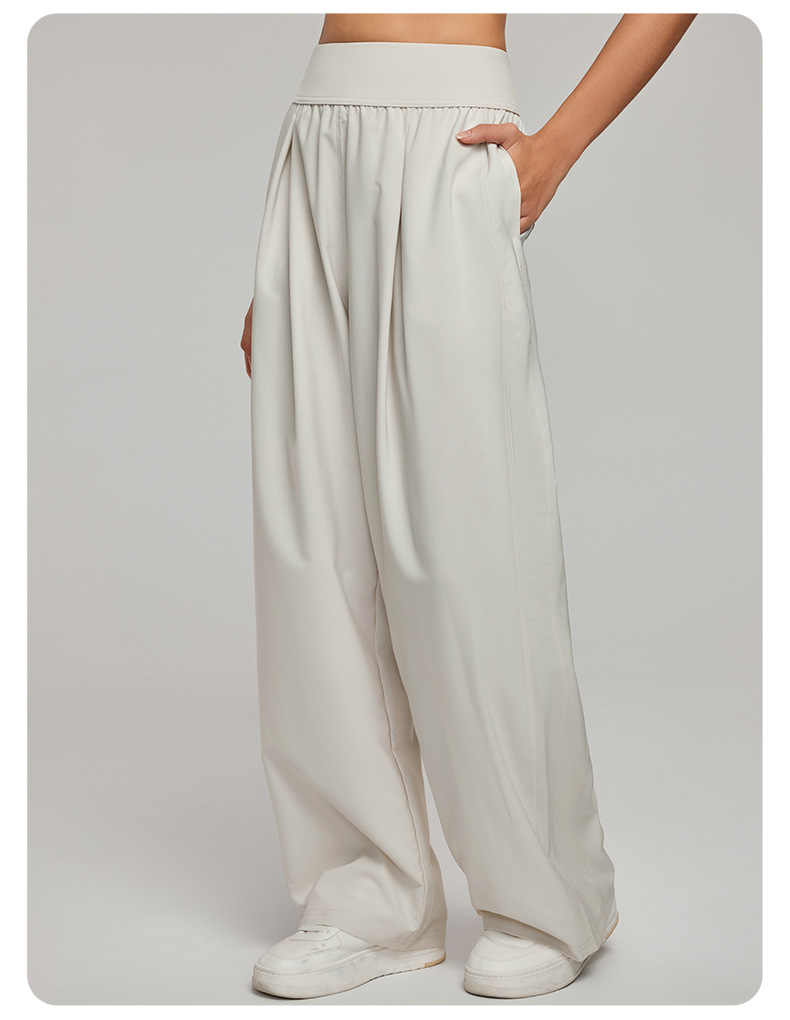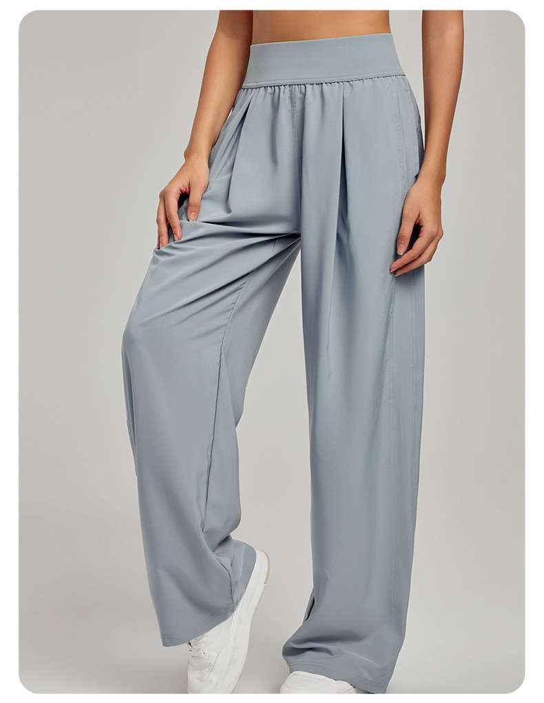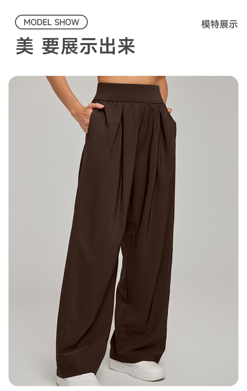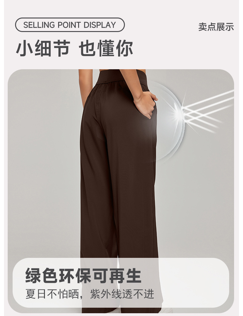 크로스보더 자외선 차단 스포츠 팬츠 캐주얼 여성 하이웨이스트 슬리밍 와이드 팬츠 루즈 캐주얼 스트레이트 포켓 요가 팬츠