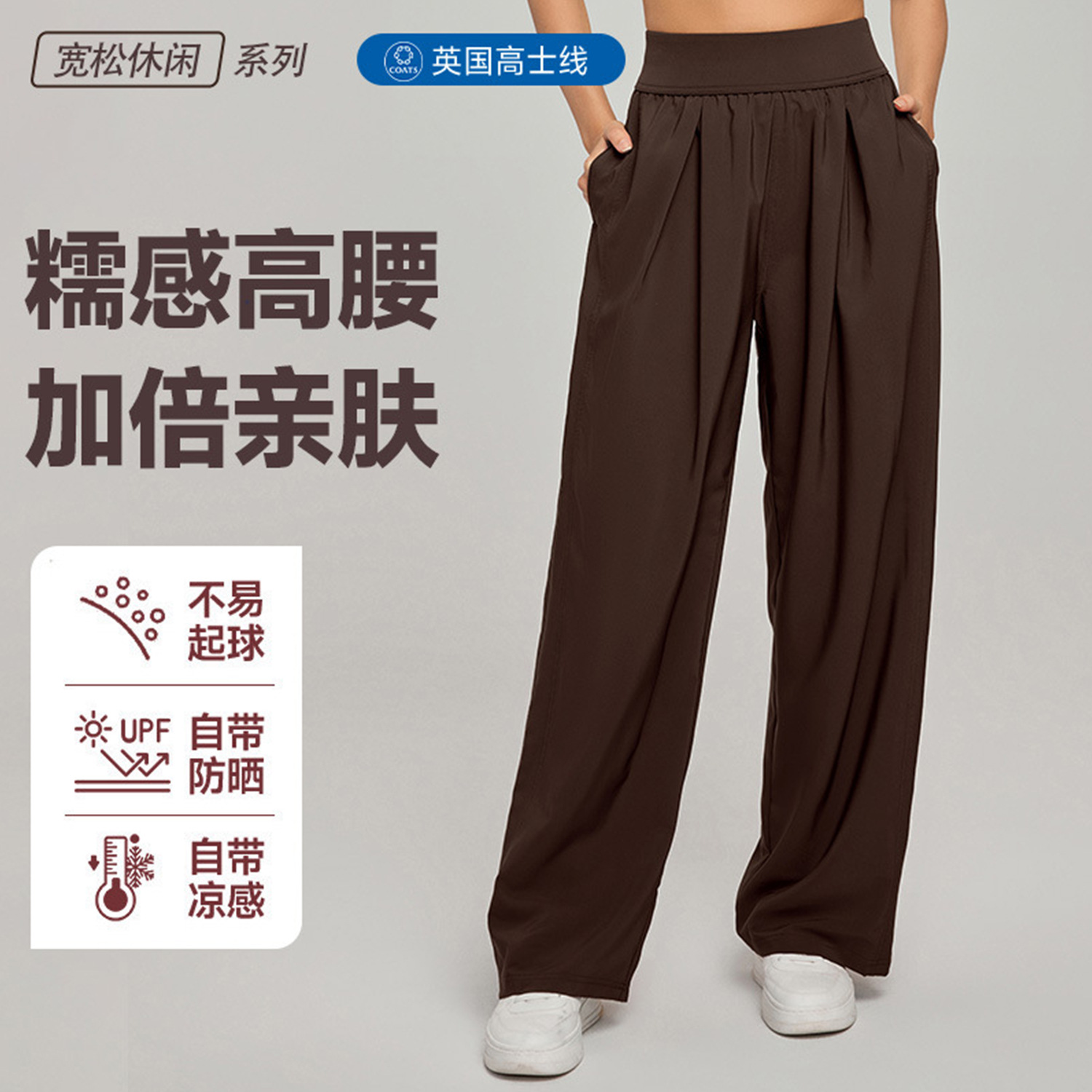 크로스보더 자외선 차단 스포츠 팬츠 캐주얼 여성 하이웨이스트 슬리밍 와이드 팬츠 루즈 캐주얼 스트레이트 포켓 요가 팬츠스토어 가기
