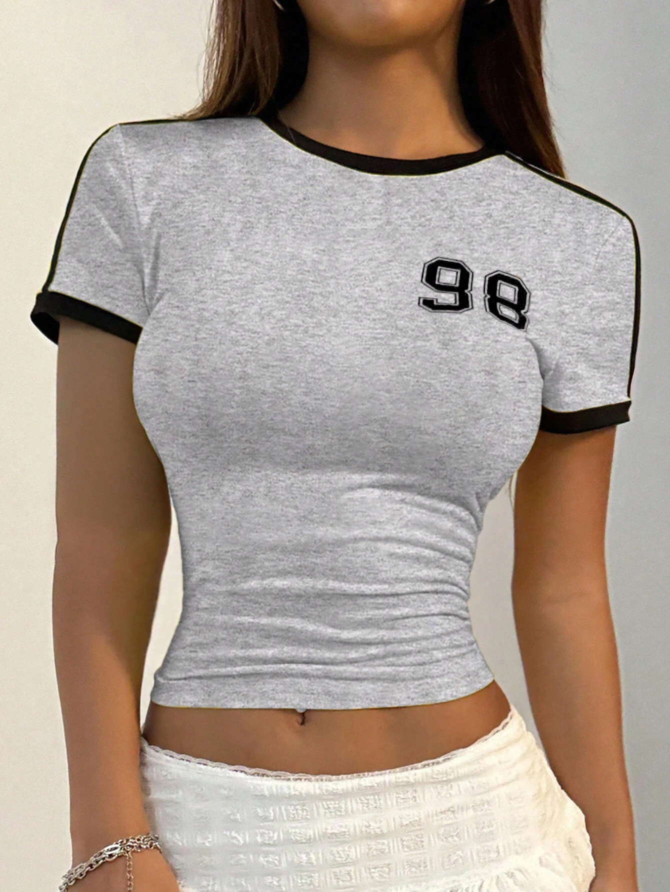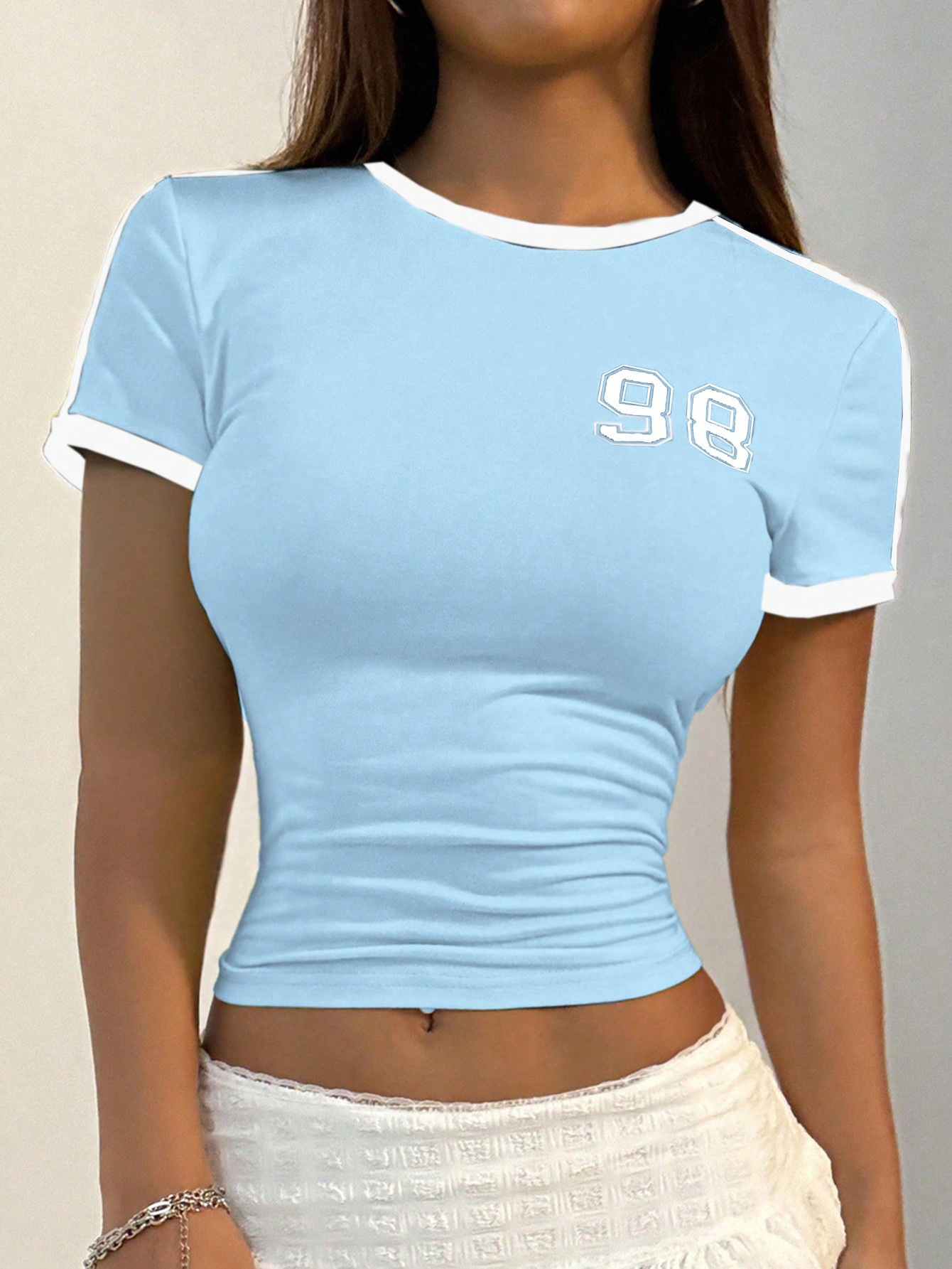 미국의 새로운 스파이스 걸스 여성 라운드 넥 디지털 98 인쇄 된 배꼽 짧은 소매 풀오버 국경 도매 탑 티셔츠