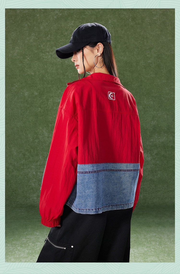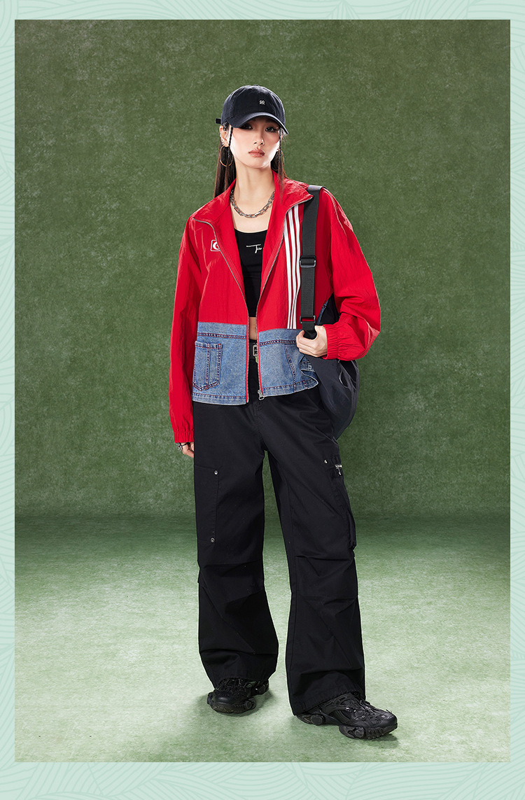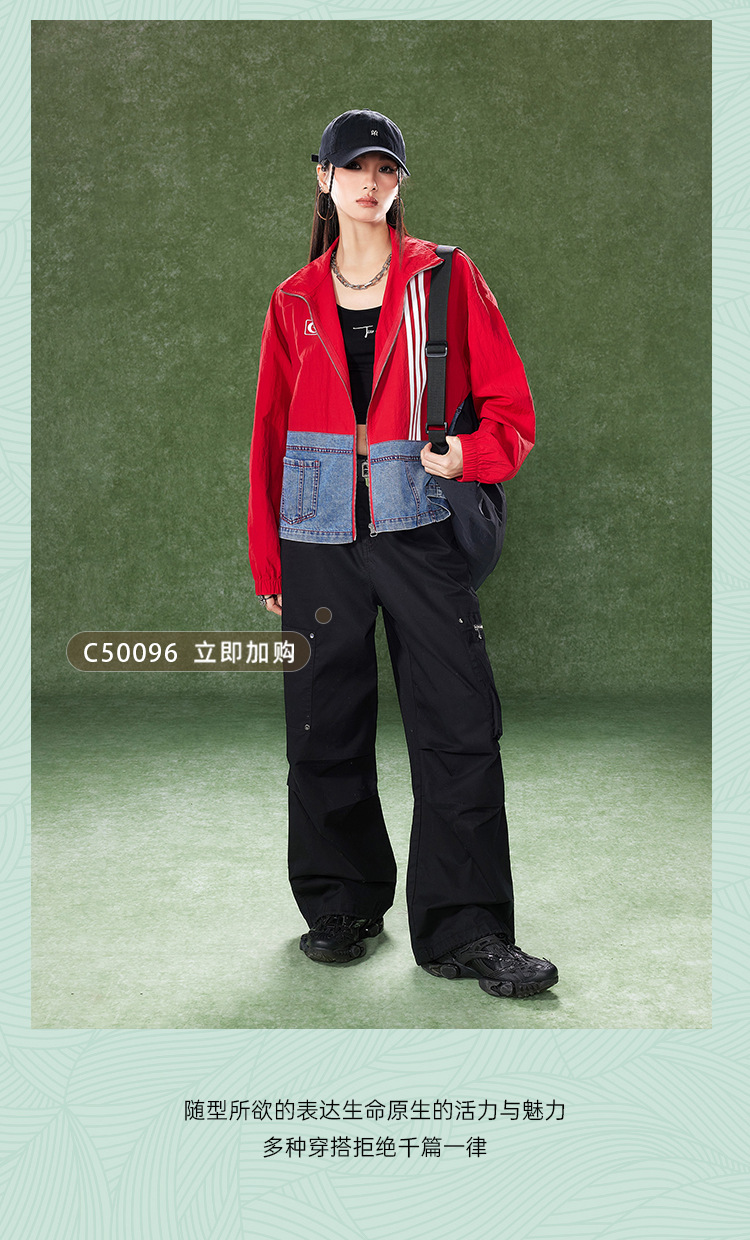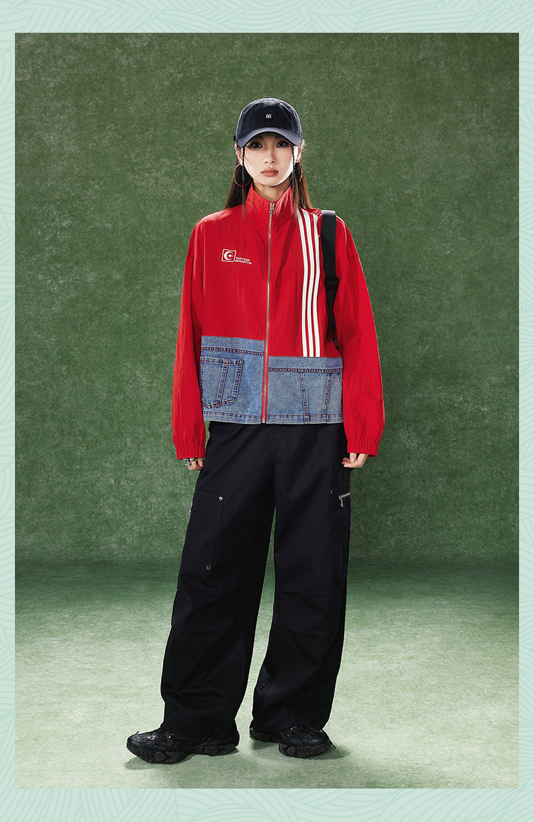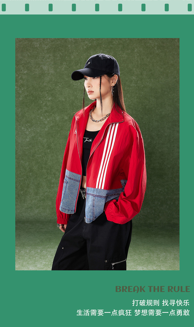투오구 미국 스타일 루즈핏 캐주얼 봄 얇은 재킷 여성용 트렌디 브랜드 배색 데님 스트라이프 스포츠 재킷 여성용스토어 가기